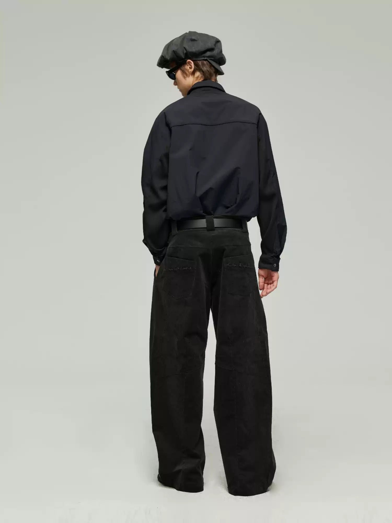 The standout feature? Clean front pleats and oversized belt loops that anchor the silhouette with purpose and style. Crafted from medium-weight corduroy, the fabric delivers rich texture and depth without feeling heavy. The cut is loose through the leg with a slight flare, offering a naturally relaxed drape that's easy to move in and simple to style.