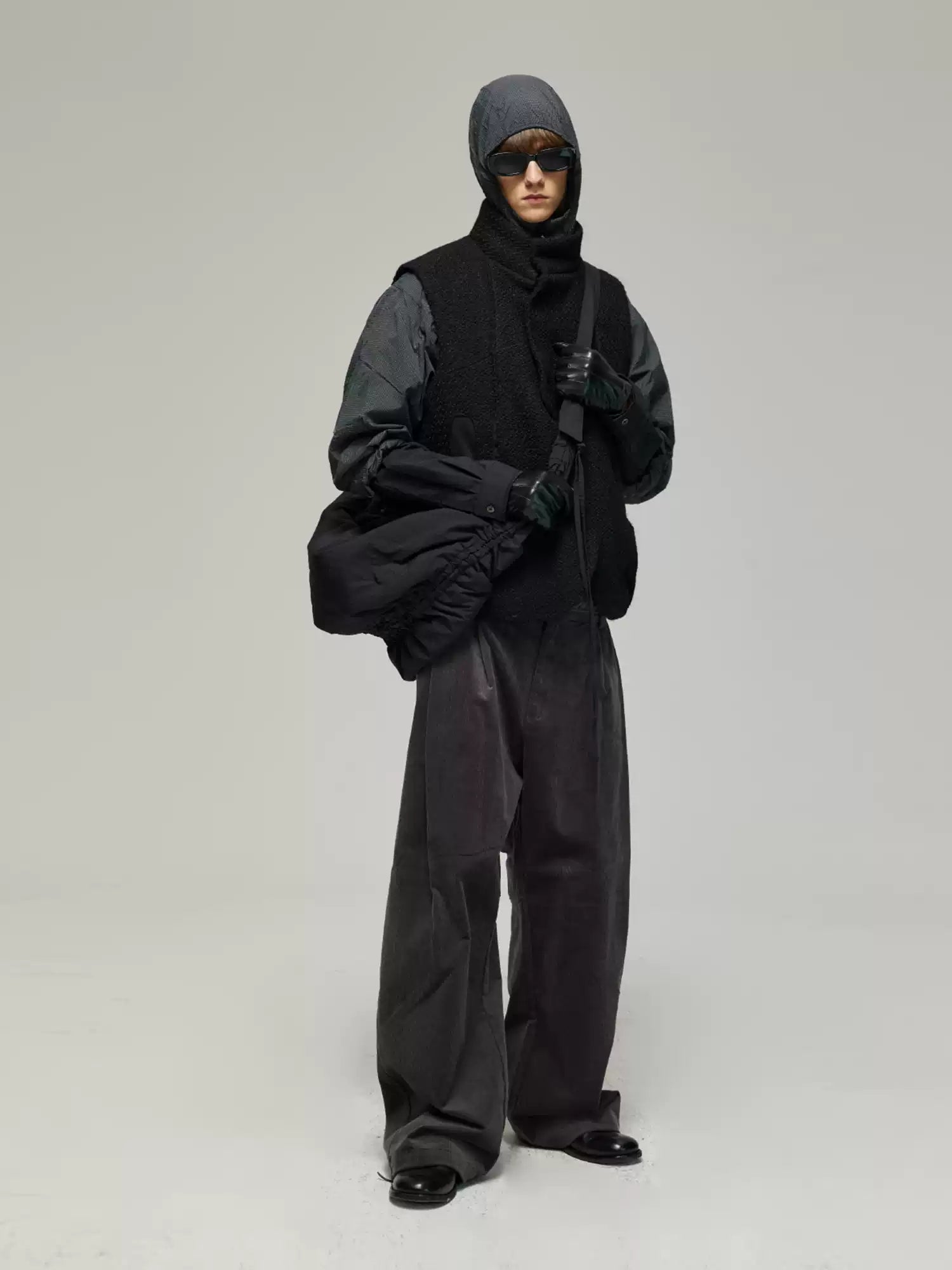 Pleated Wide Leg Corduroy Pants with Chunky Belt Loops