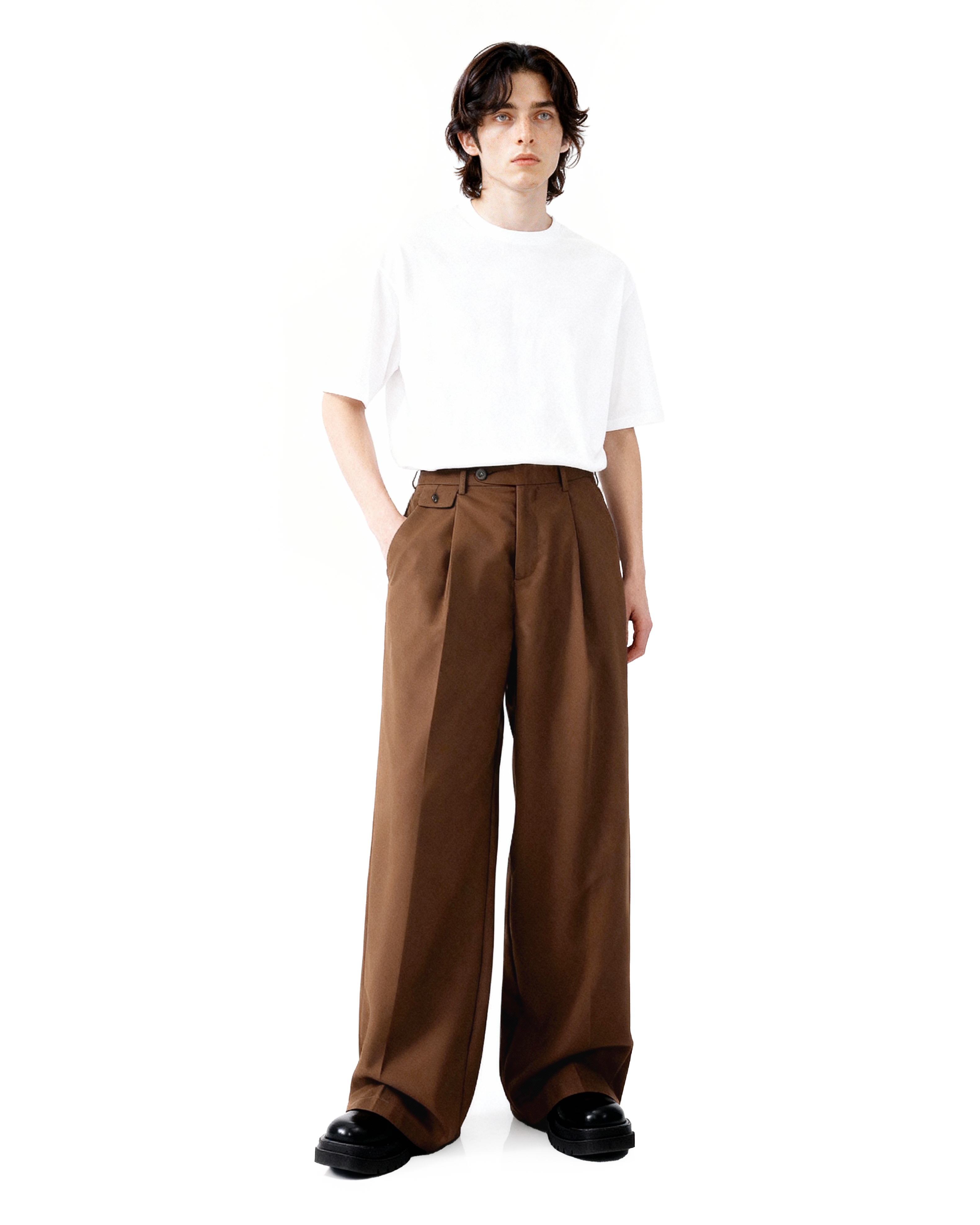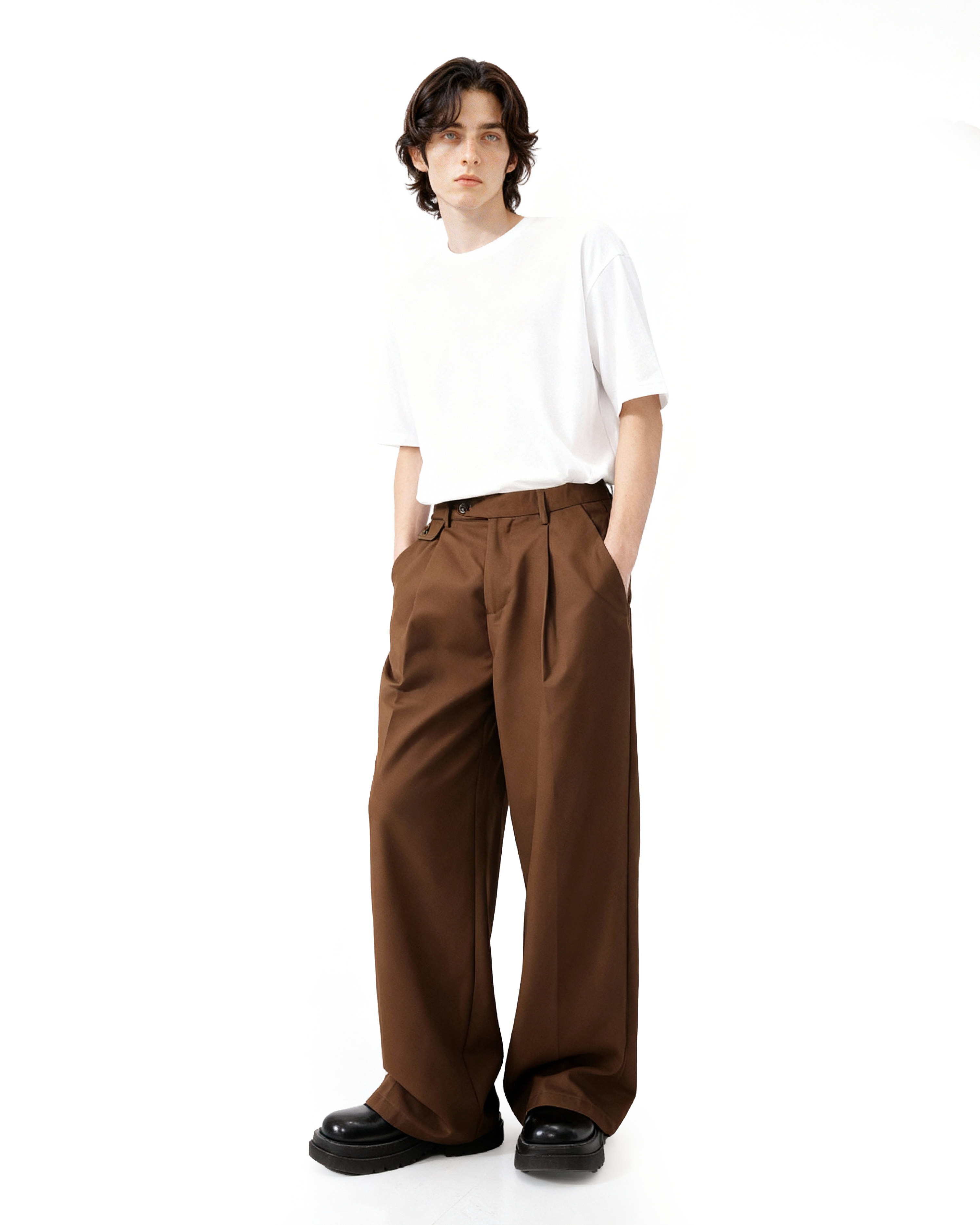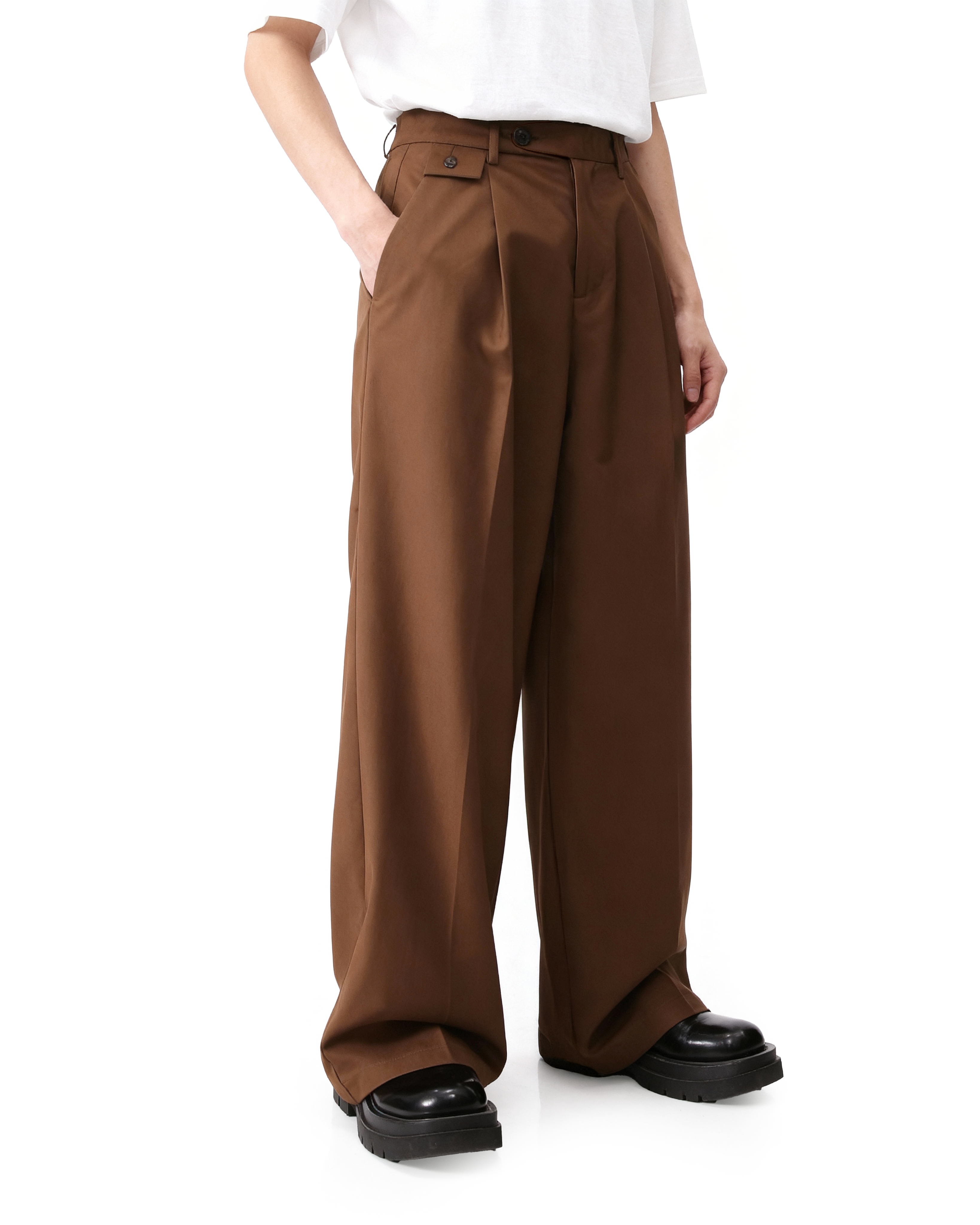 Pleated Wide Leg Low-Waisted Trousers
