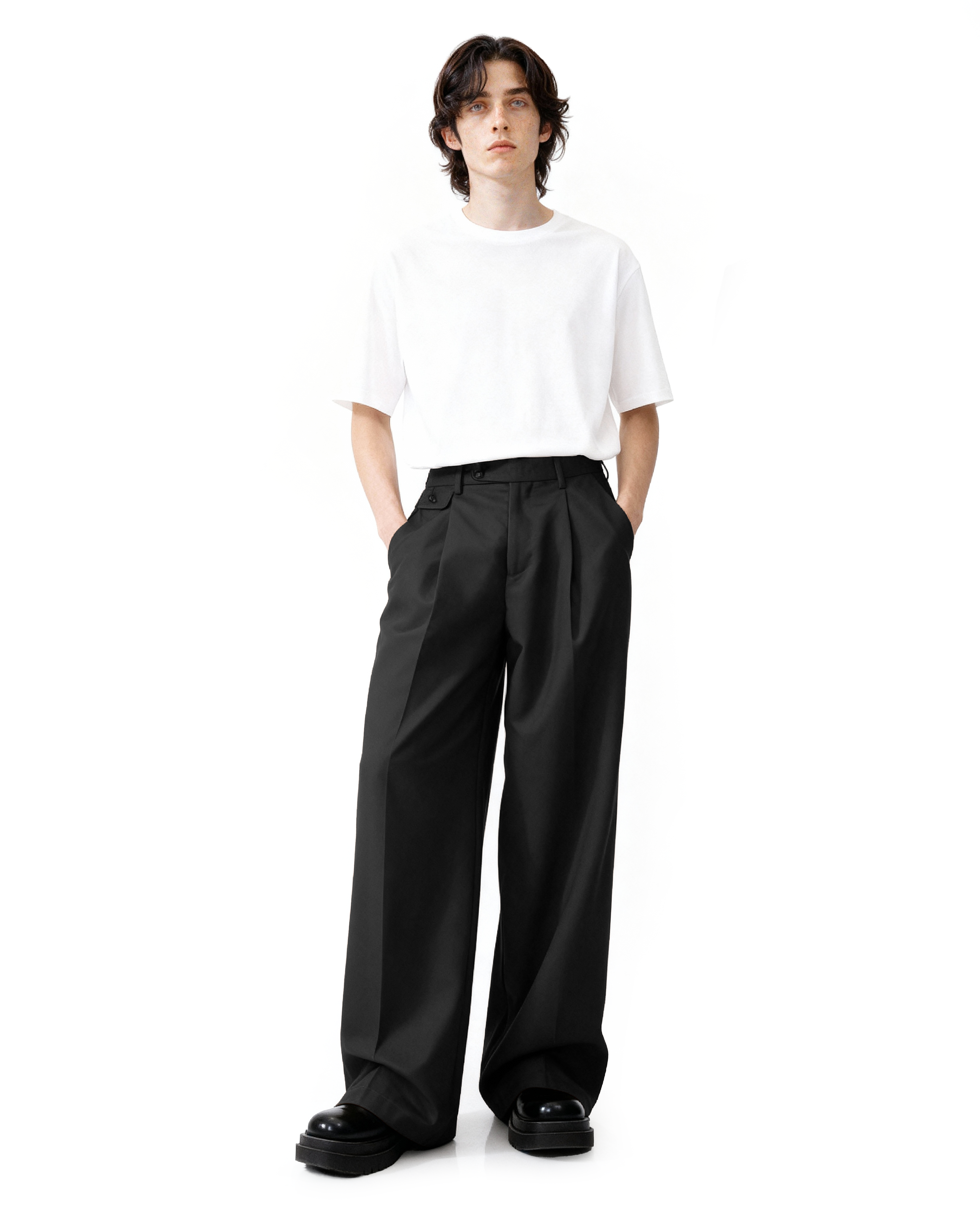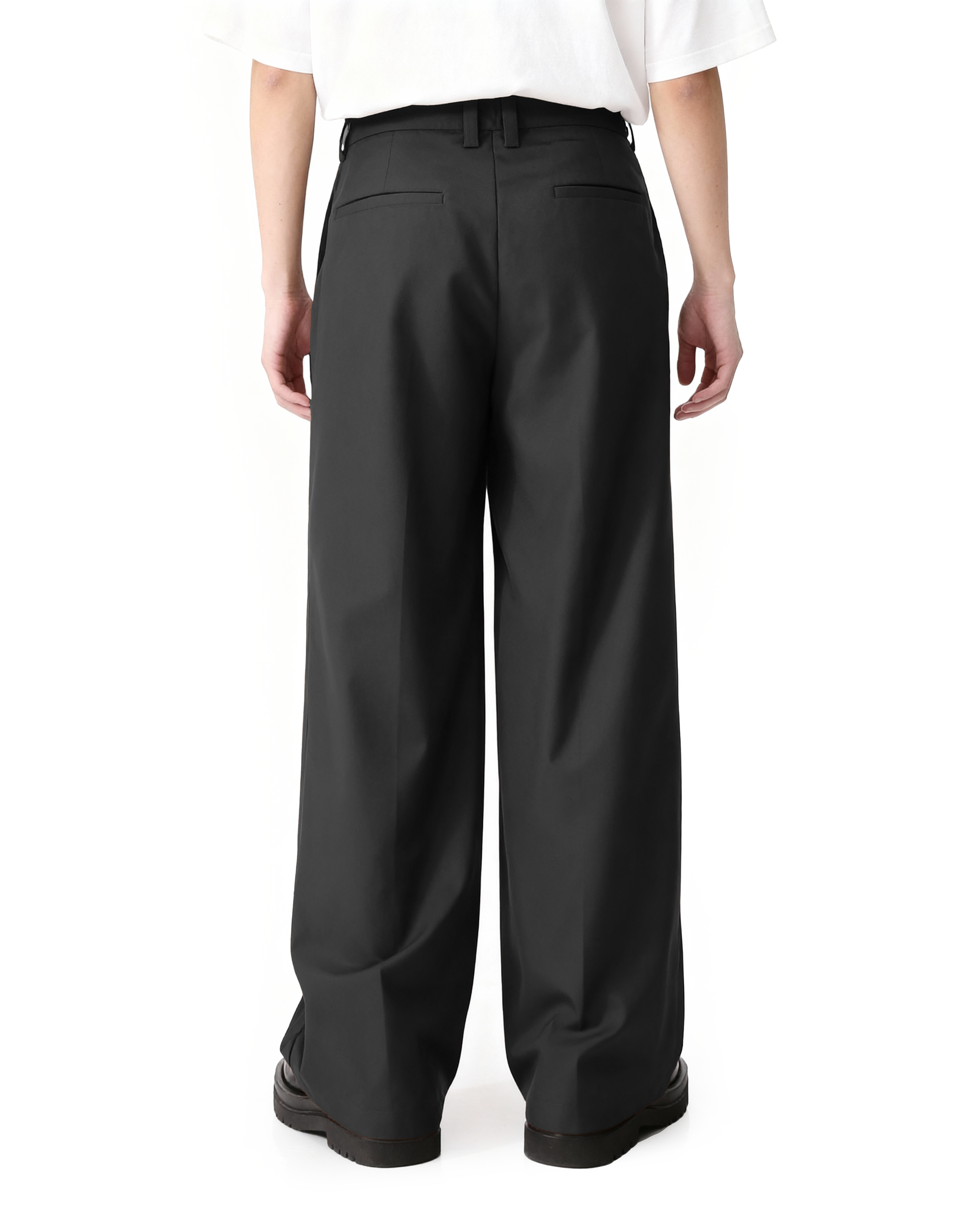 With clean lines and fluid drape, they're designed to move with you—never against you. Cut from a lightweight, smooth-finish synthetic blend, the fabric hangs naturally while keeping its structure without being too stiff. Subtle creases down the front add polish, while the low-rise waistband and roomy leg offer all-day comfort.