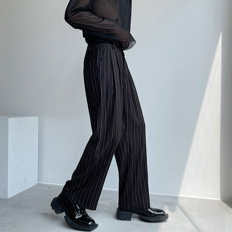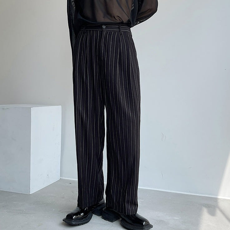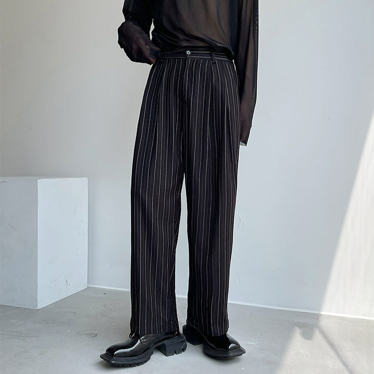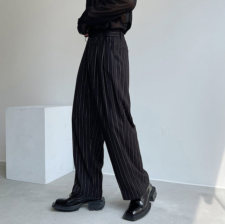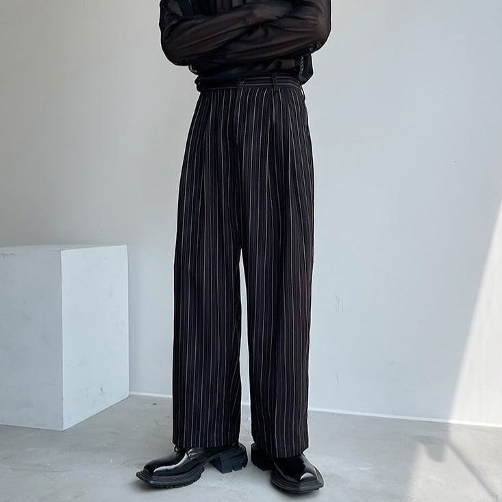 Pleated Wide Leg Trousers with Vertical Stripes