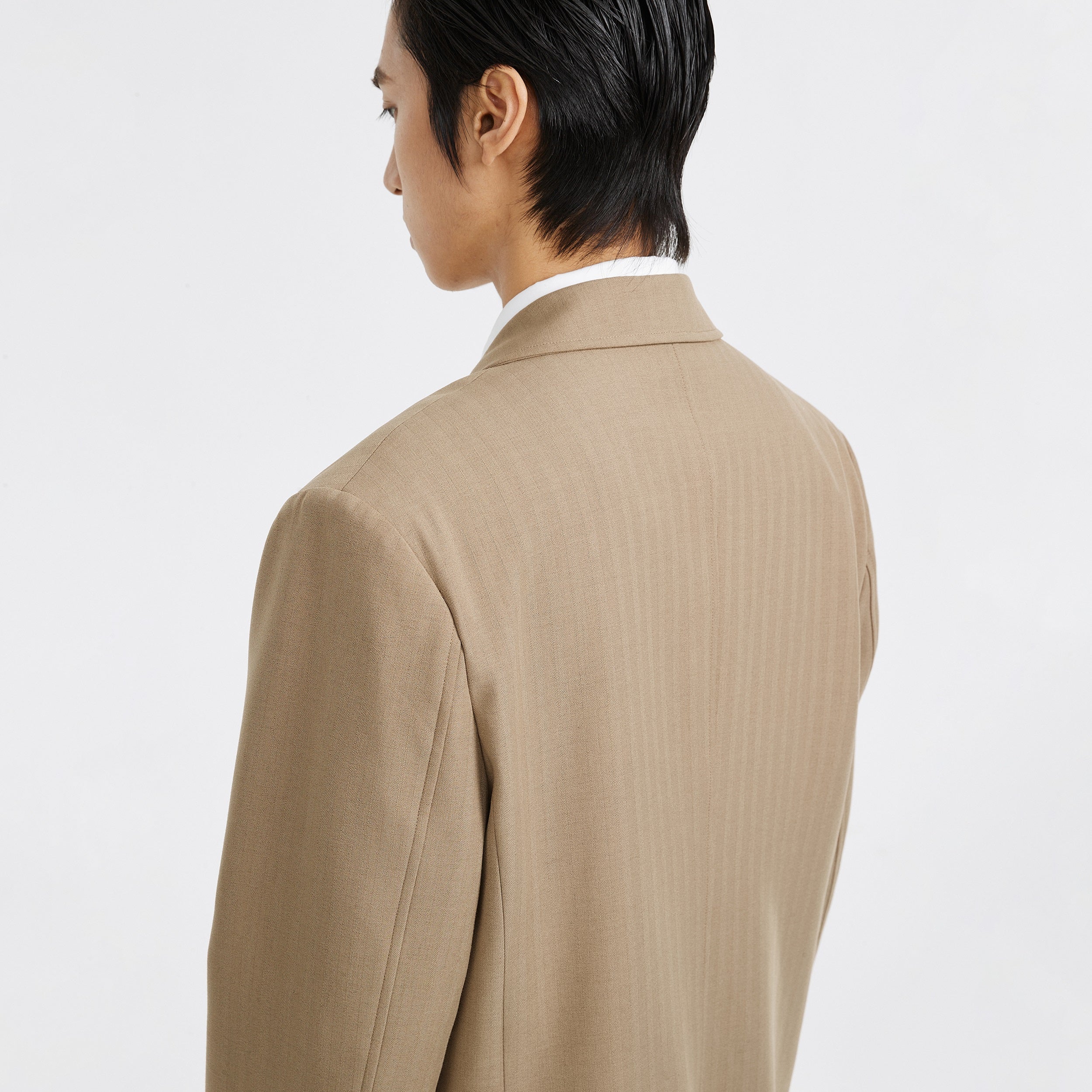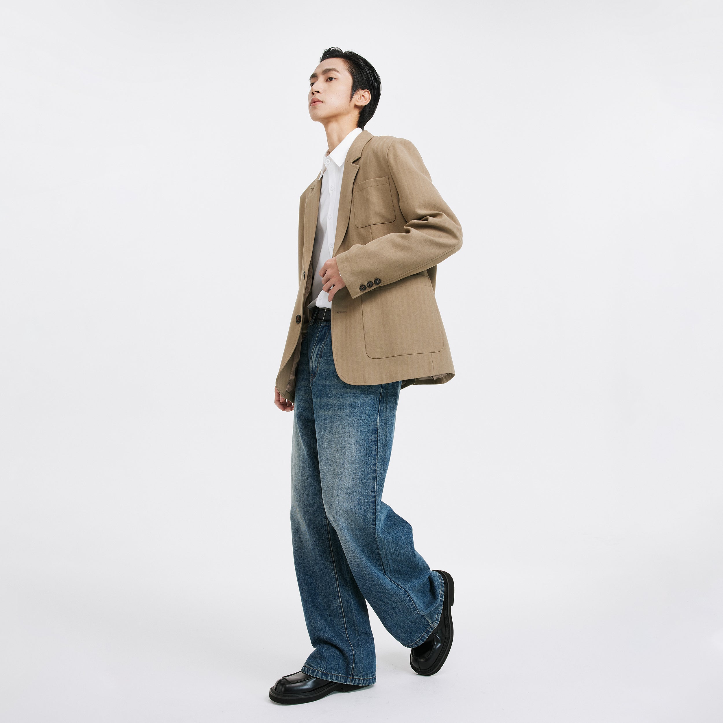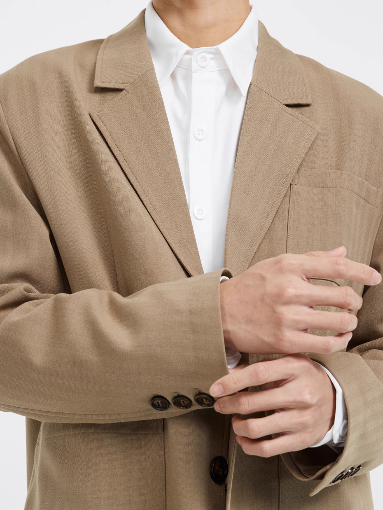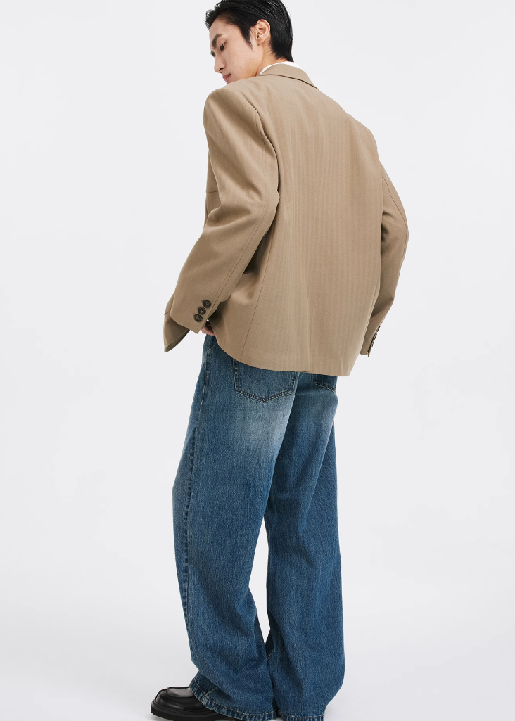 It’s designed to feel easy while keeping your look intentional. Crafted from a high-density TR blend, the fabric is smooth and wrinkle-resistant with a subtle texture that holds its shape and adds depth. Clean double-button closure and a back vent offer room to move without losing structure, making it equally fitting for cafe meetups or low-key office settings.