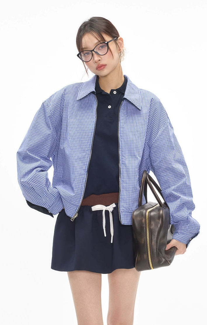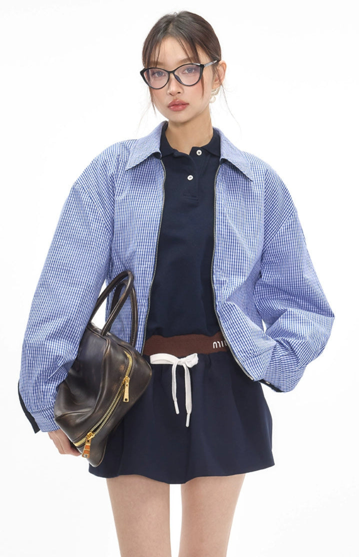 Reversible Zip-Up Gingham Check Collared Jacket