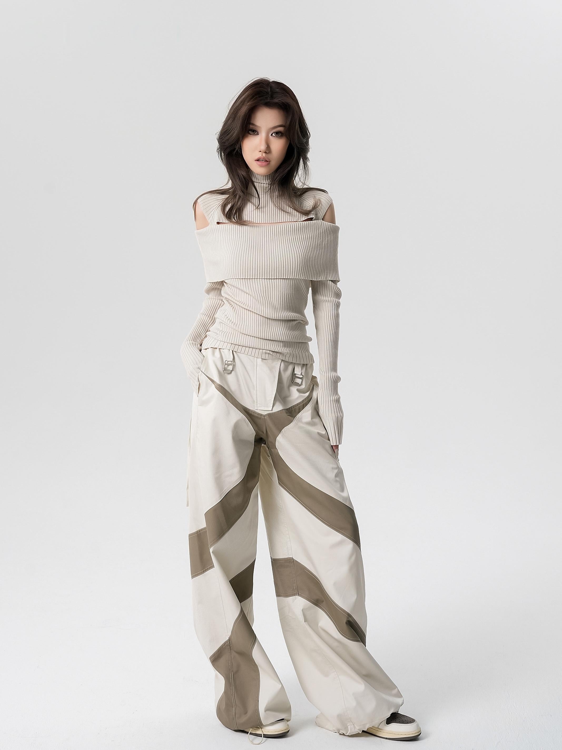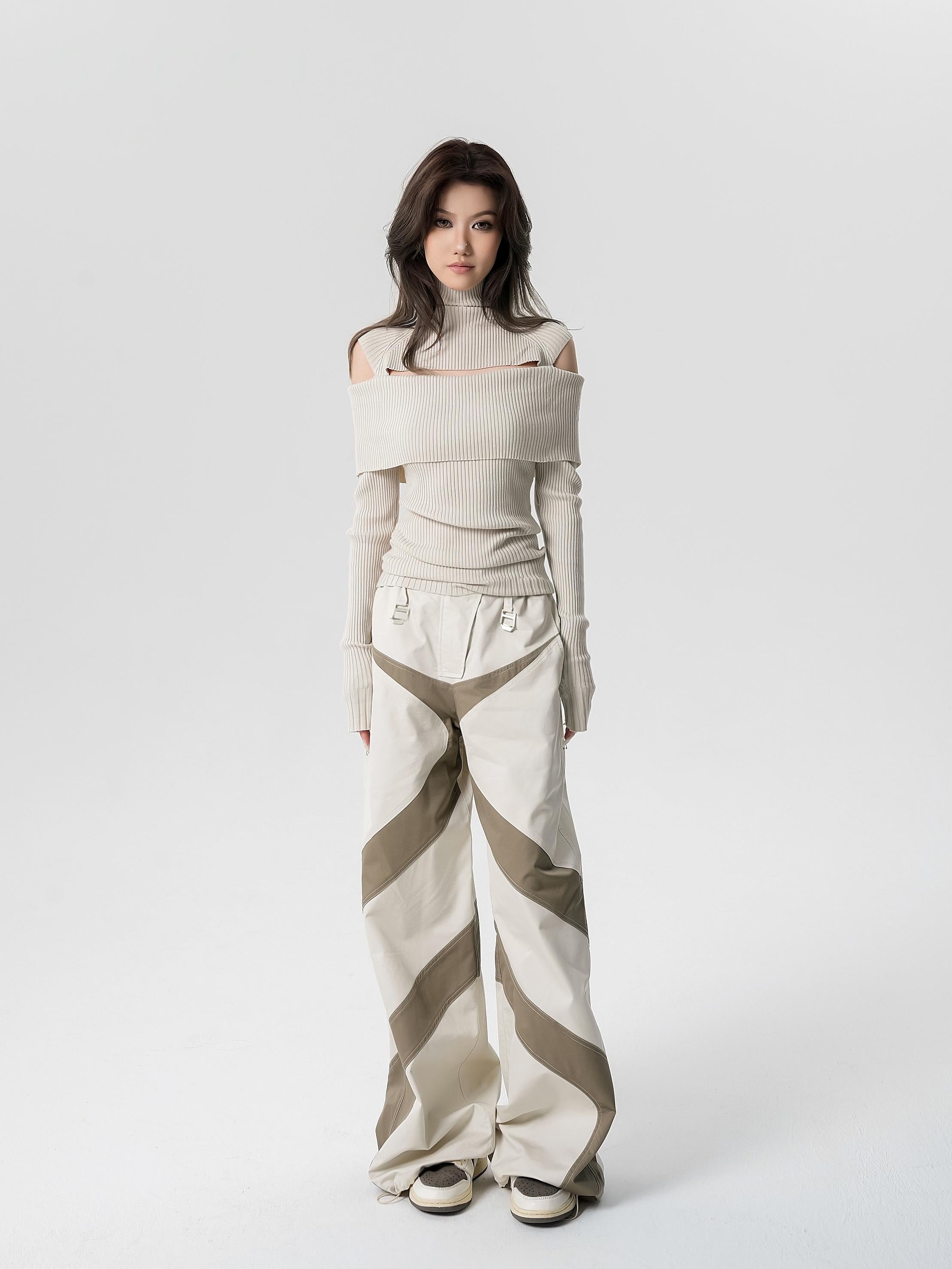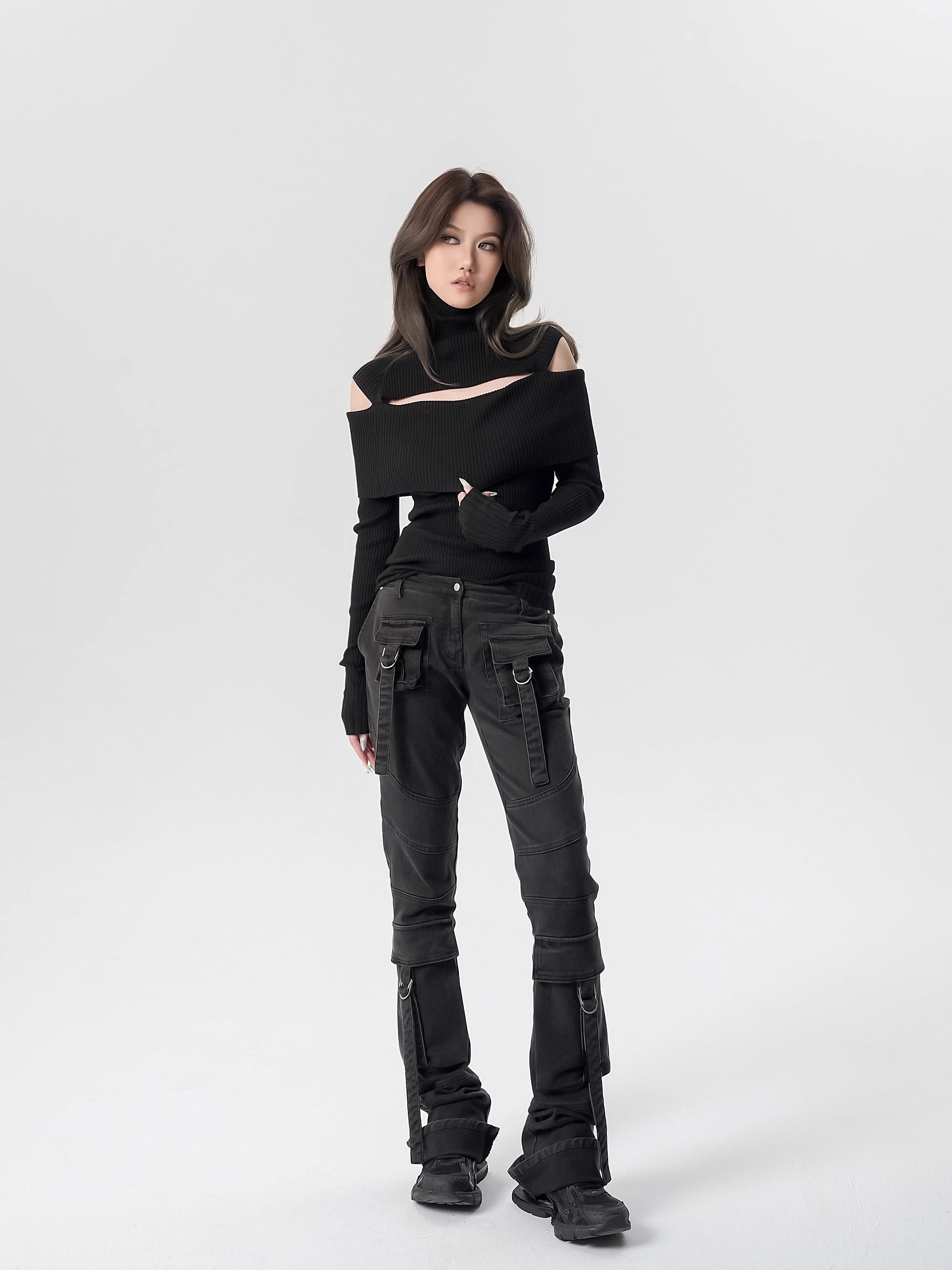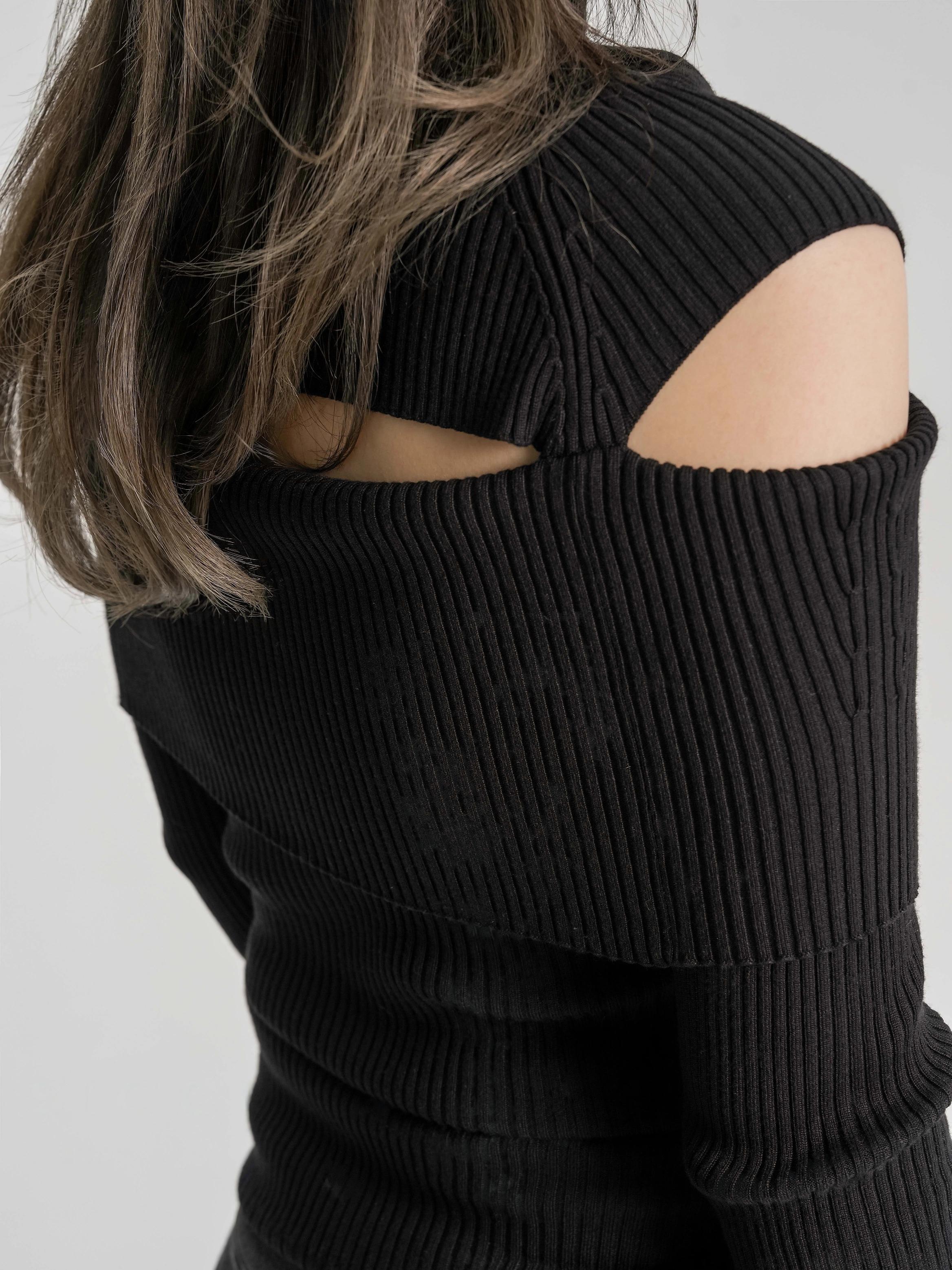 Ribbed Cold-Shoulder Cutout Turtleneck Sweater