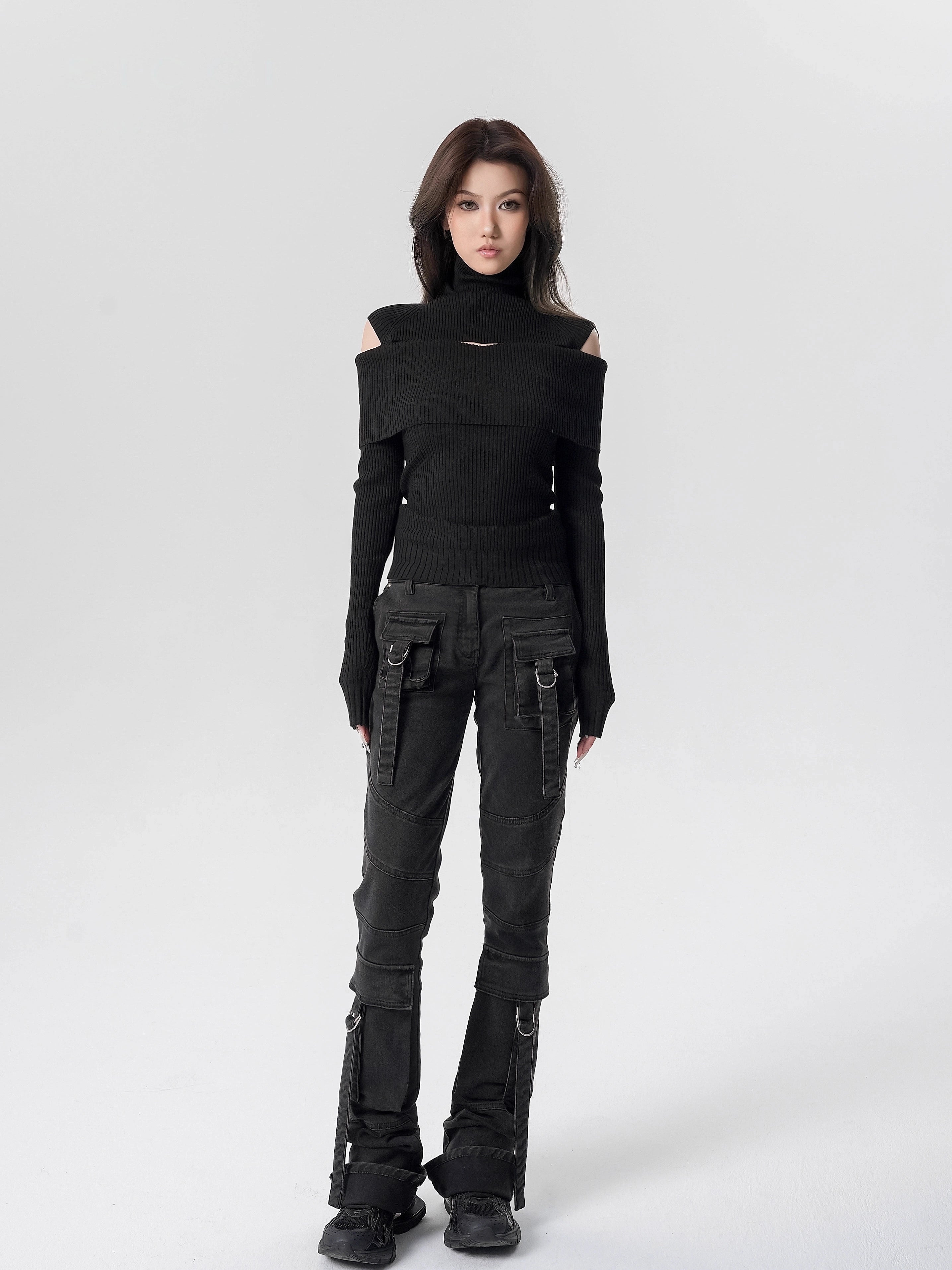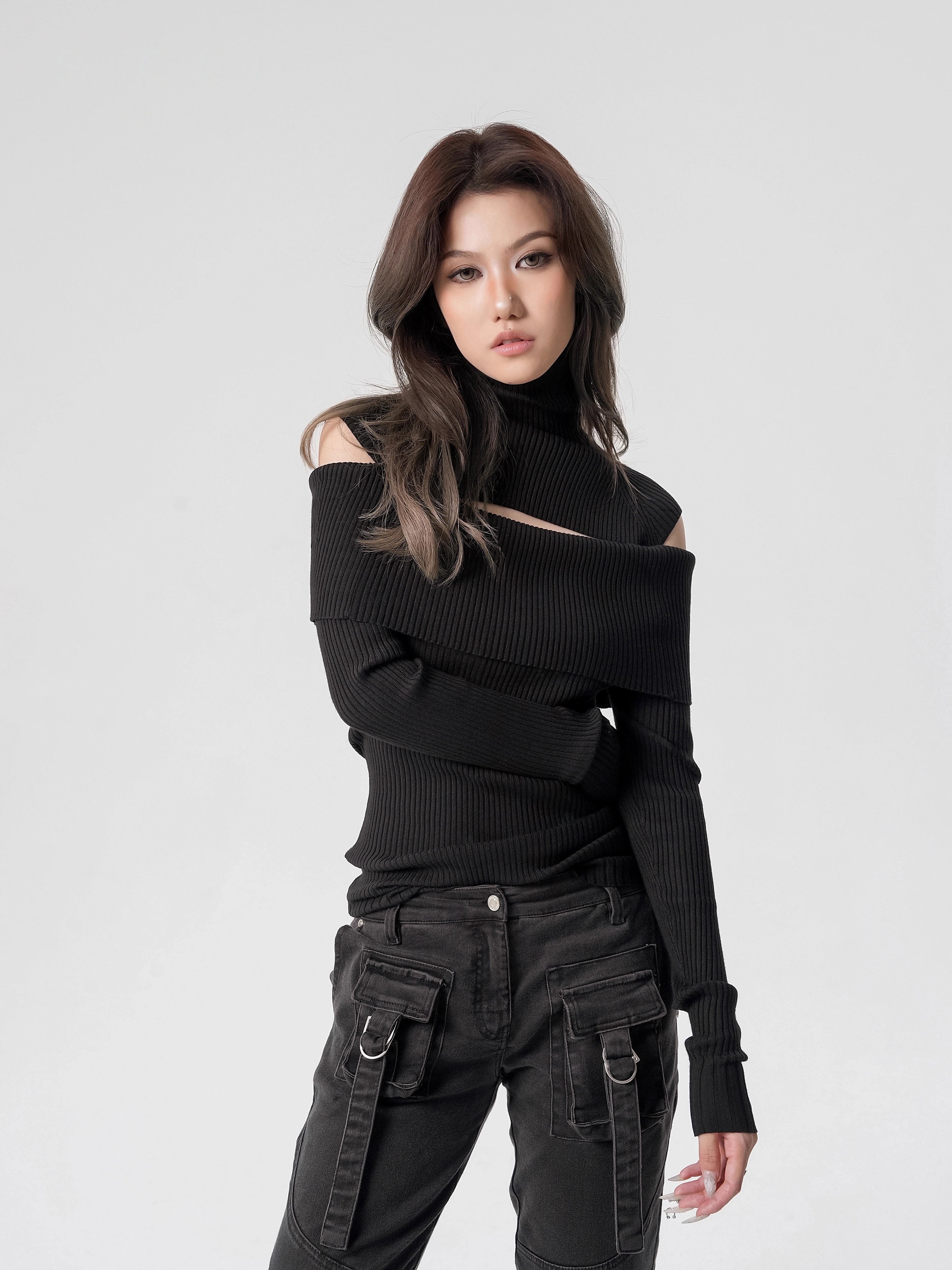 Expertly knitted with a blend of polyamide fiber and viscose, this sweater offers a snug fit without compromising on softness. Its ribbed texture and solid color allow for effortless pairing with any outfit, while the unique cold-shoulder cutouts lend an edge to the otherwise classic turtleneck silhouette. This versatile sweater is perfect for those who appreciate a touch of street-style sophistication.
