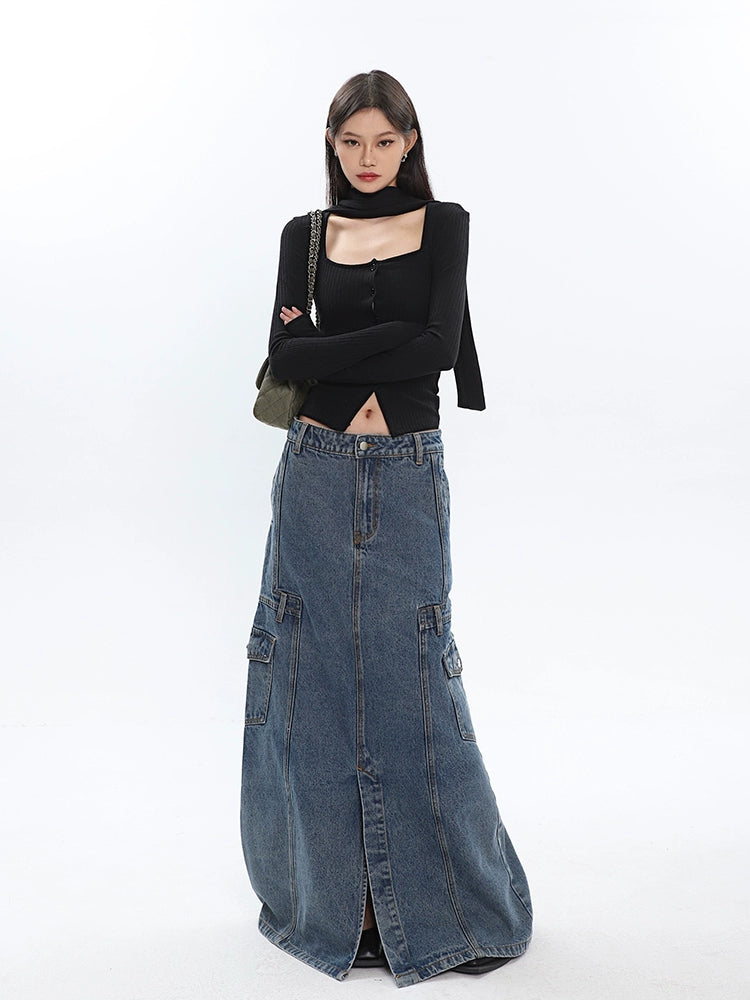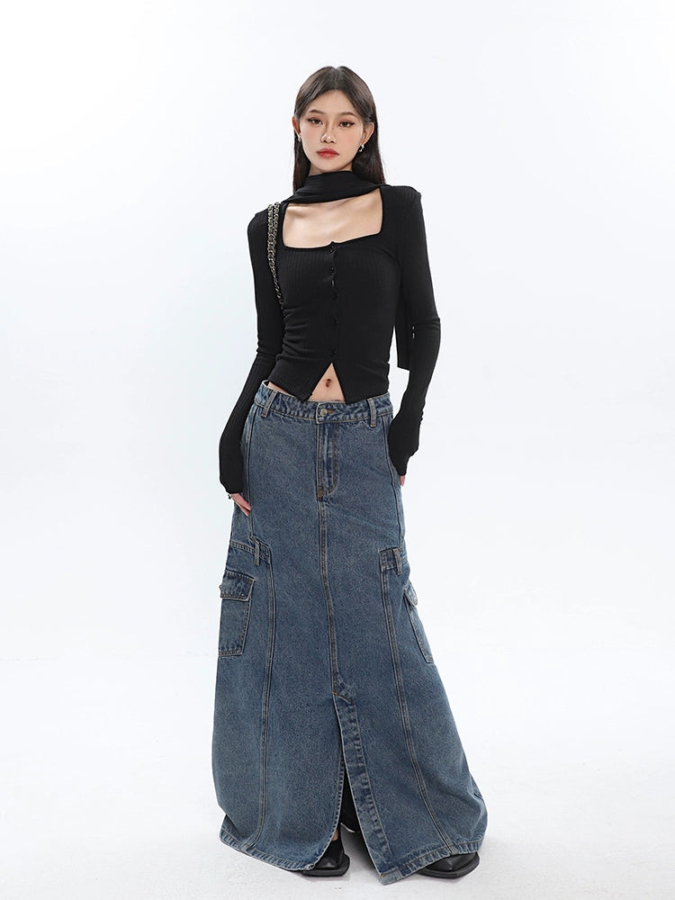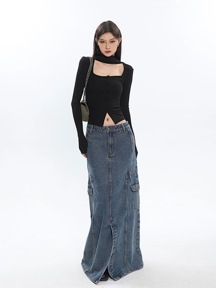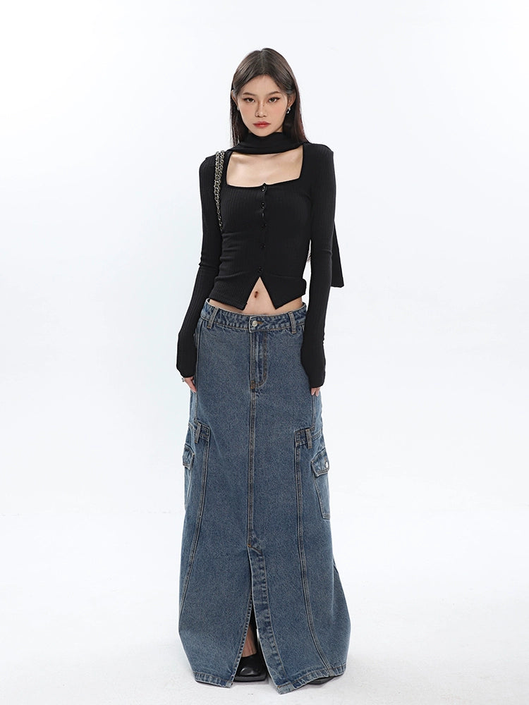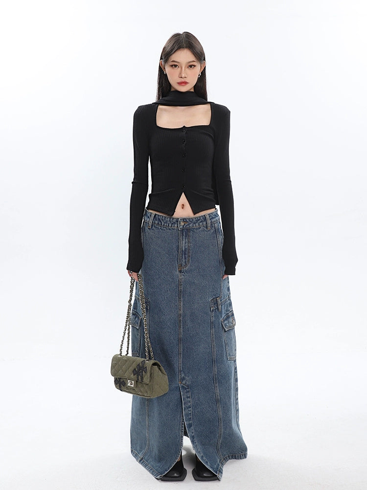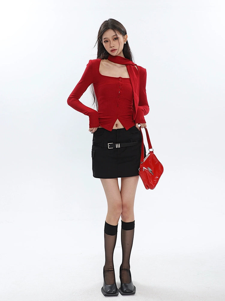 Crafted for comfort and style, this cardigan showcases a finely ribbed texture and solid color design. The slim-fit silhouette paired with a unique scarf detail accentuates an edgy yet sophisticated aesthetic. Its single-breasted placket adds a traditional touch while ensuring ease of wear.