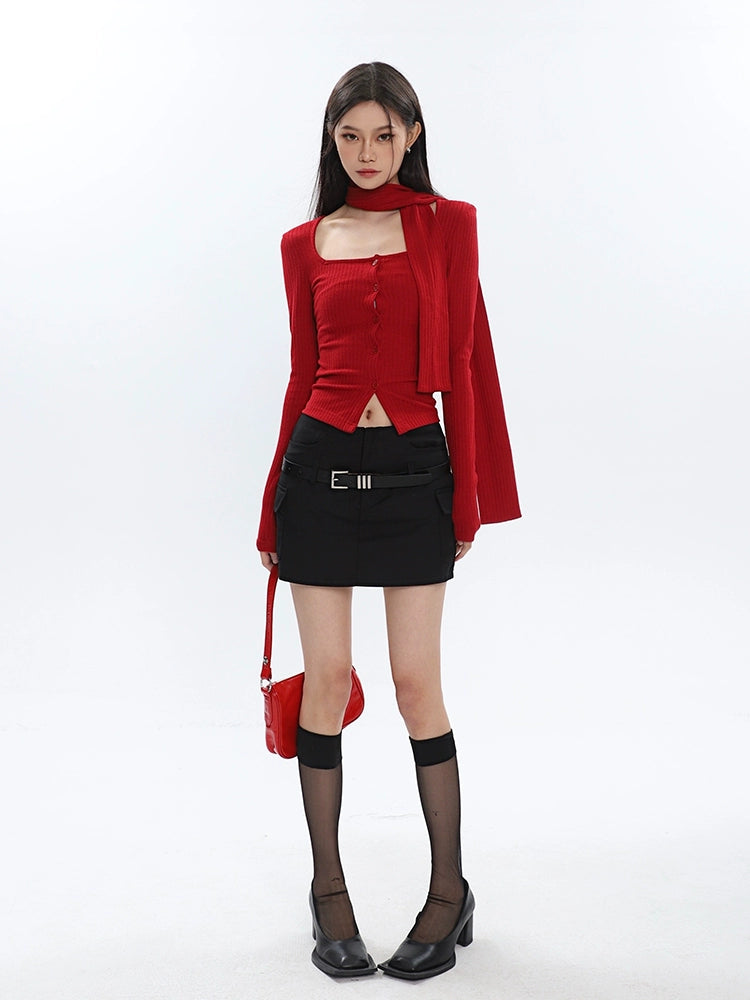 Read full Return PolicyEmbrace a touch of chic nonchalance with our Ribbed Cropped Cardigan with Scarf Detail, a fresh twist on classic knitwear.