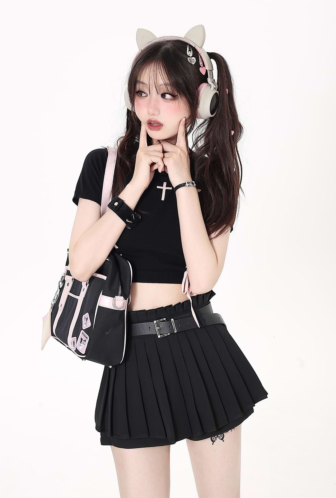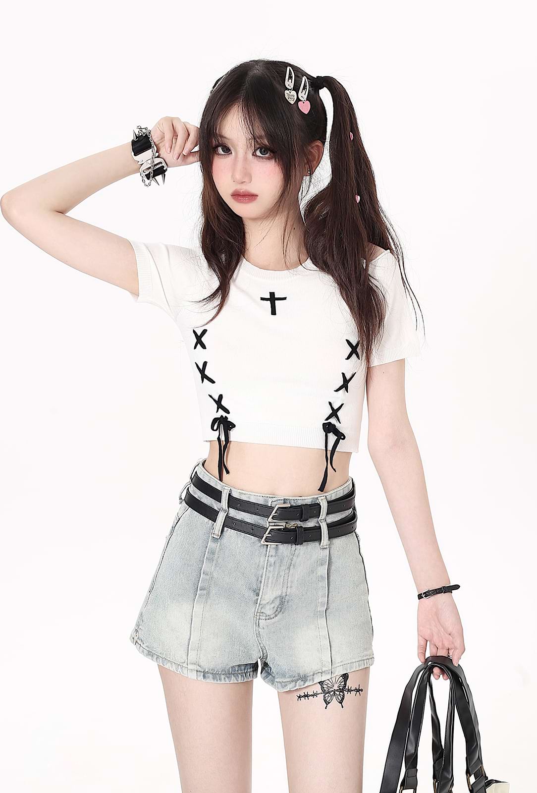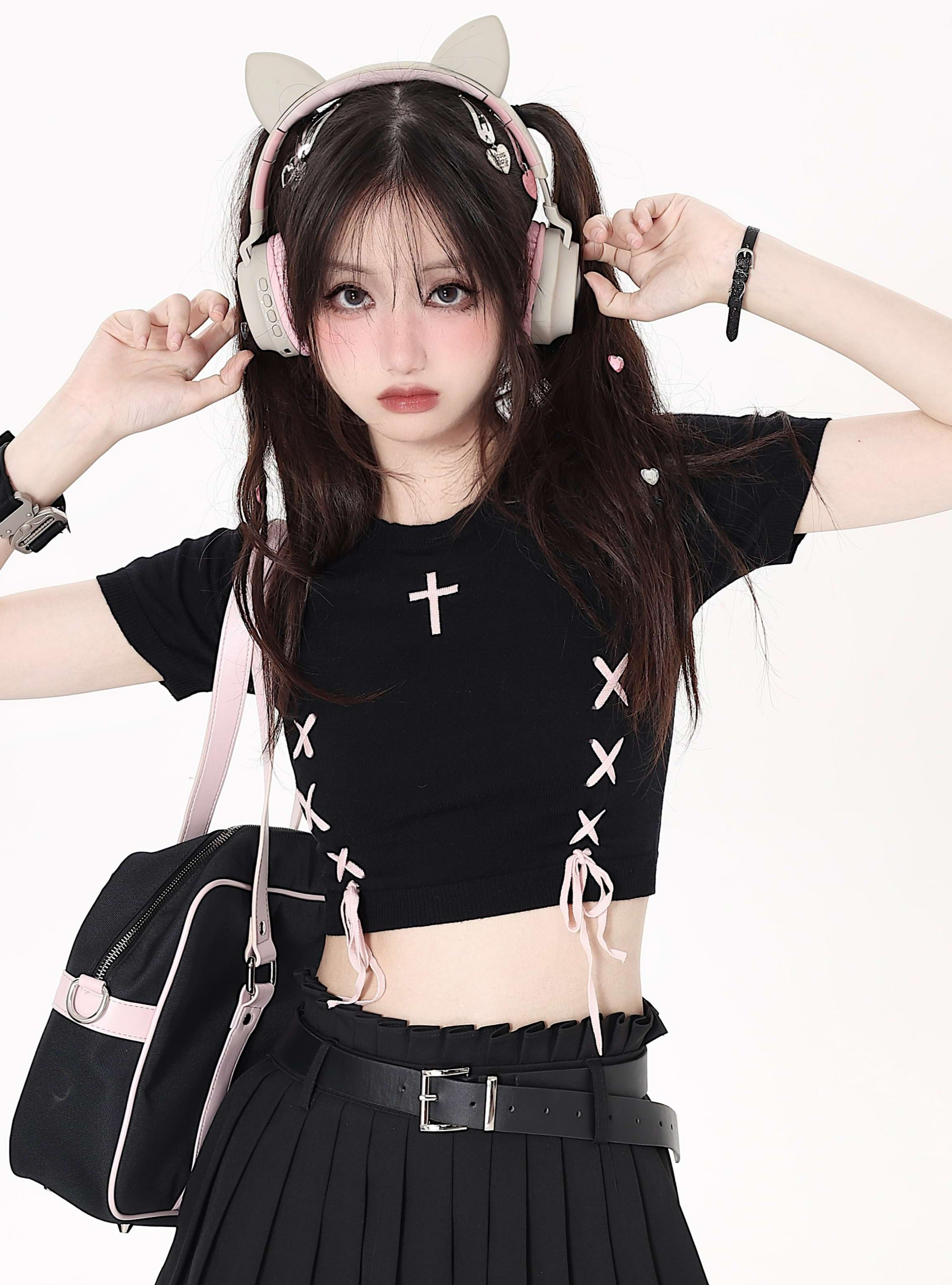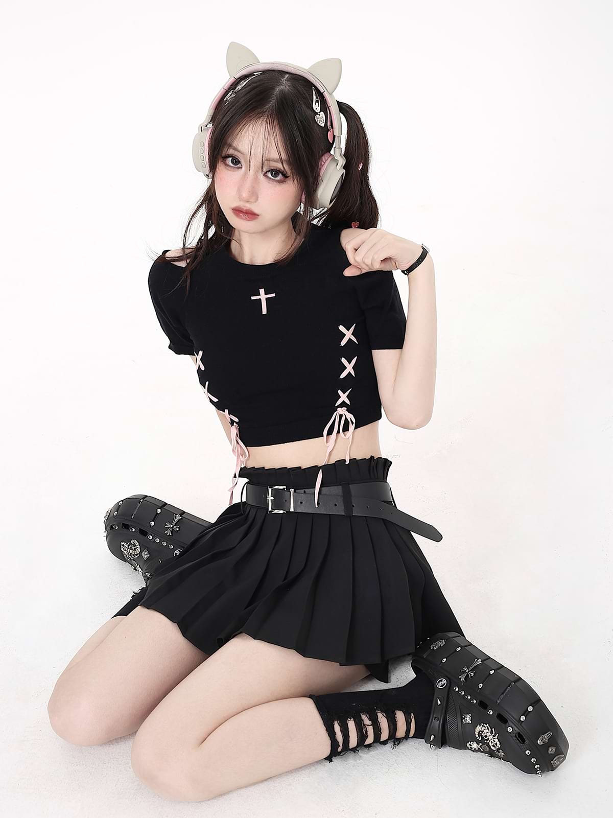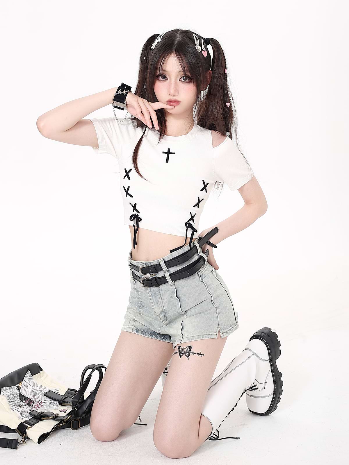 Read full Return PolicyThis Ribbed Hem Cold Shoulder Crop Top with Drawstrings adds a cool, yet casual touch to any outfit. With its cross print and drawstrings detail, it's perfect to pair with skirts or high waisted jeans. Its cropped length will flatter the body and make you feel comfortable and confident. Get that effortlessly chic look!