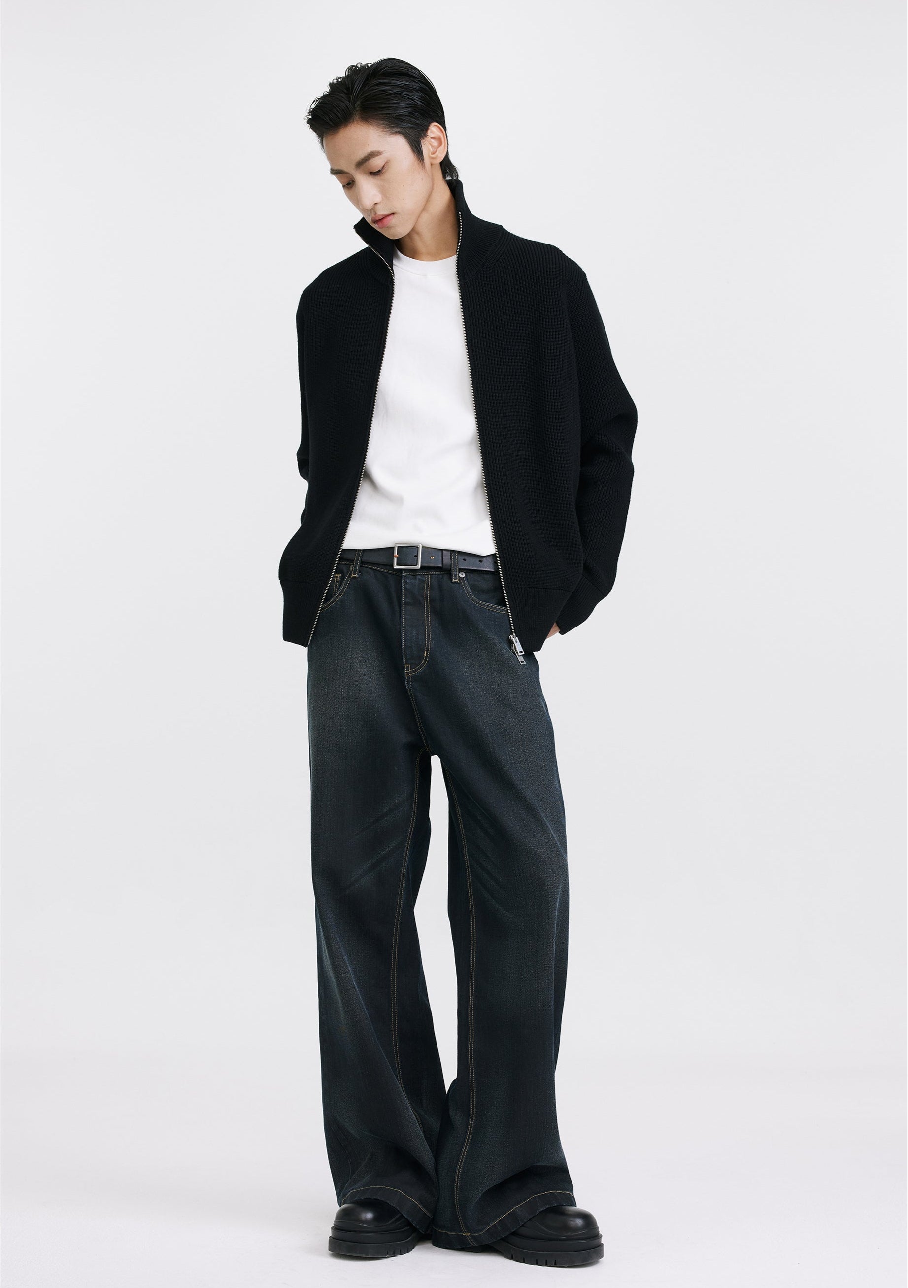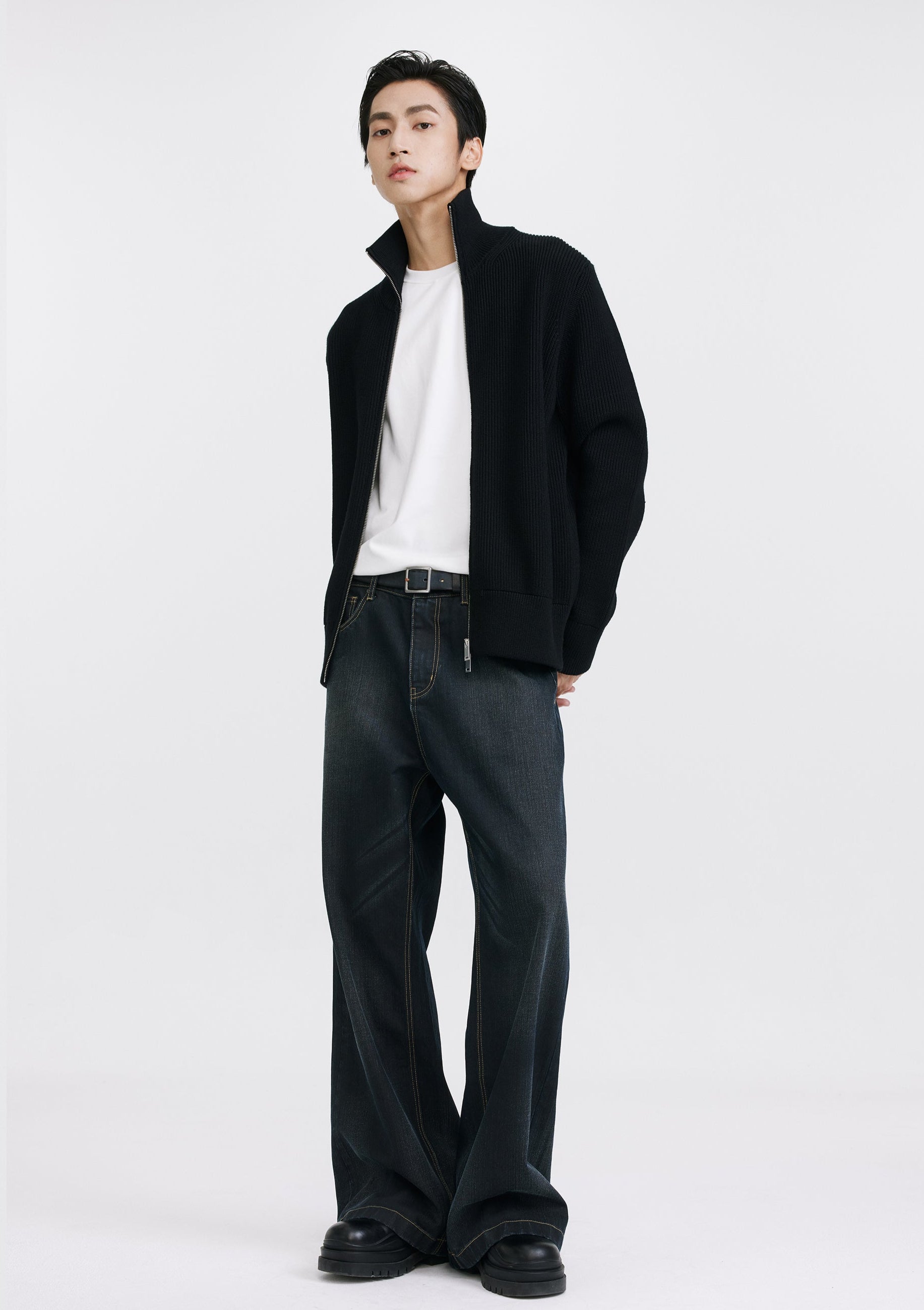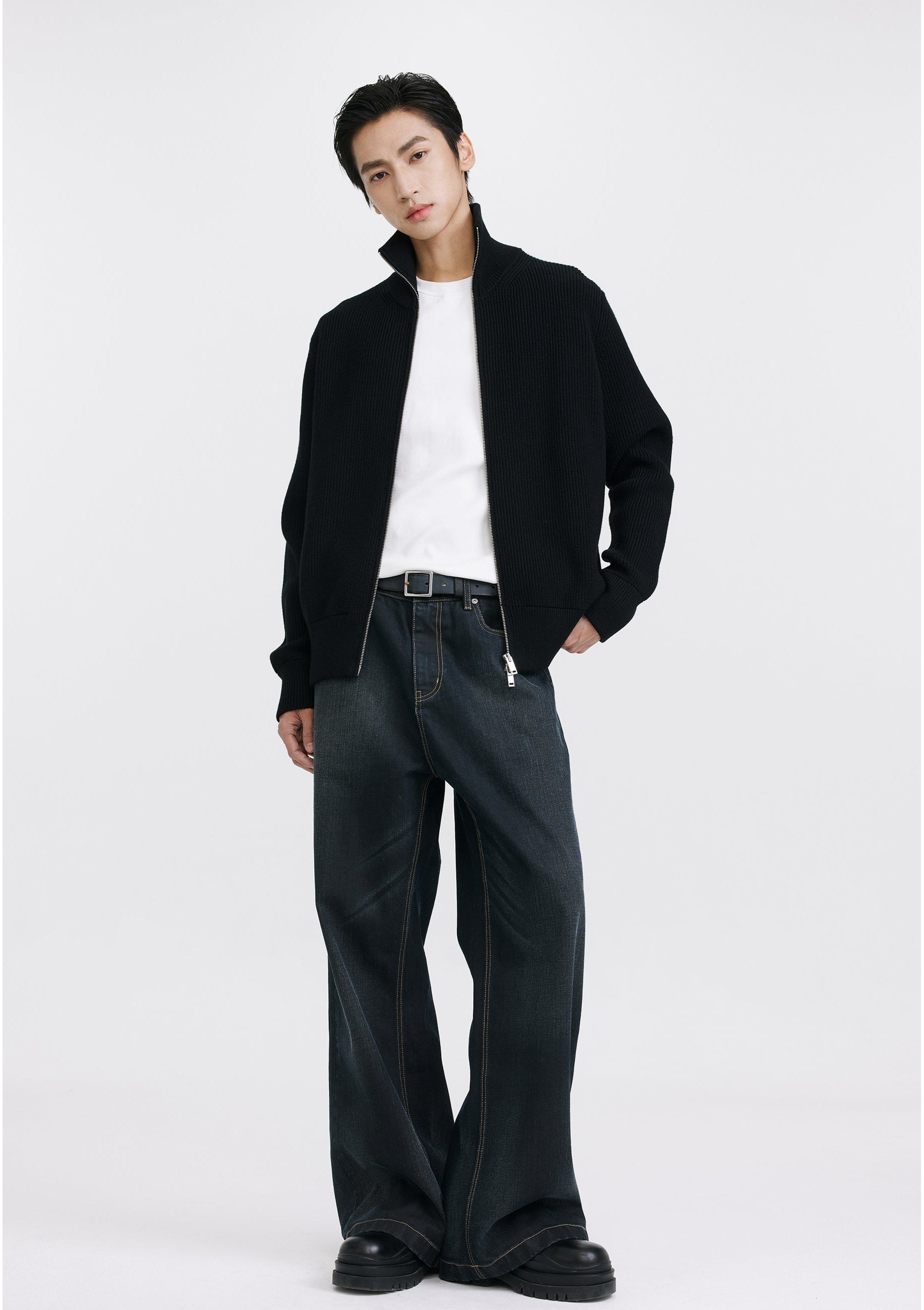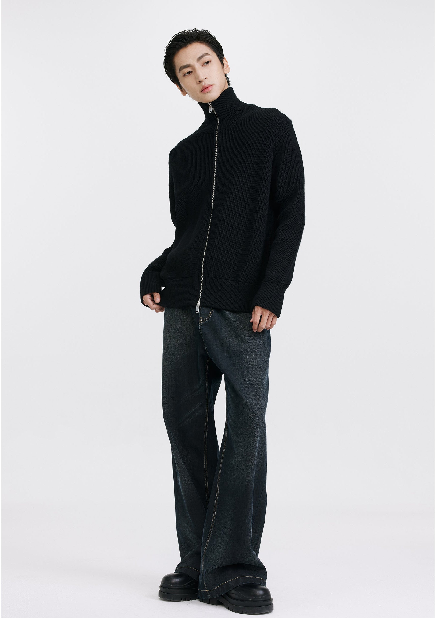 Crafted from a soft viscose-polyester blend, this piece features structured seven-gauge detailing that adds depth without bulk. The ribbed construction maintains its shape wear after wear, while the custom two-way zip enhances movement and layering potential. It leans into slim, minimal design that slips between laid-back and elevated with ease.