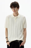 Ribbed Knit Short Sleeve Polo Shirt