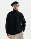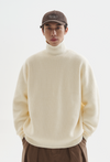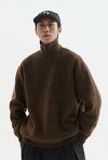 Crafted from premium synthetic fibers, this heavyweight 830G knit sweater boasts a tactile ribbed texture, providing a cozy, soft-to-touch experience. A relaxed, oversized cut merges with the distinctive Japanese-inspired high funnel neck for a harmonious blend of nonchalance and sophistication, ready to layer over any ensemble for added warmth and detail.