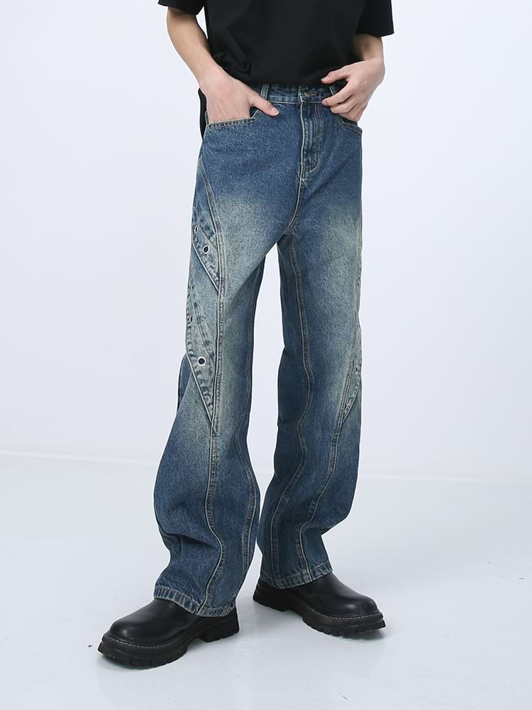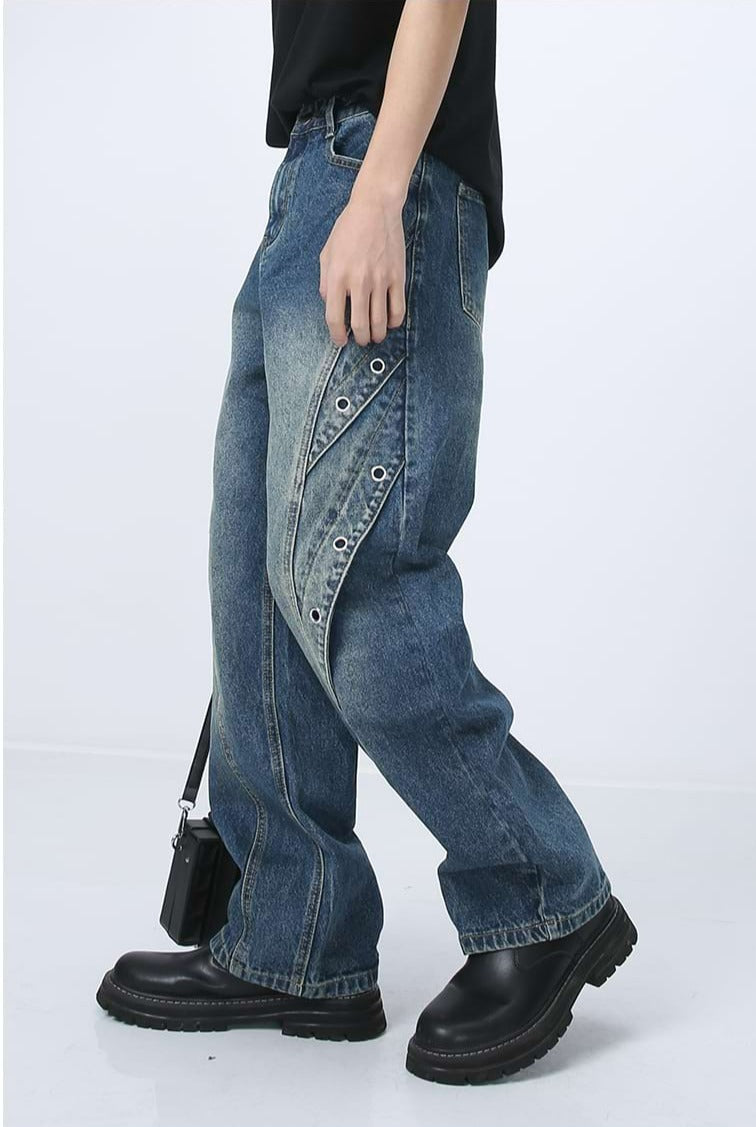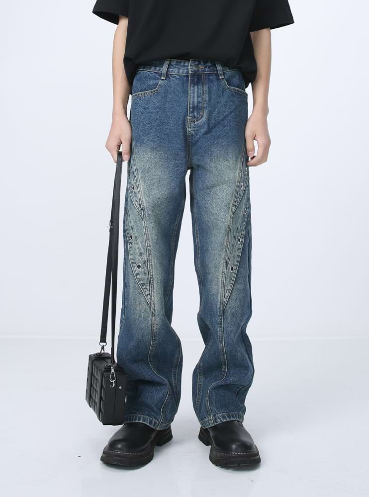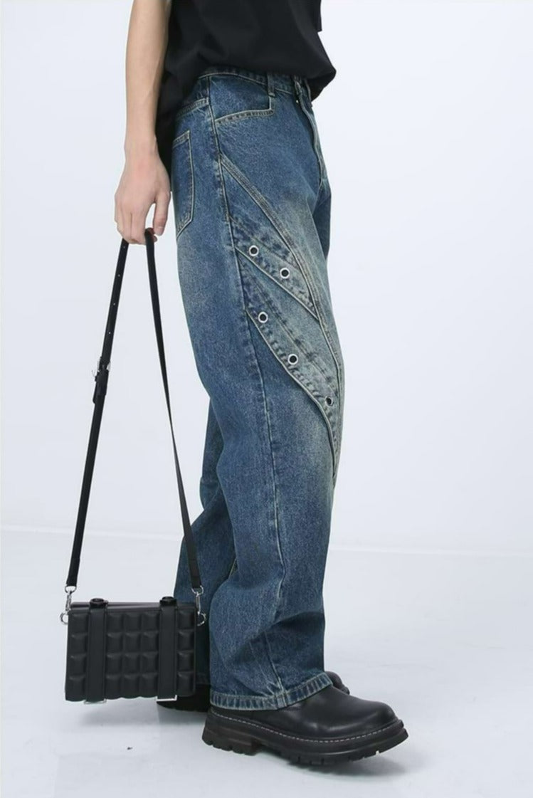 Read full Return PolicyIntroducing our Ring Patchwork Straight Fit Jeans. Crafted from faded denim, these jeans feature multiple ring patchwork and are perfect for everyday casual wear. The style is versatile and easy to pair with any top or shoes, making it an essential for your wardrobe.
