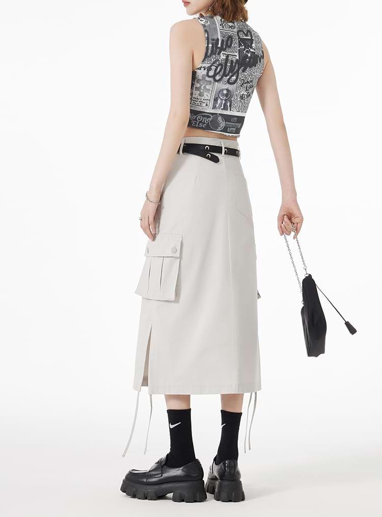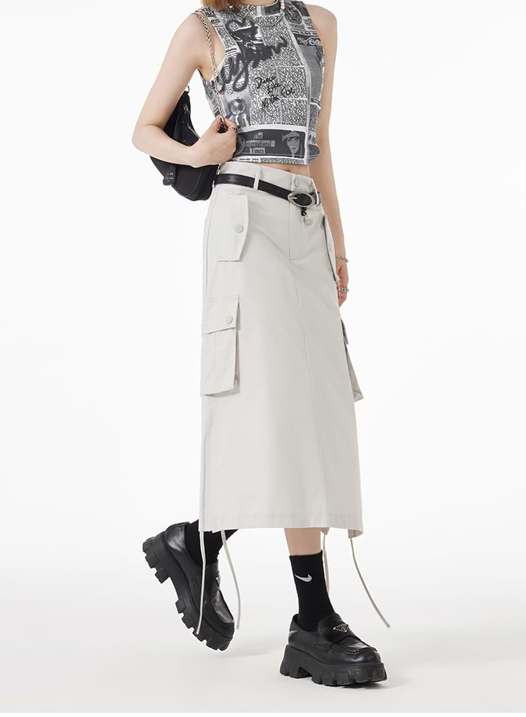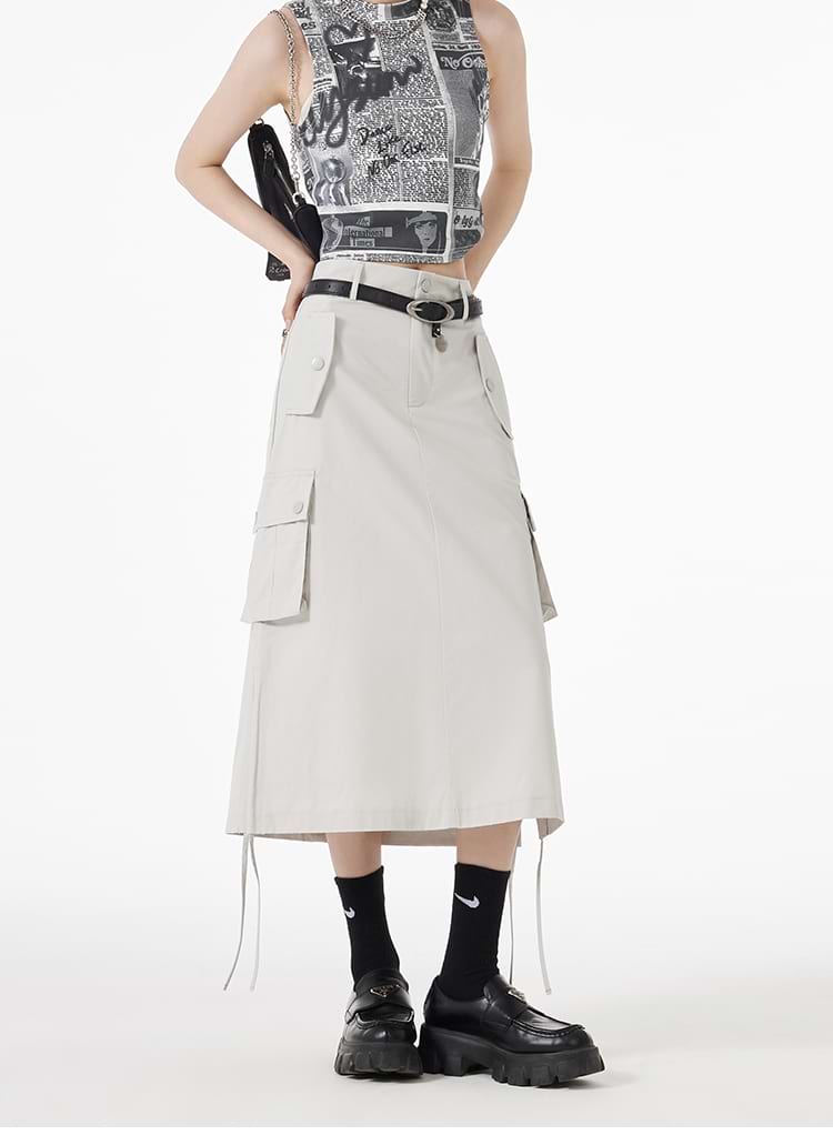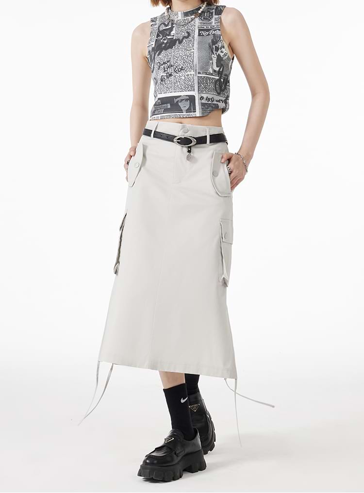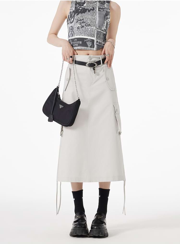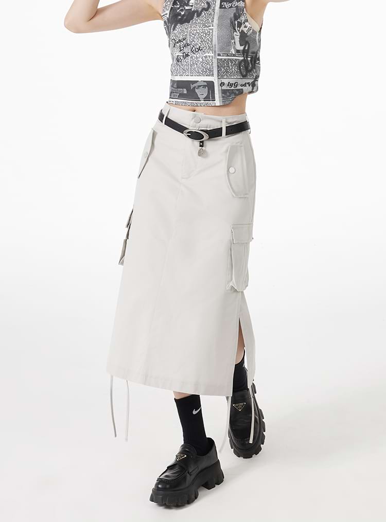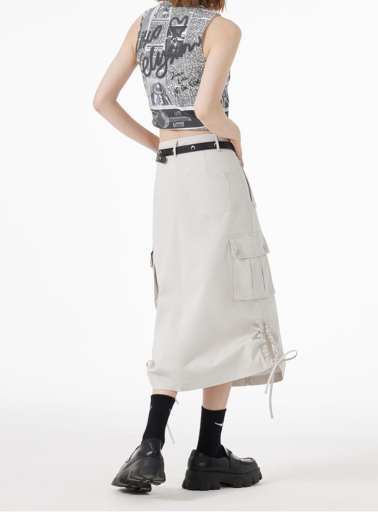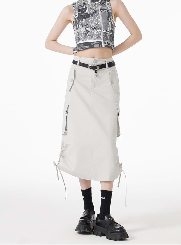 Ruched Side Cargo Midi Skirt