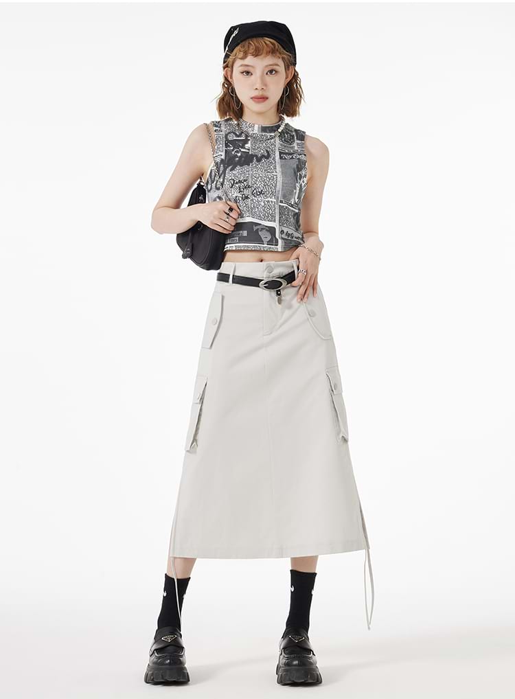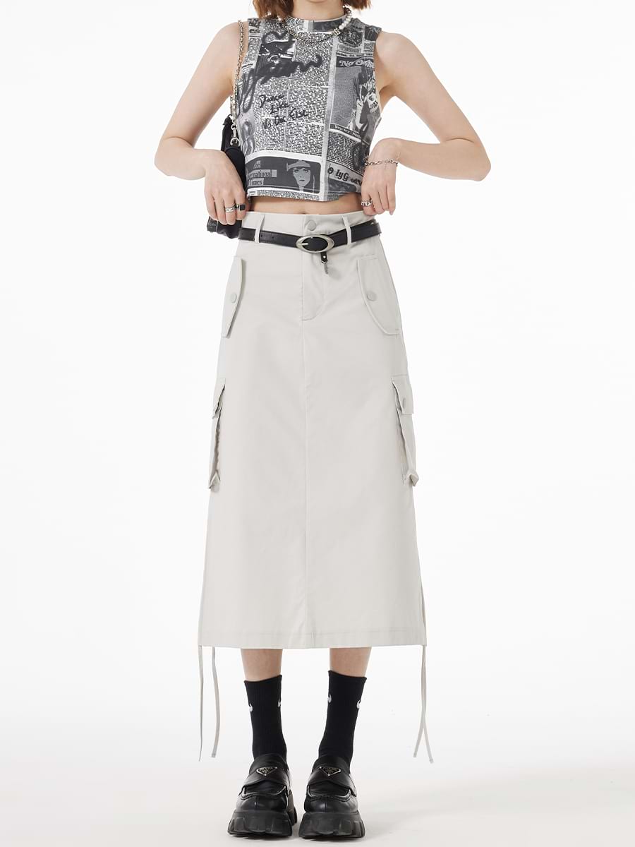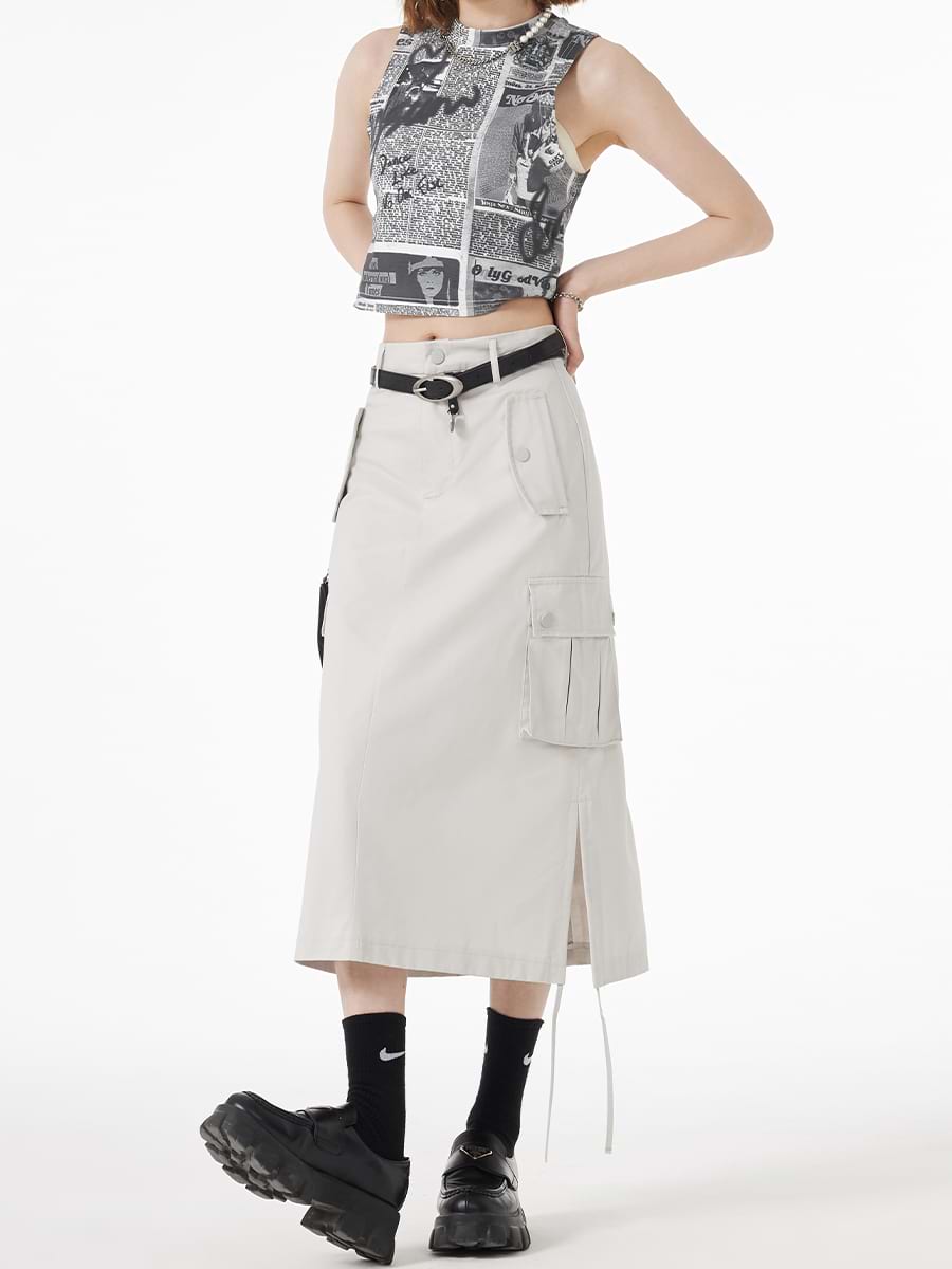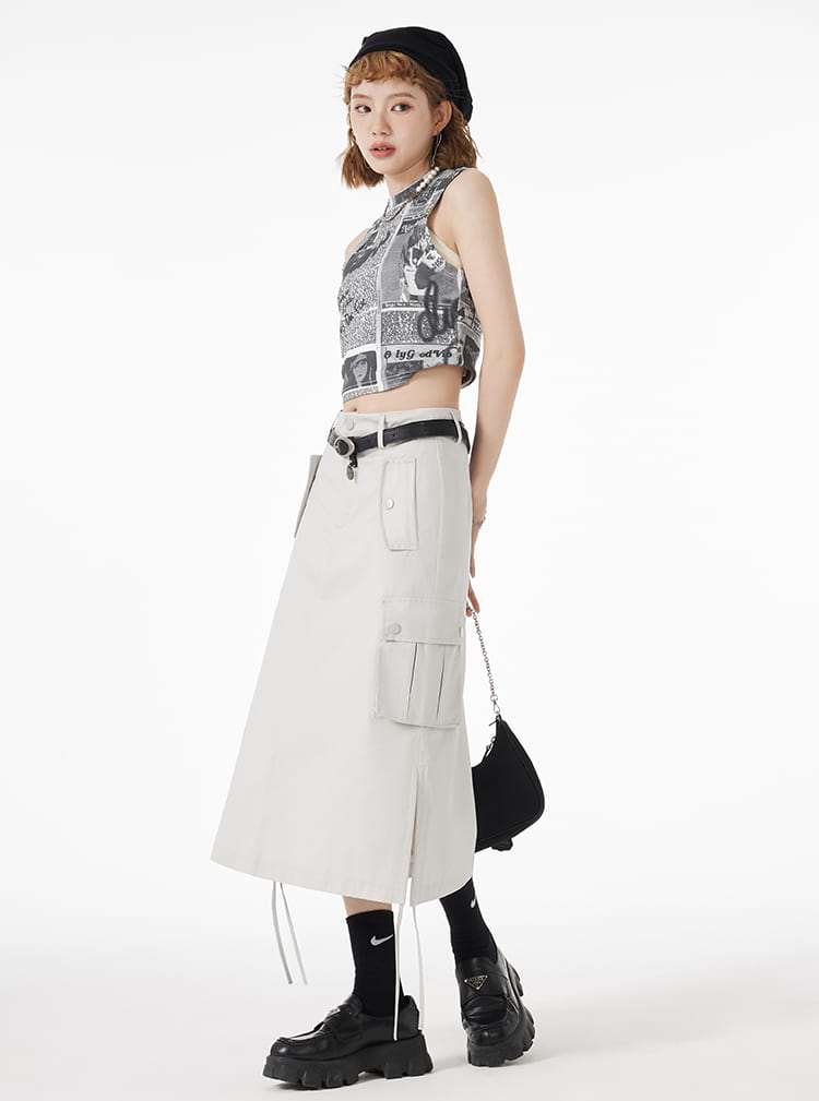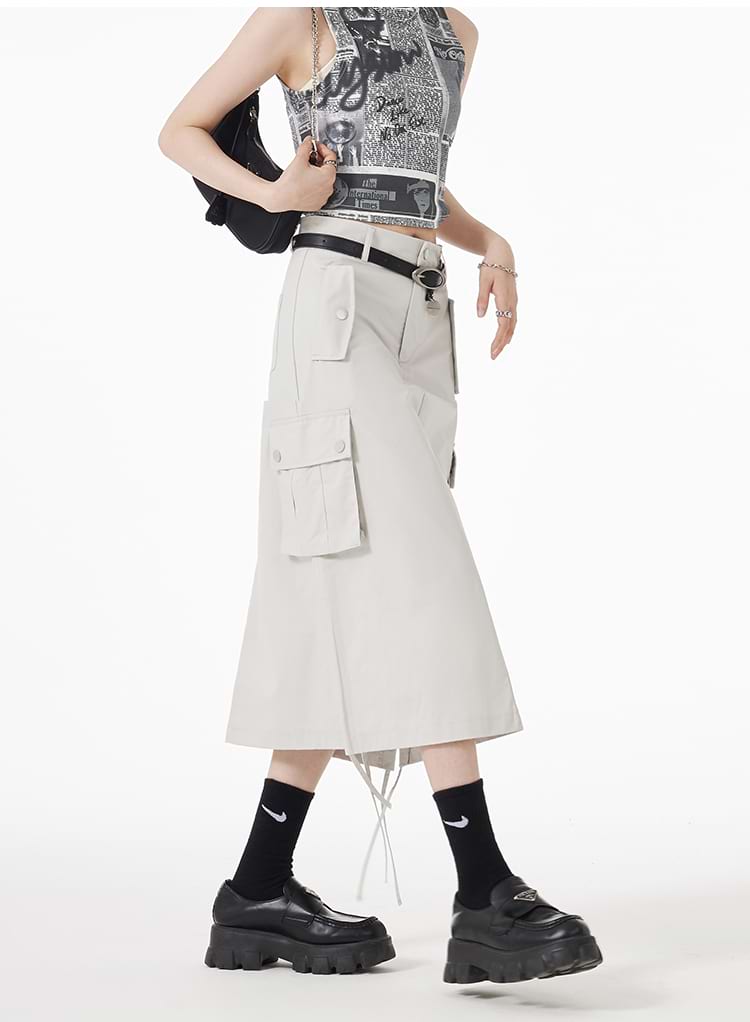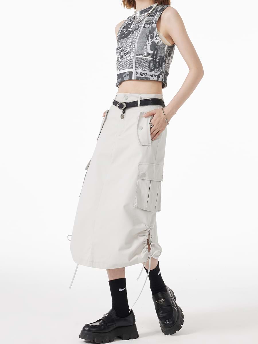 Ruched Side Cargo Midi Skirt