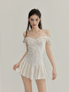 Ruffle Lace Off Shoulder Pleated Mini Dress