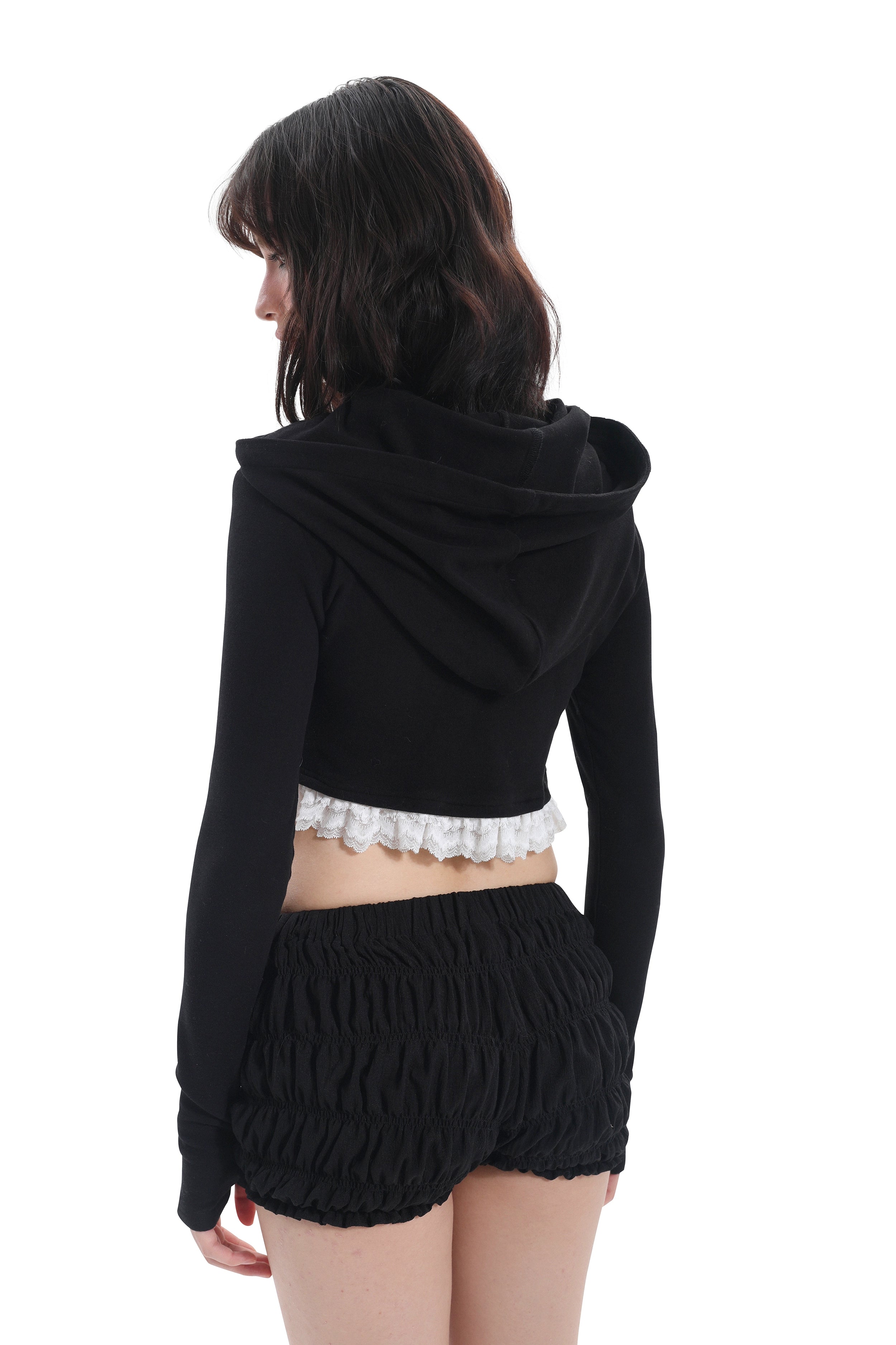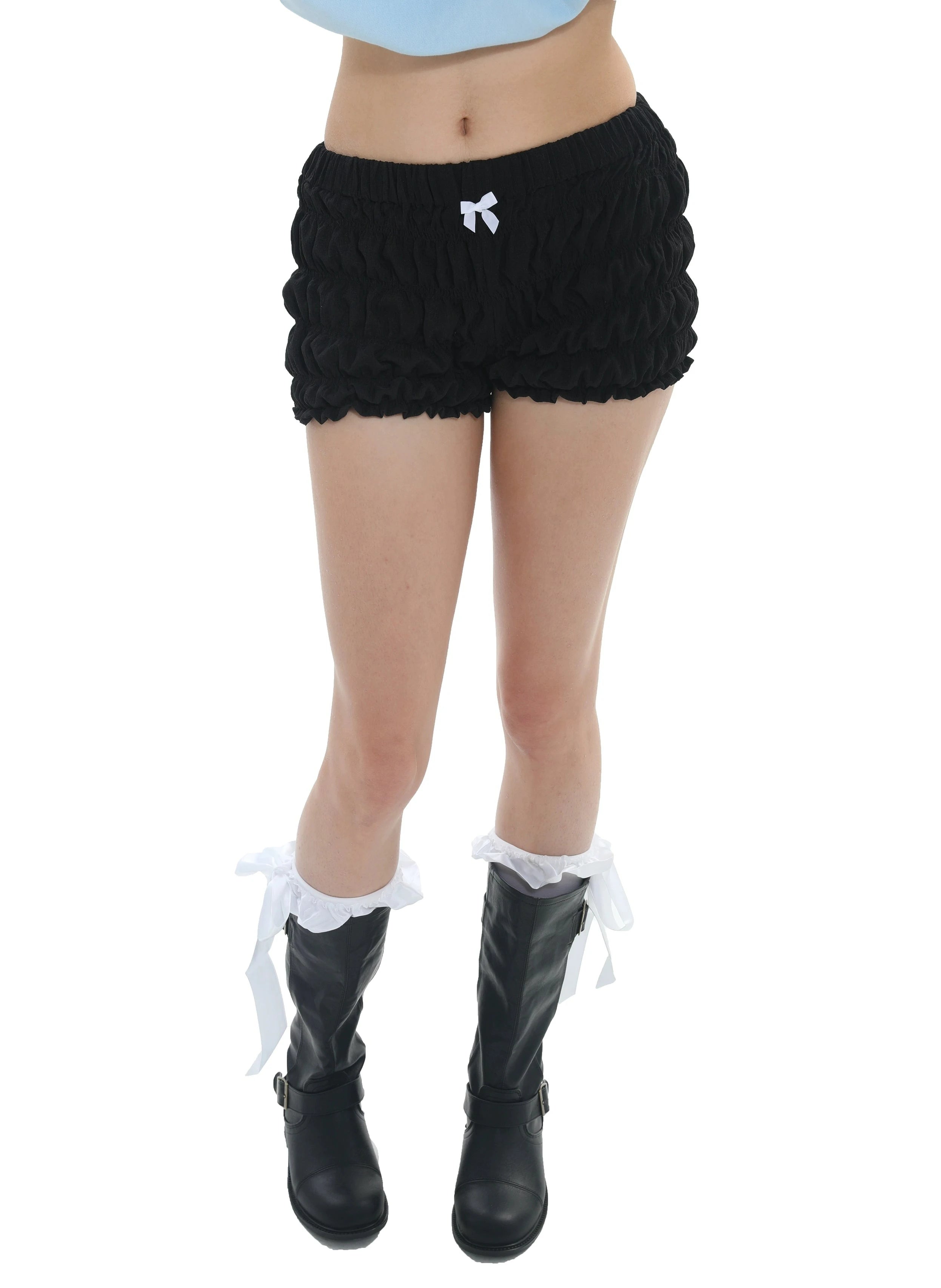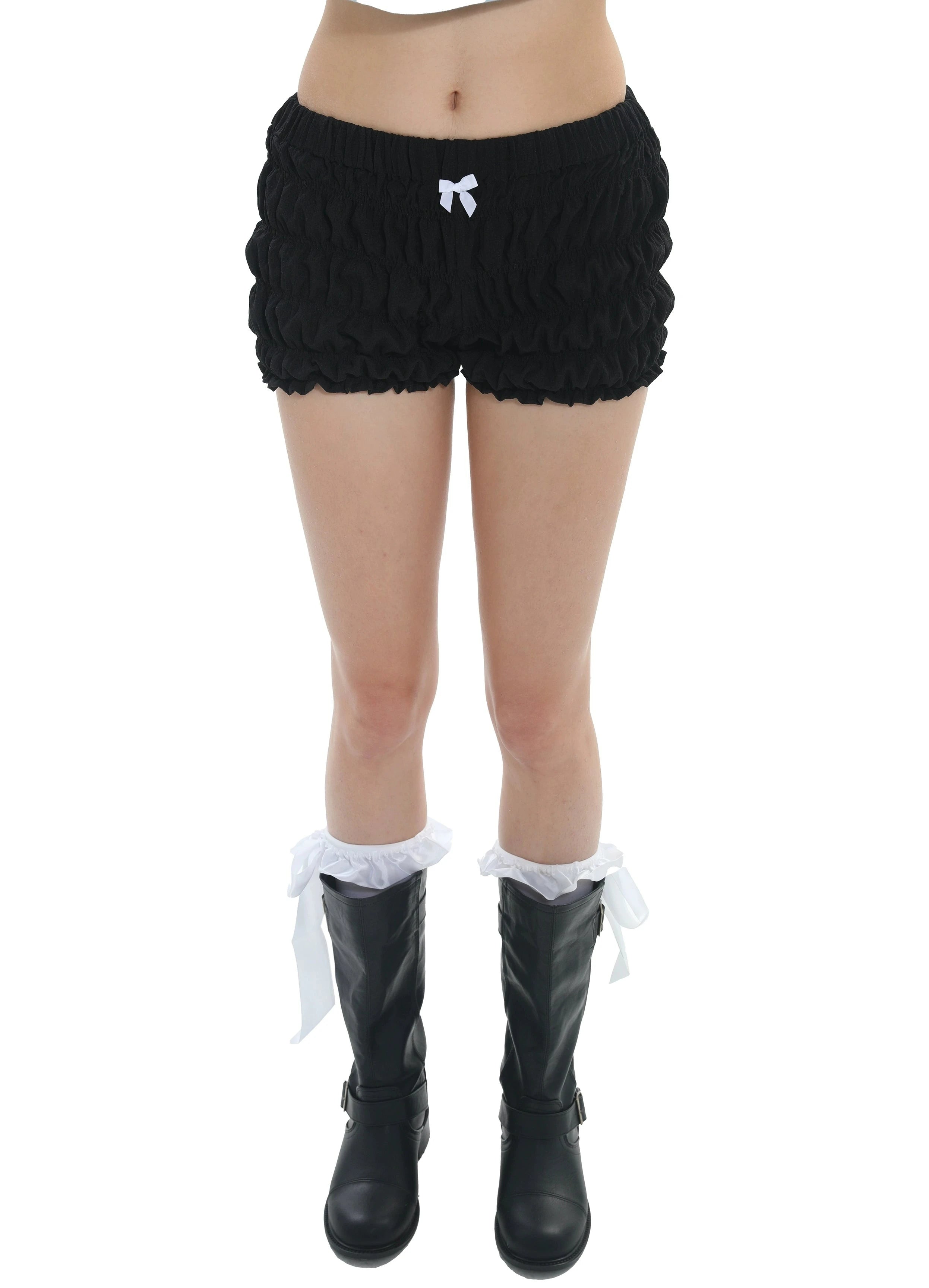 Read full Return PolicyCapture the essence of '90s American sweetheart style with a moody twist in our Ruffled Scallop Hem Elastic Waist Bloomer Shorts.
