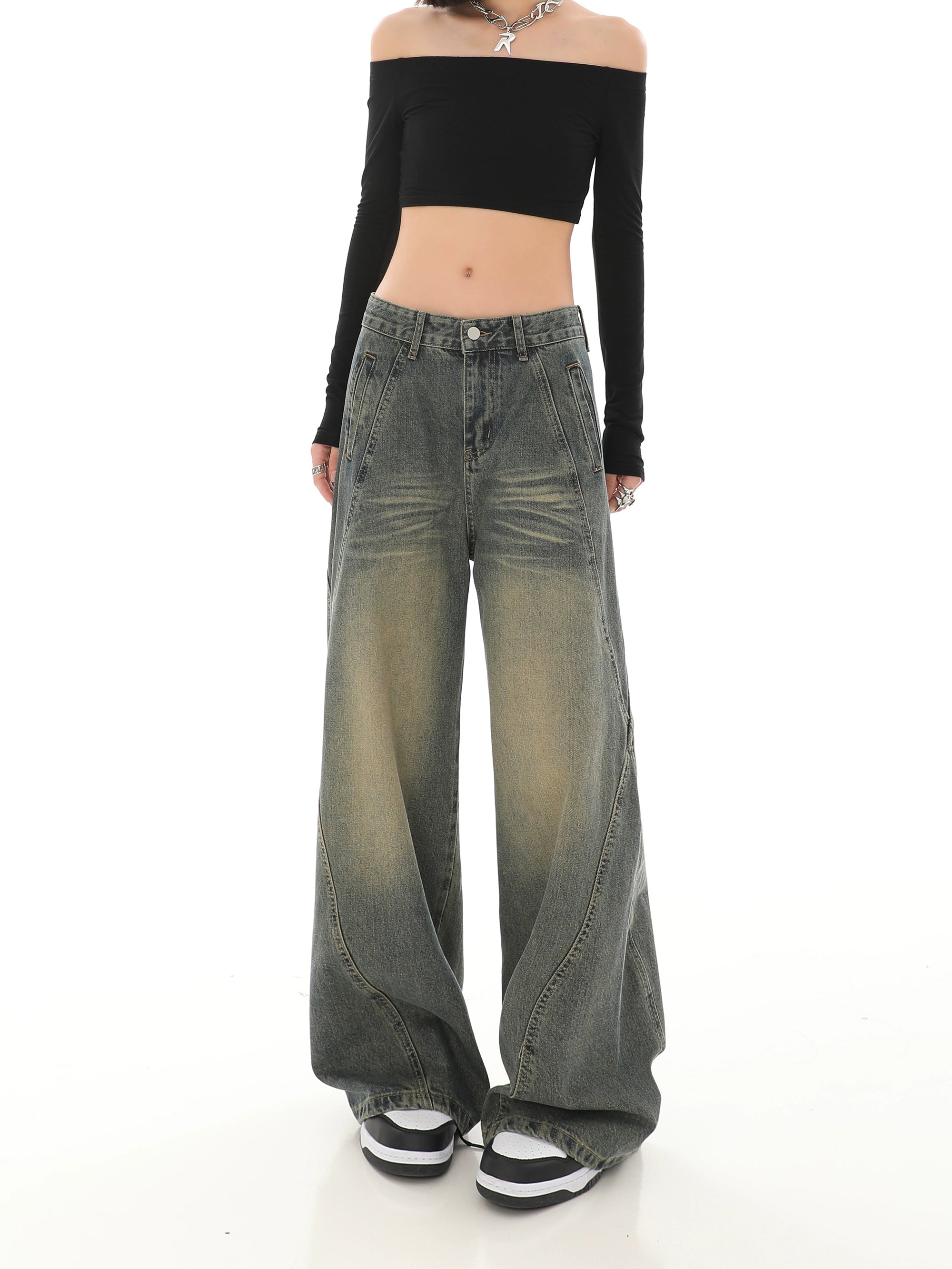 Sandblast Wide-Leg Jeans with Stitch Detail