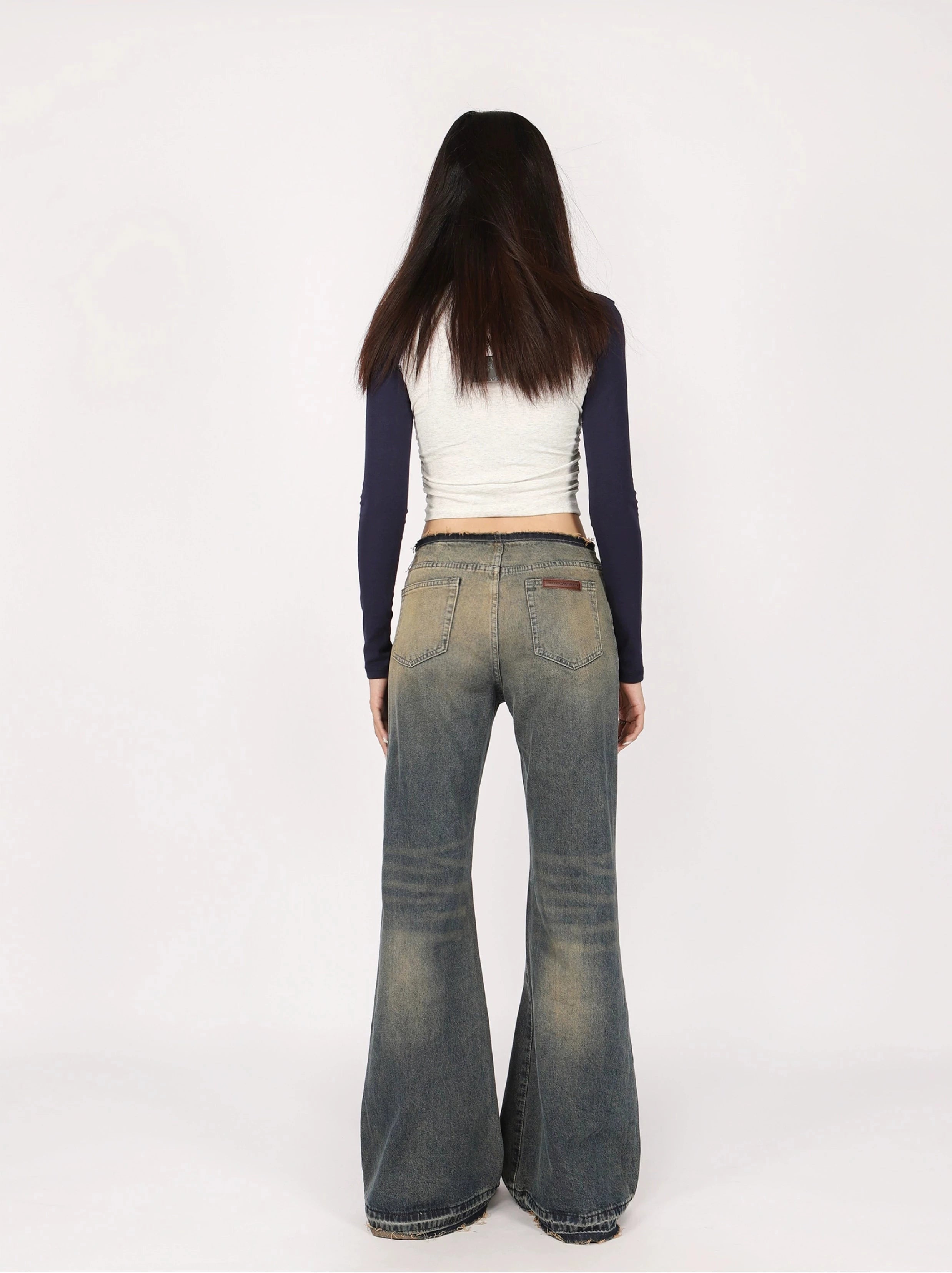 Read full Return PolicySemi-flare sandblast denim jeans offer a slim fit at the thighs and flare with a wide cut at the ankle for a modern street style that won't go out of fashion. The vintage sandblast fade adds a timeless charm. These jeans pair classic charm with modern street style, and are cut for a flattering slim fit. Complete your look with effortless style.