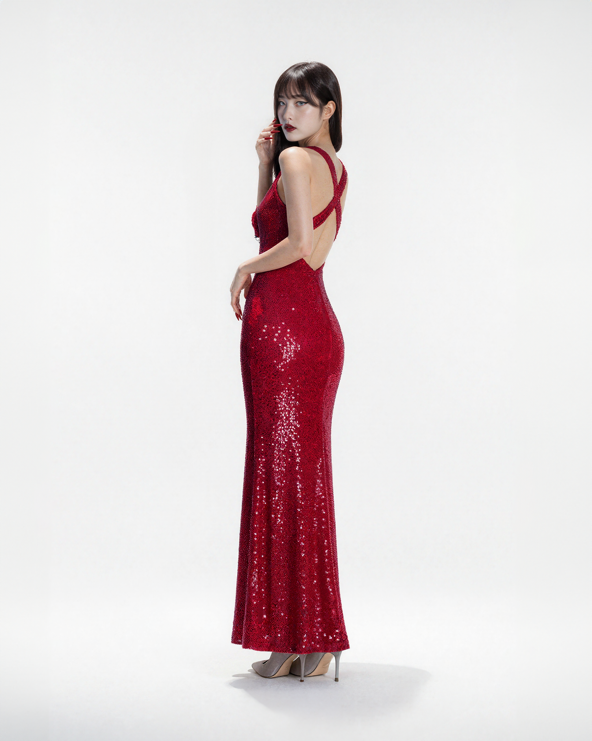 Read full Return PolicyThe Sequin Bodycon Maxi Dress with Flower Applique Detail is designed for the spotlight, catching the light from every angle with its full-sequin finish and sculpting silhouette.