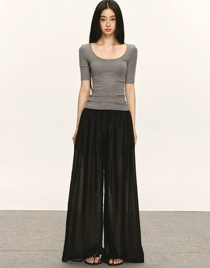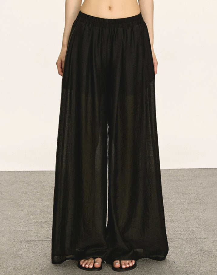 Sheer Lightweight Wide Leg Elastic Waist Pants