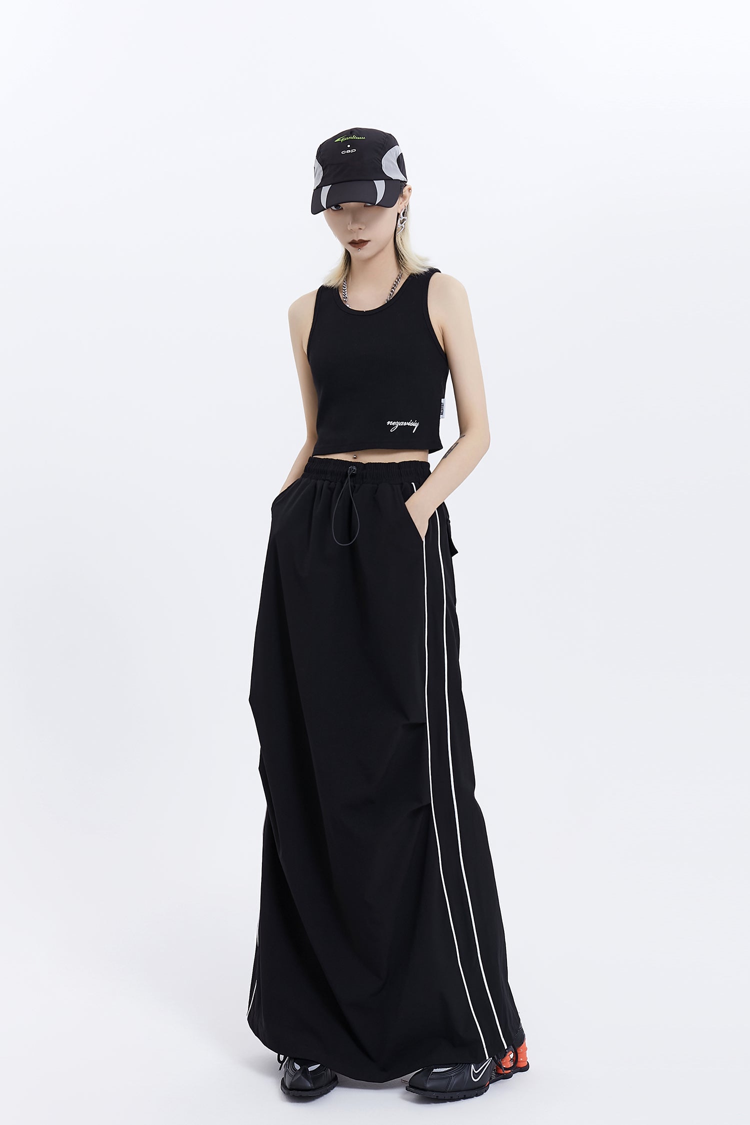 Read full Return PolicyAdd a touch of feminine swagger to your wardrobe with this chic long skirt by nightcity clothing. This minimal pleated skirt is designed with a side stripe and back slit to give any top a fresh, modern look. Two back pockets also make it practical enough to take you anywhere you need. Whether it’s to the office or out on a date, this skirt will be your go-to staple.