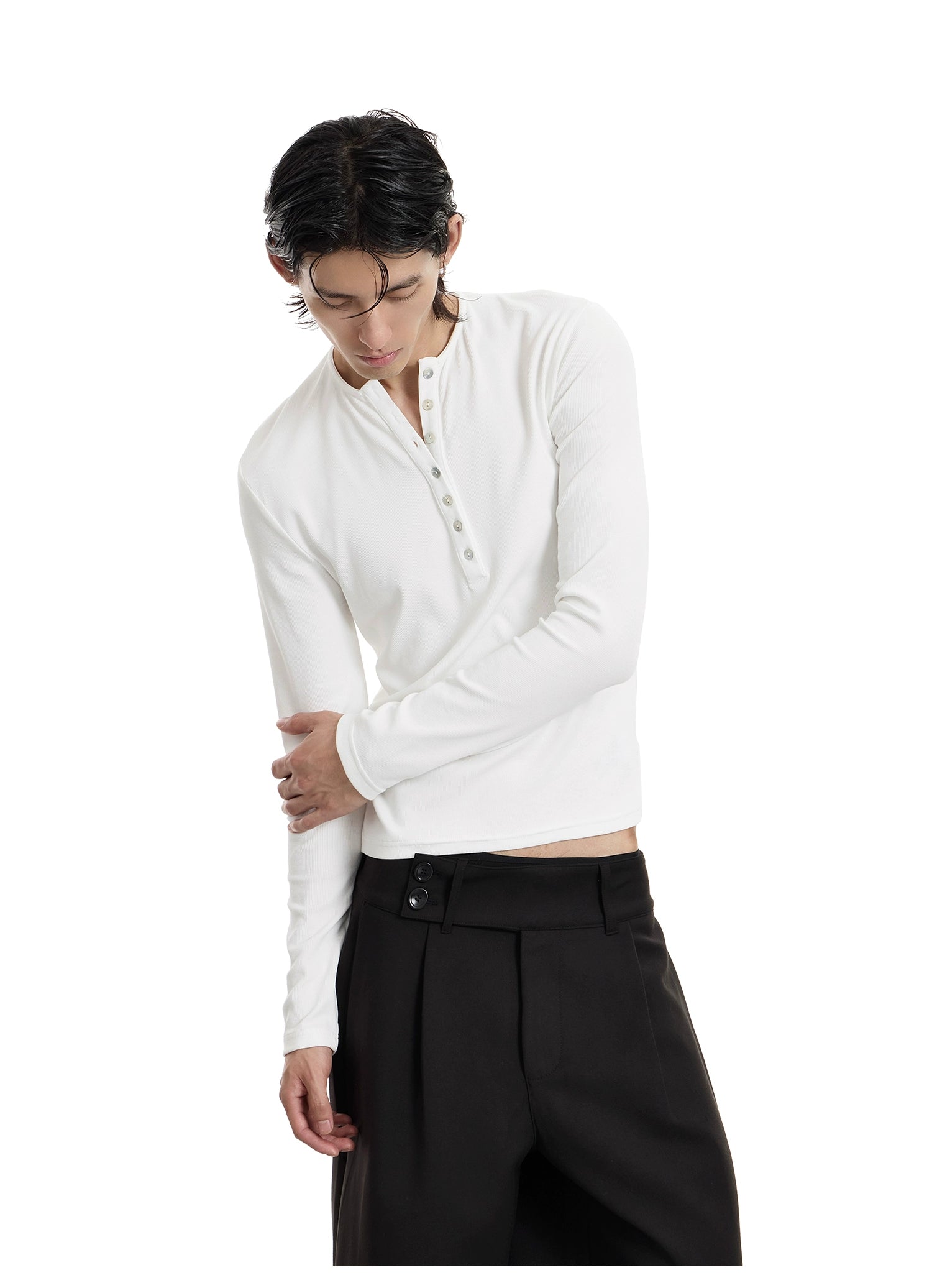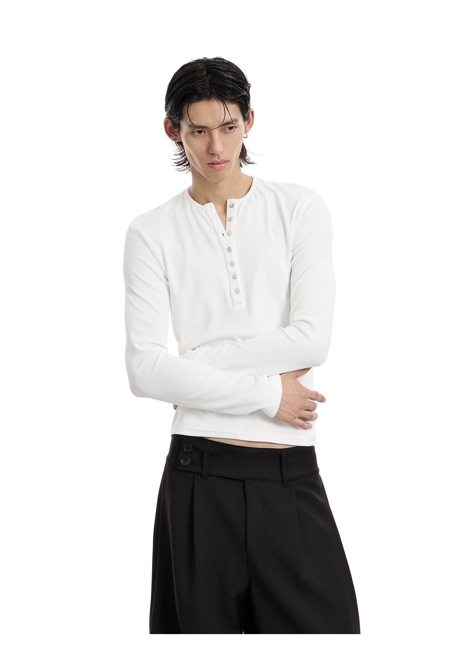 Skinny-Fit Henley Button Long Sleeve T-Shirt