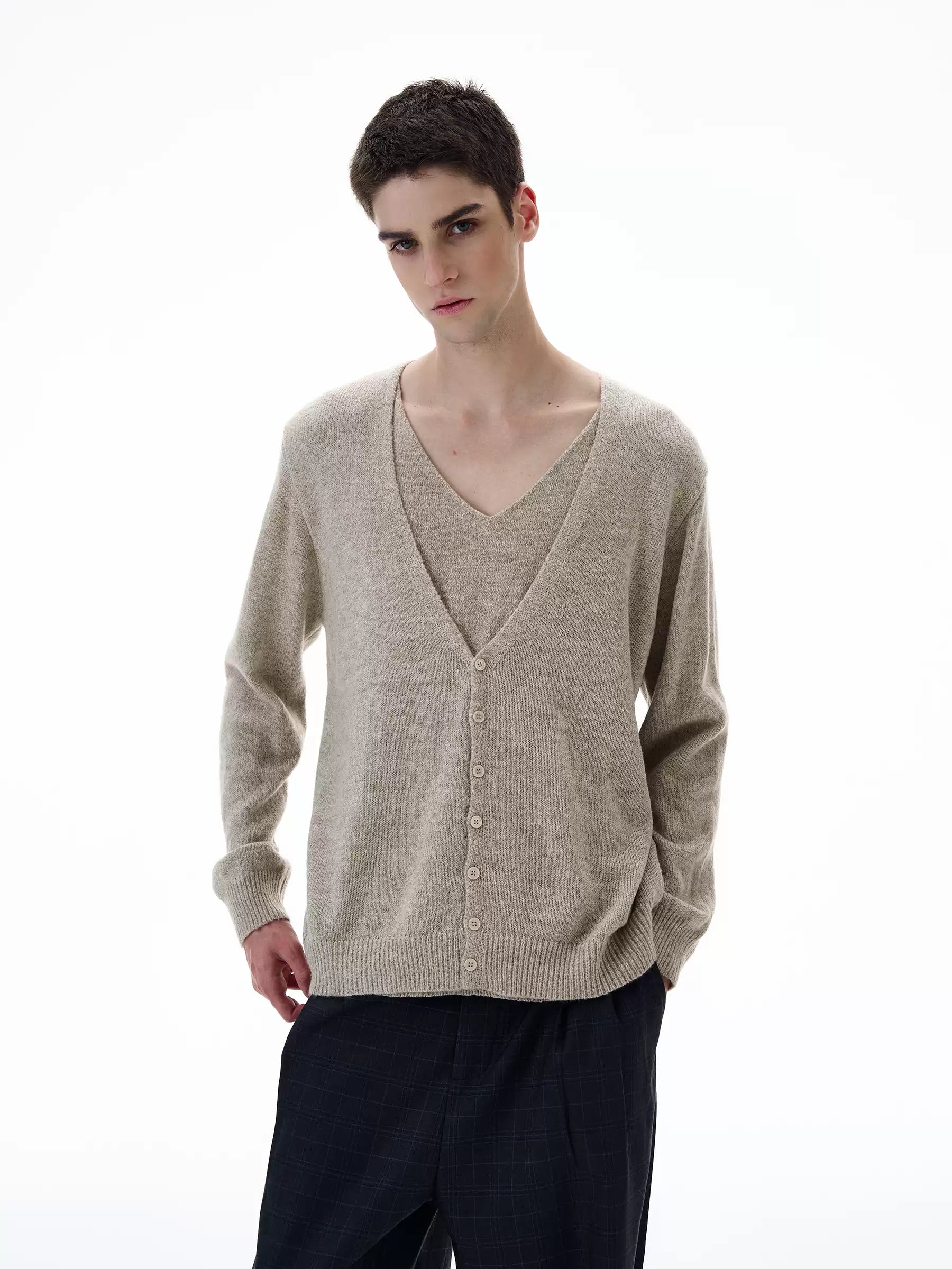 Read full Return PolicyThis mock layered button cardigan delivers an effortless layered look without the bulk, blending a clean design with subtle streetwear influence.