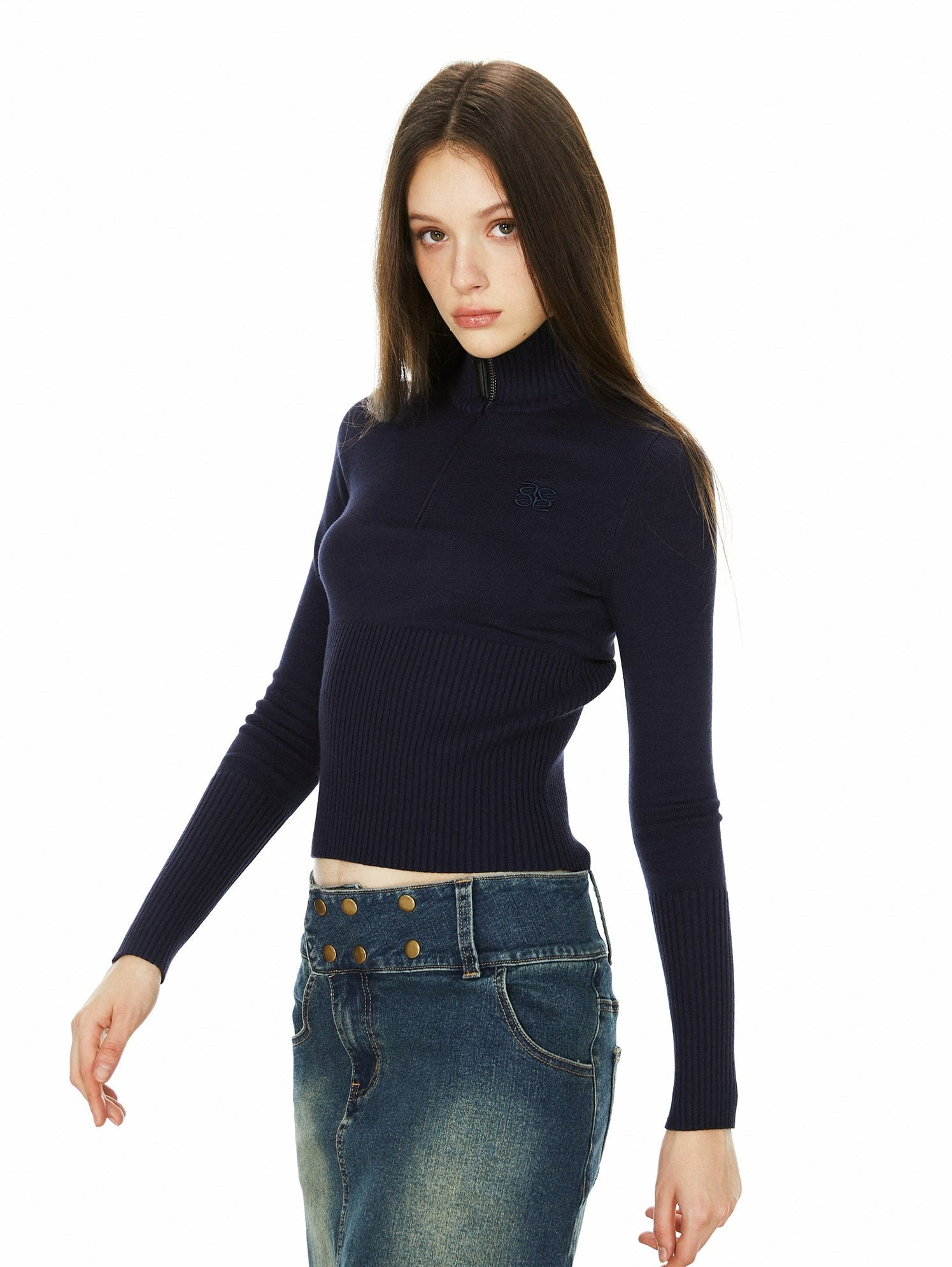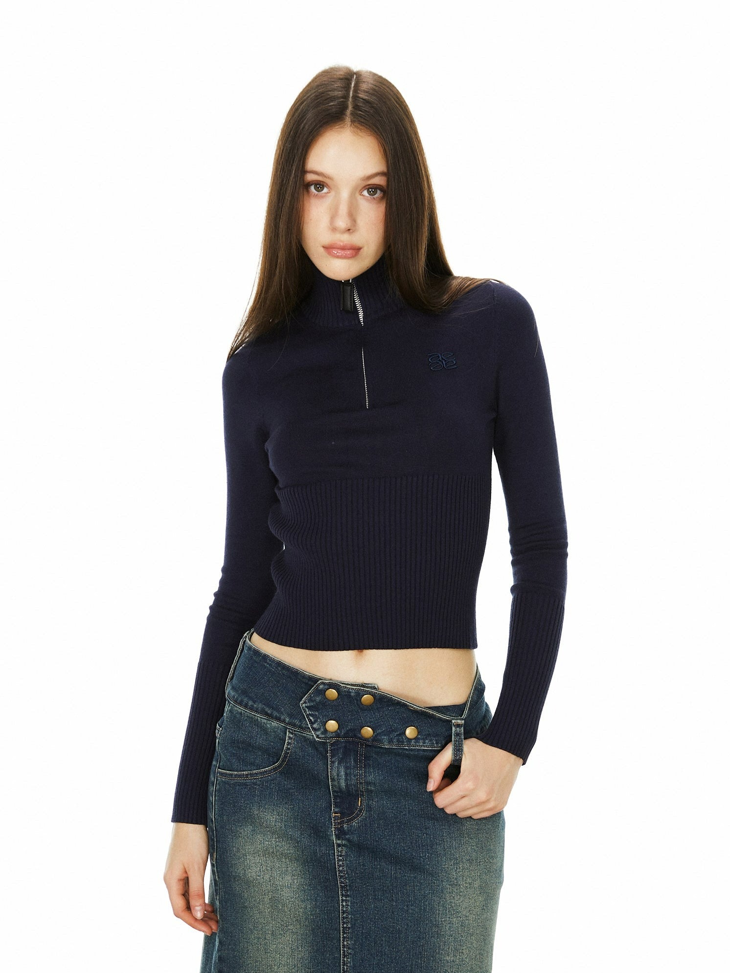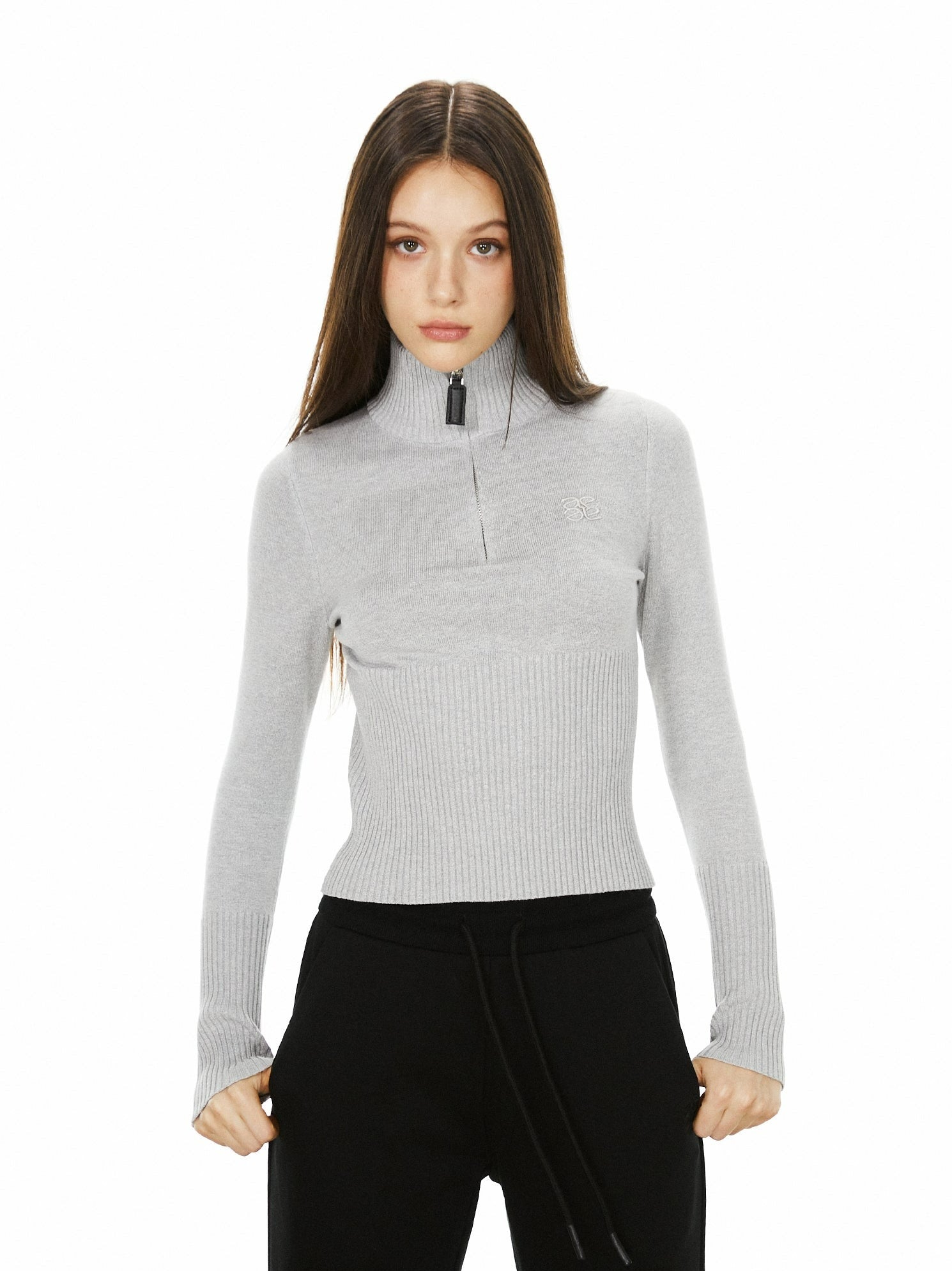 Skinny Ribbed Quarter Zip-Up Turtleneck Sweater