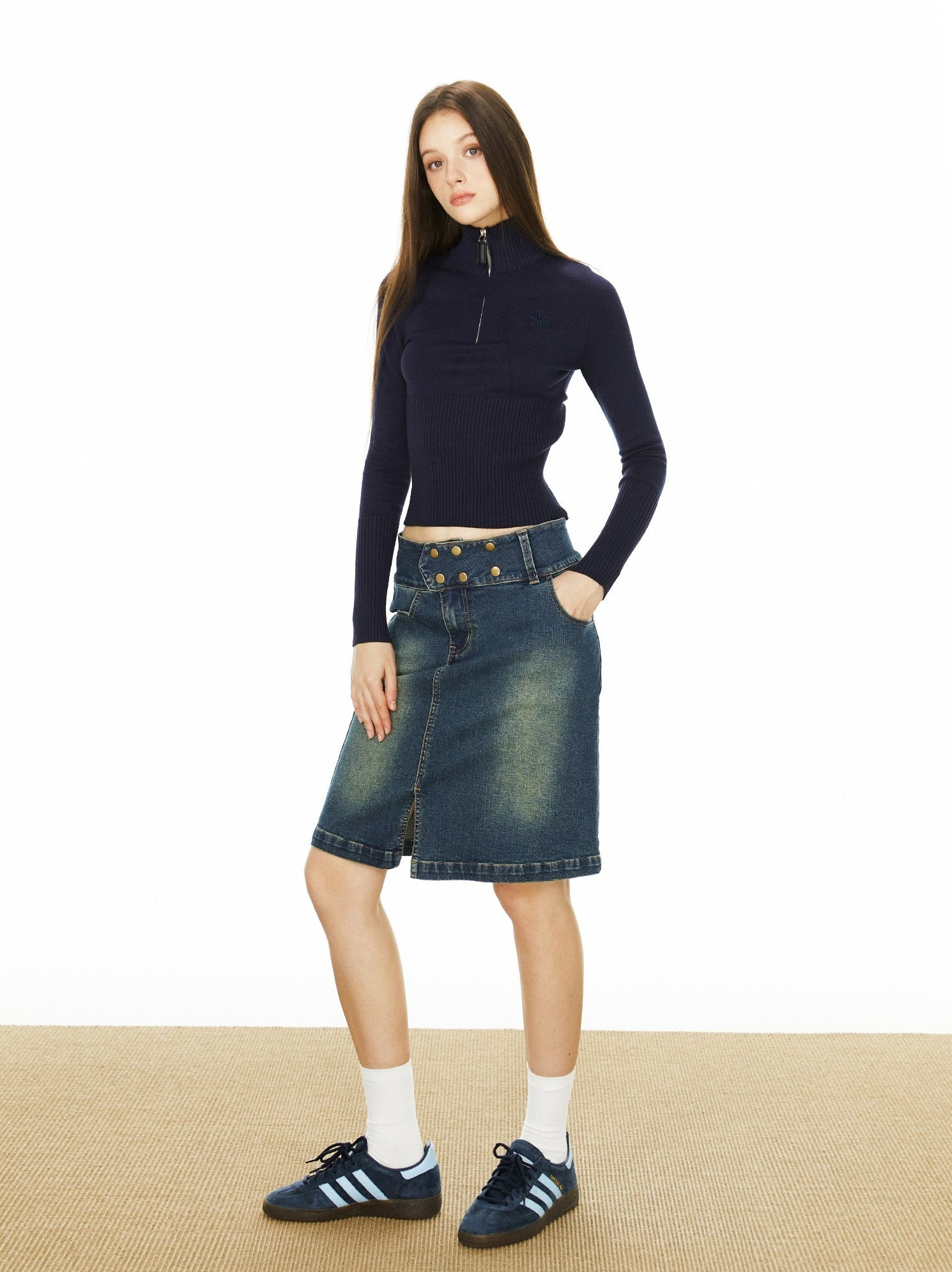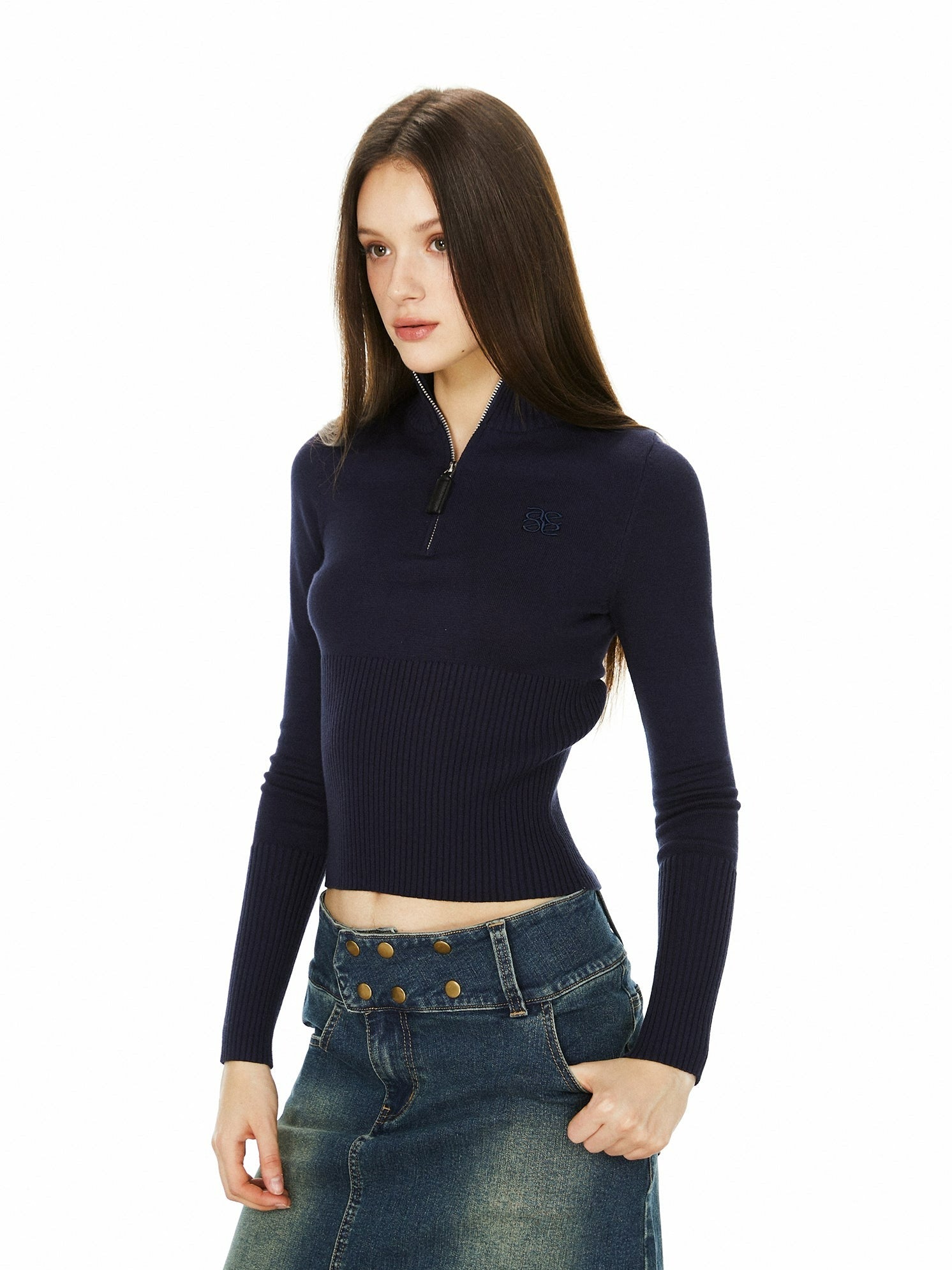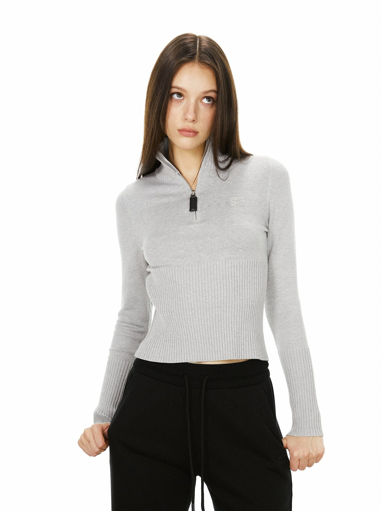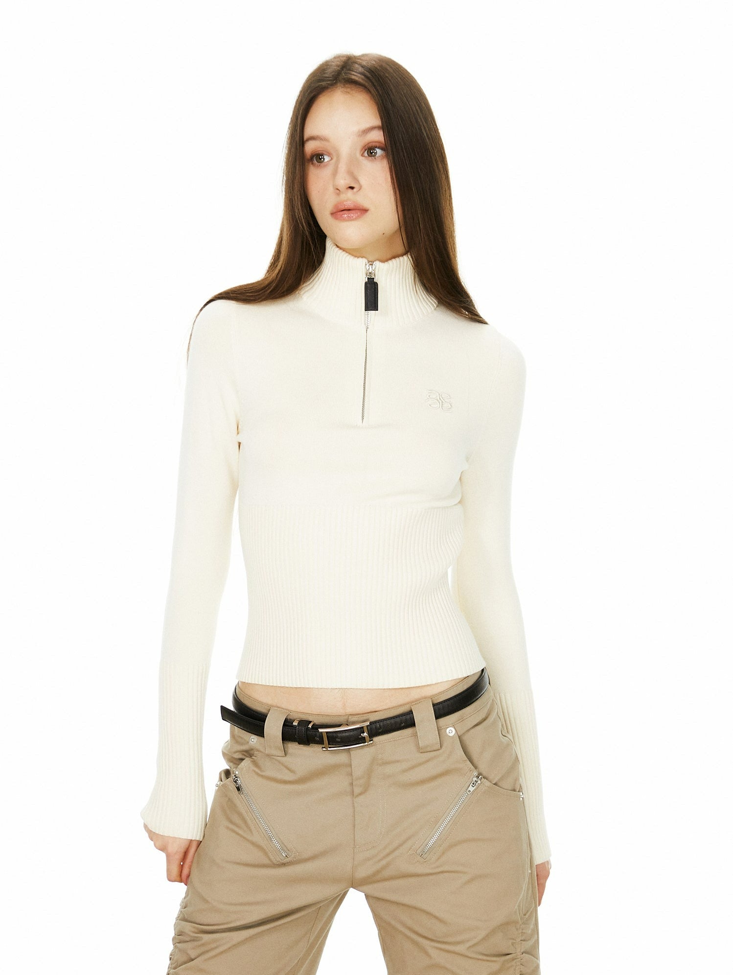 Skinny Ribbed Quarter Zip-Up Turtleneck Sweater