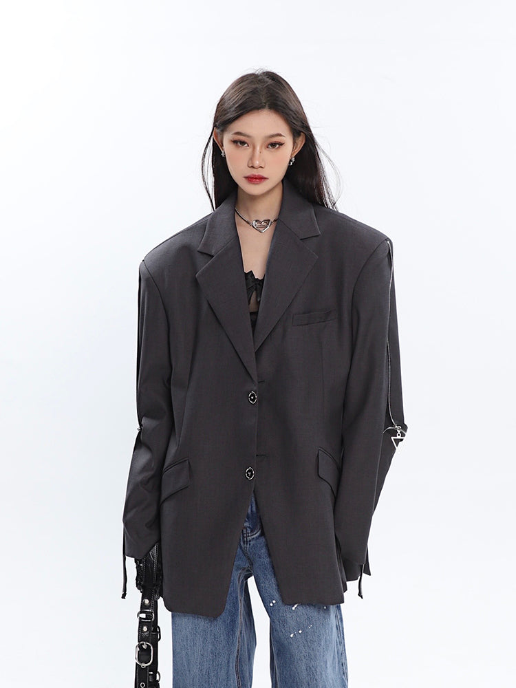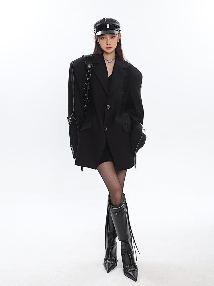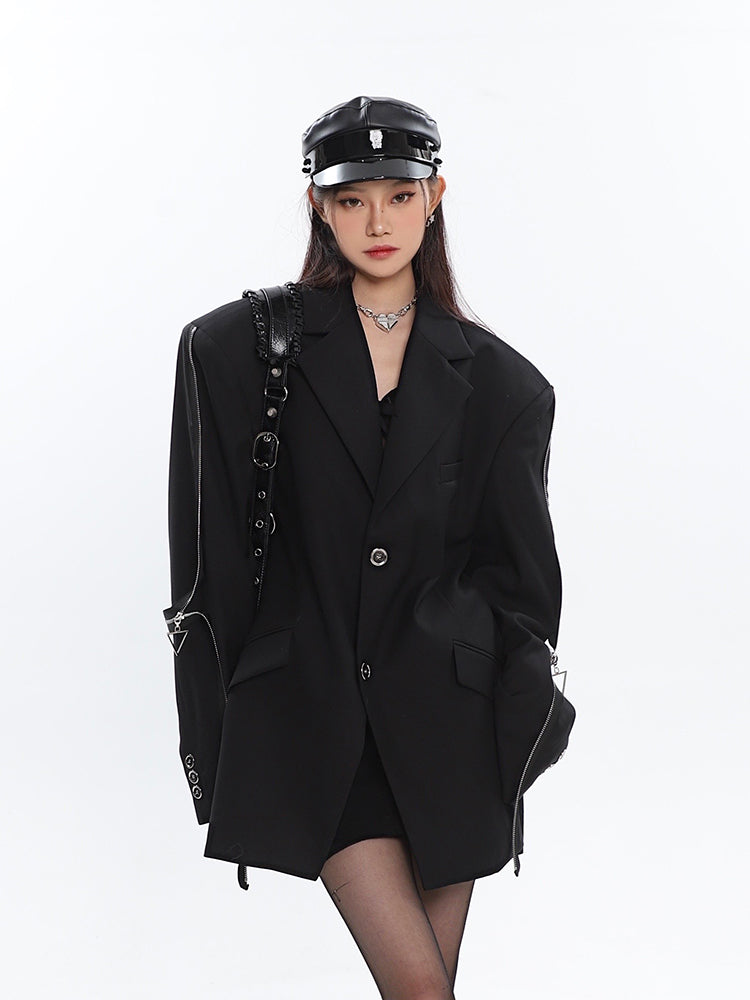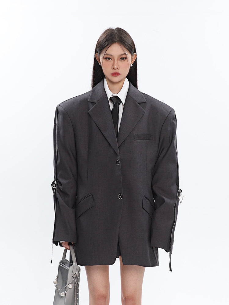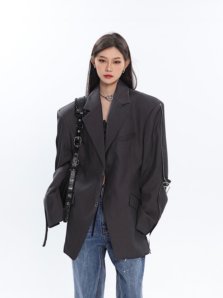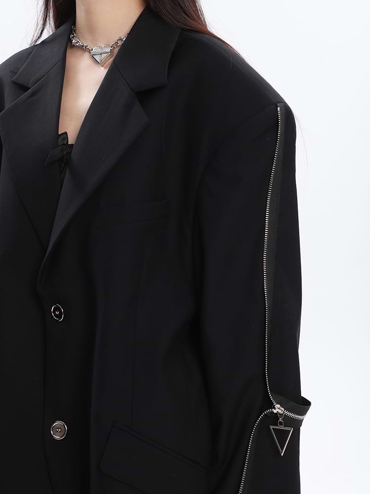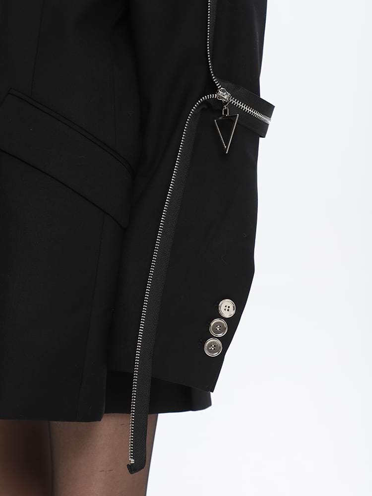 Sleeve Zip Blazer with Shoulder Pads