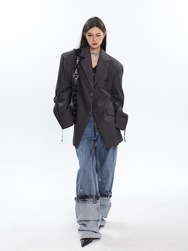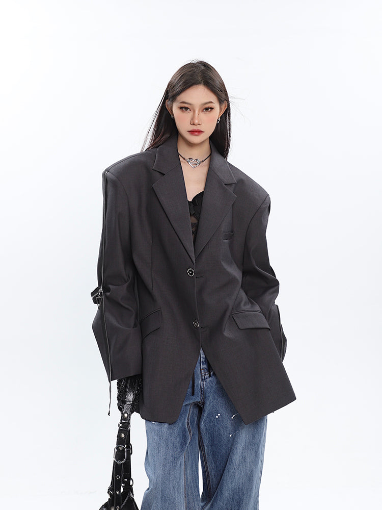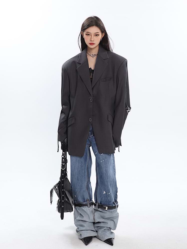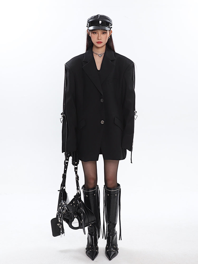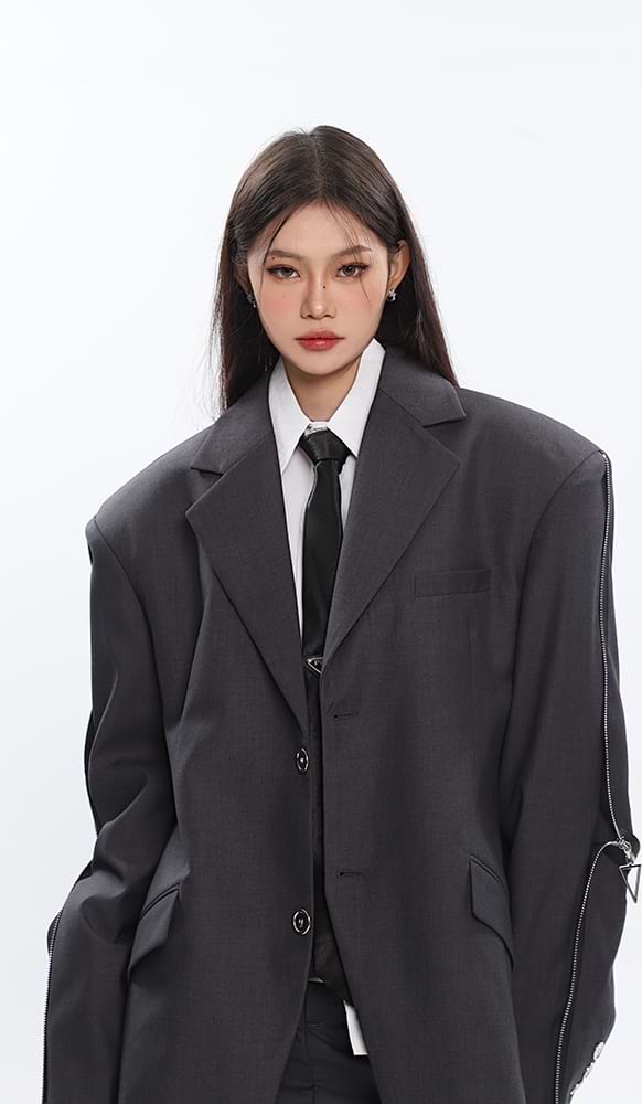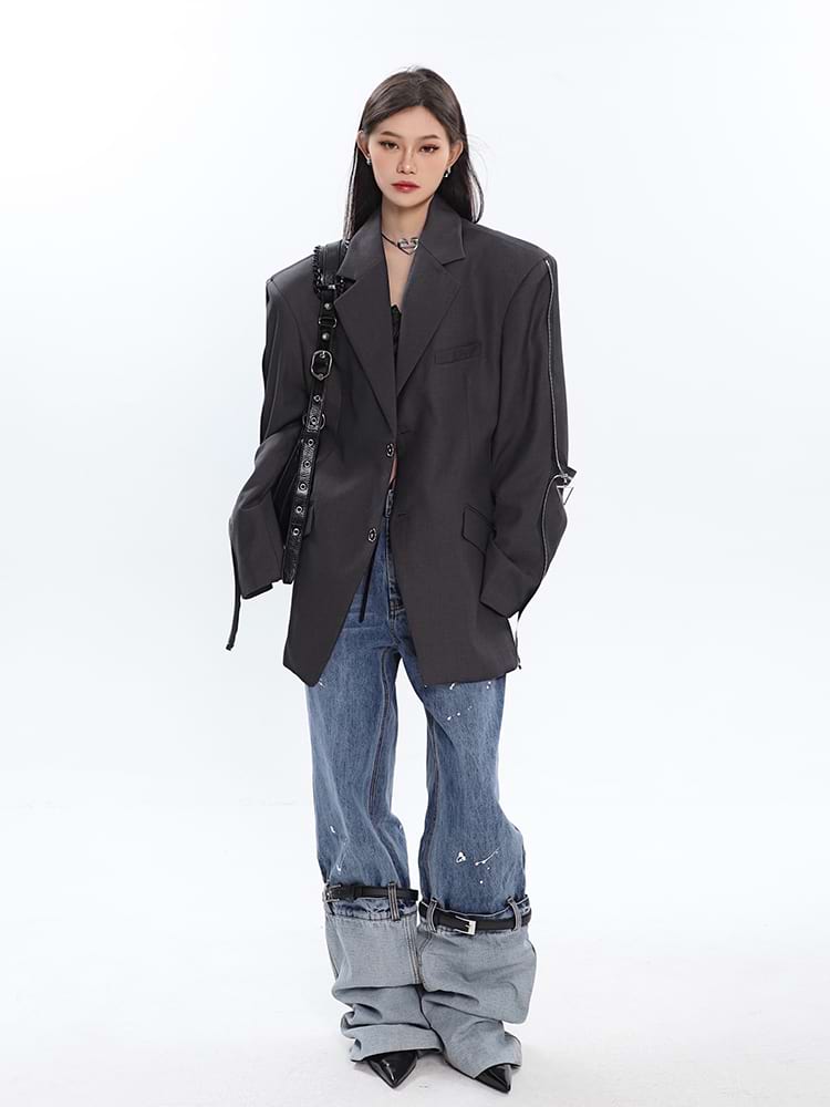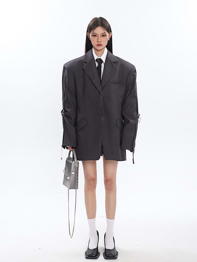 Sleeve Zip Blazer with Shoulder Pads