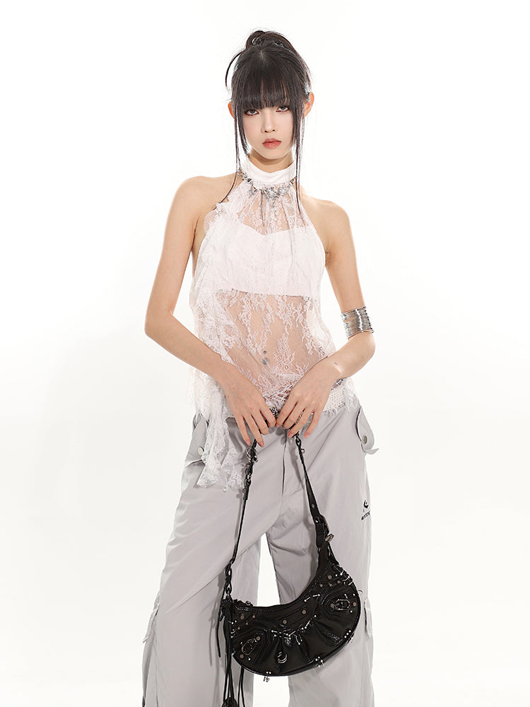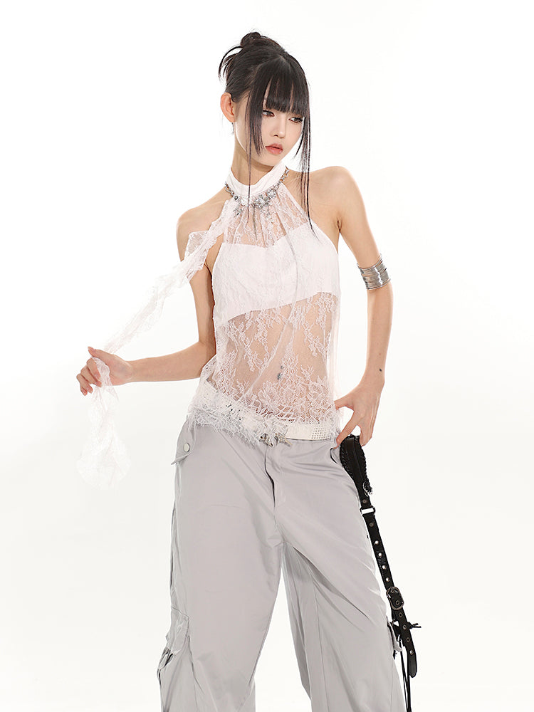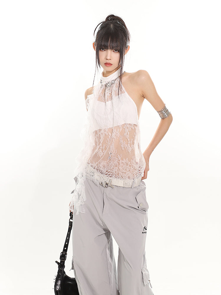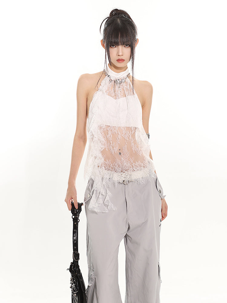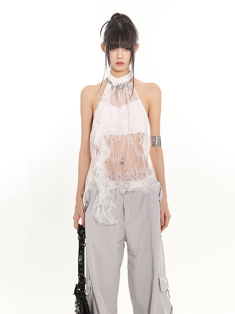 Read full Return PolicyA touch of sophisticated allure, the Sleeveless Lace Halter Neck Crop Top presents a fusion of delicate lace and a contemporary halter neckline. This top elevates the essence of modern chic.