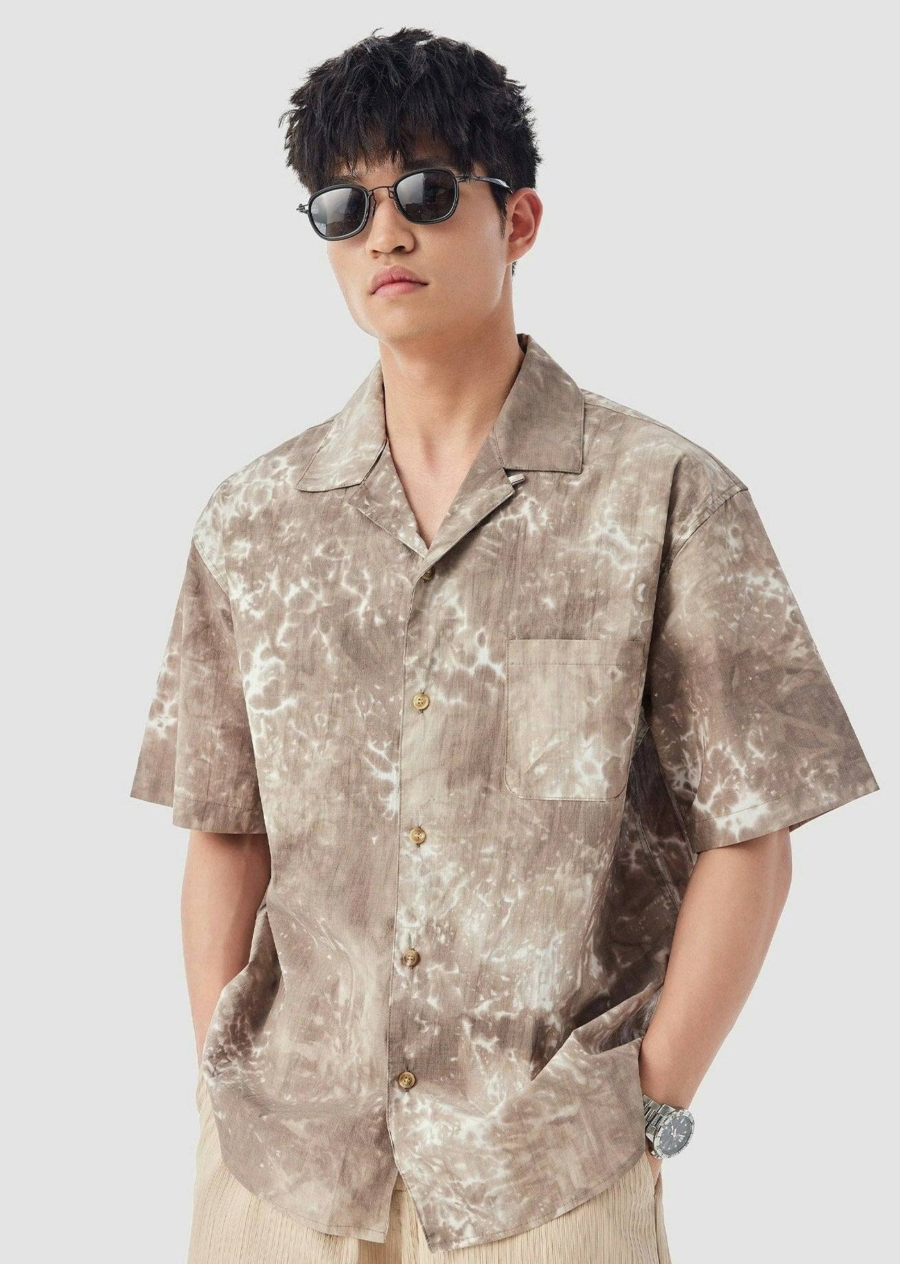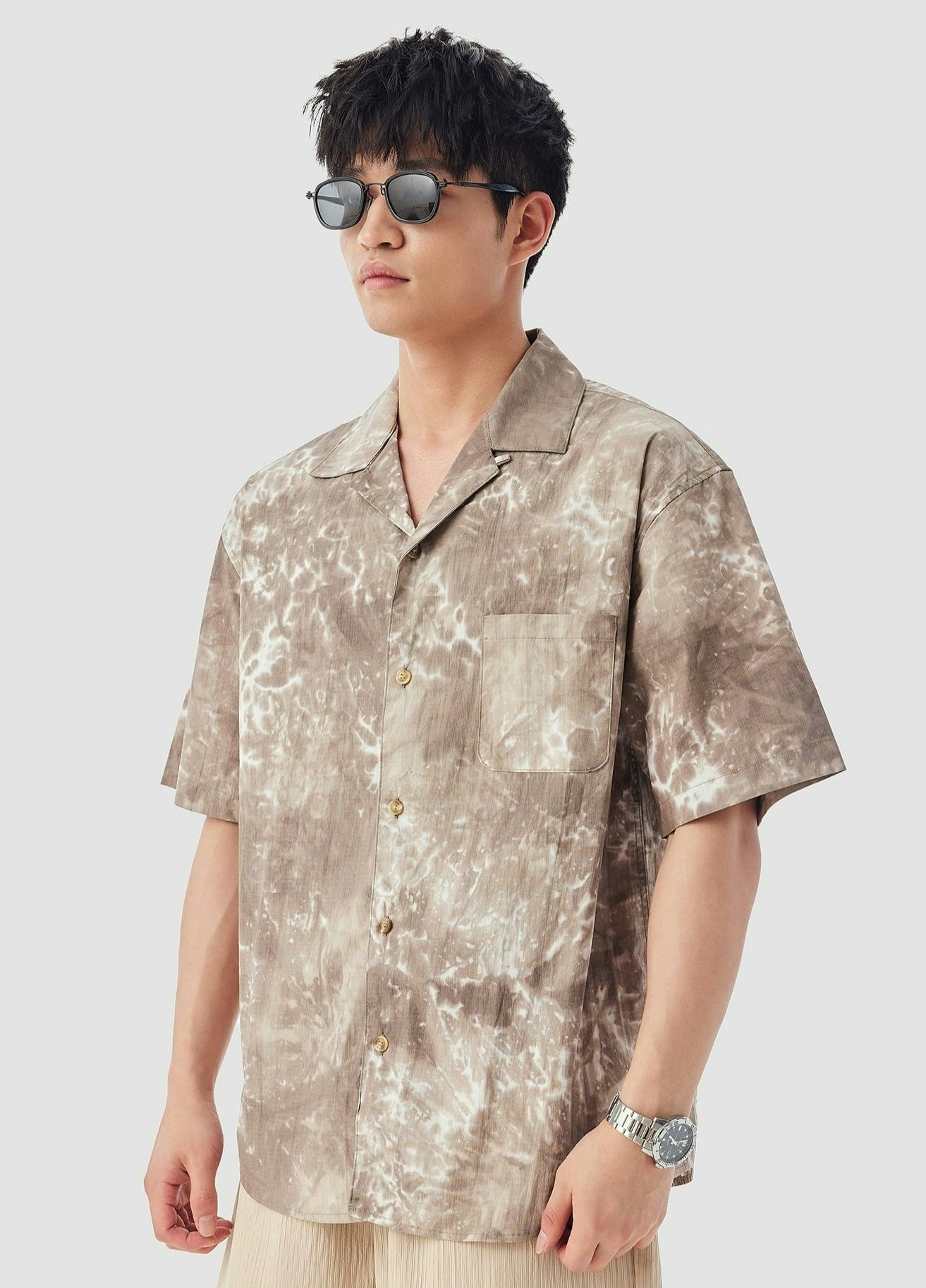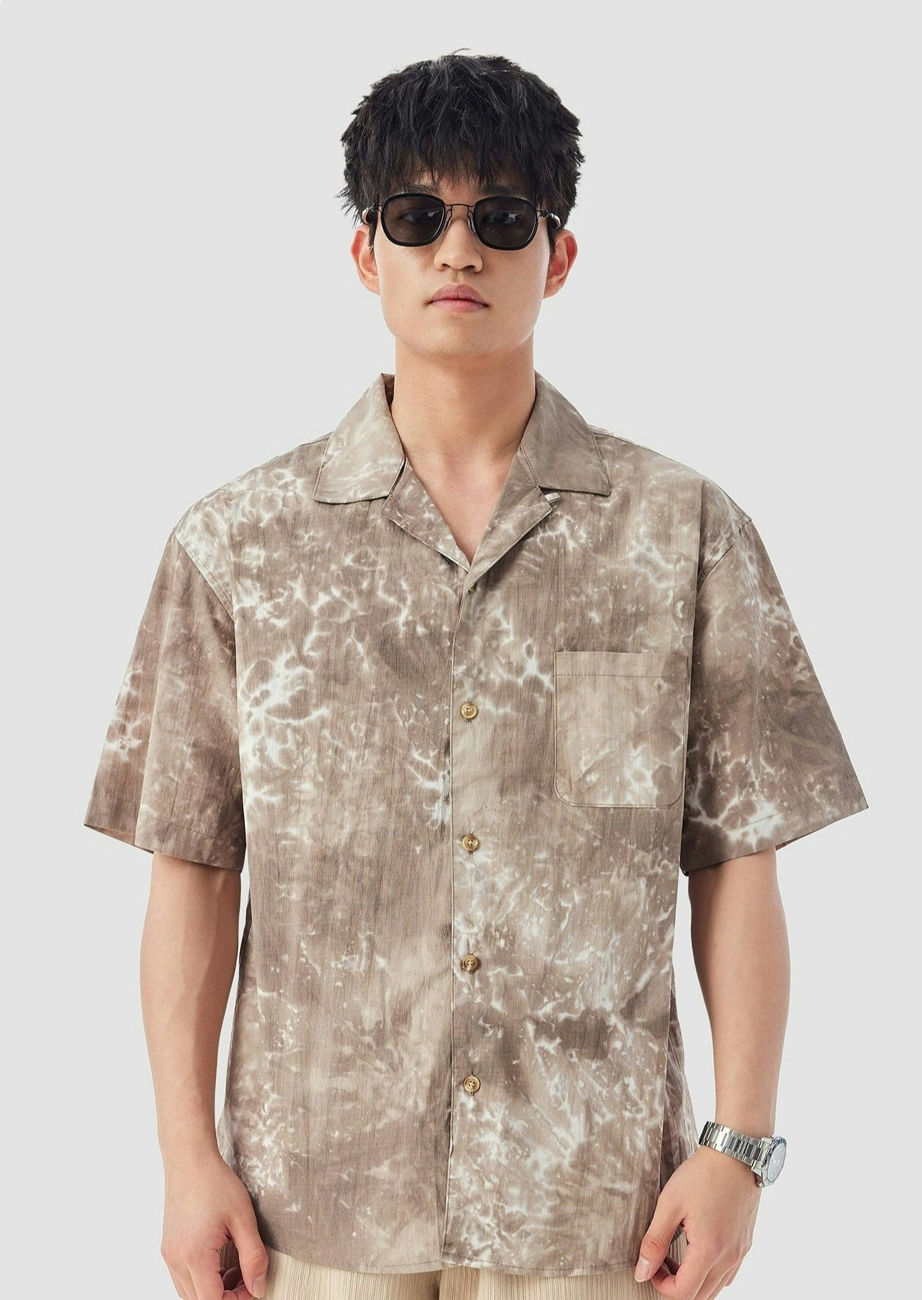 Slim Abstract Print Short Sleeve Button-Up Shirt