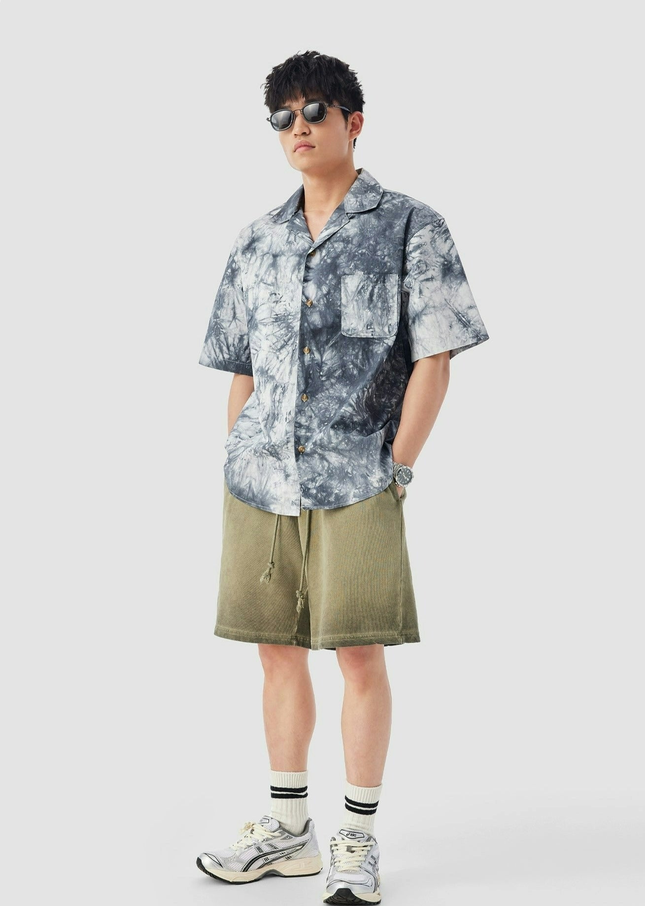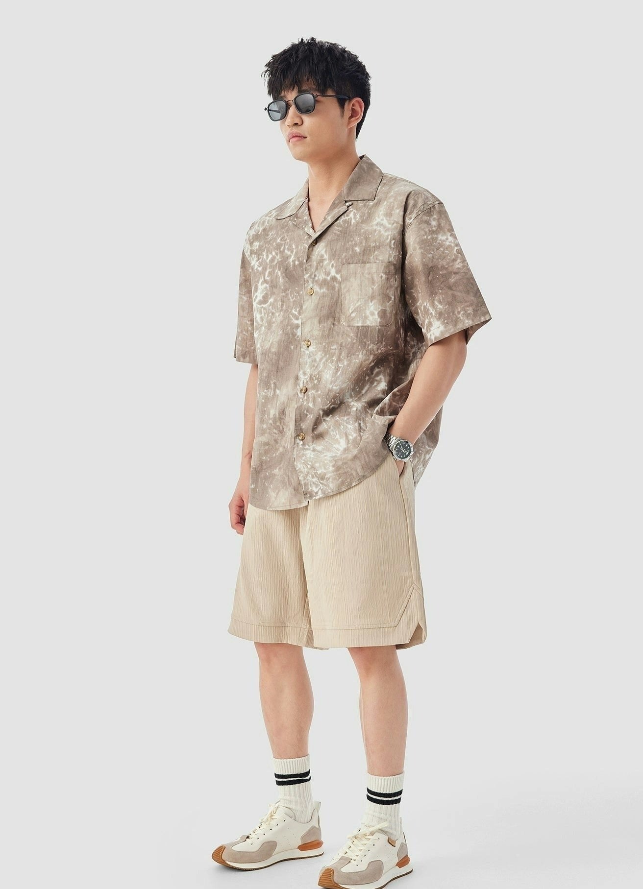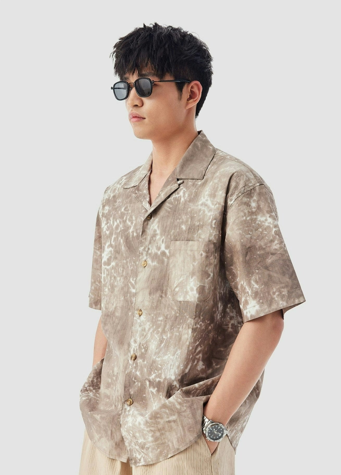 Slim Abstract Print Short Sleeve Button-Up Shirt