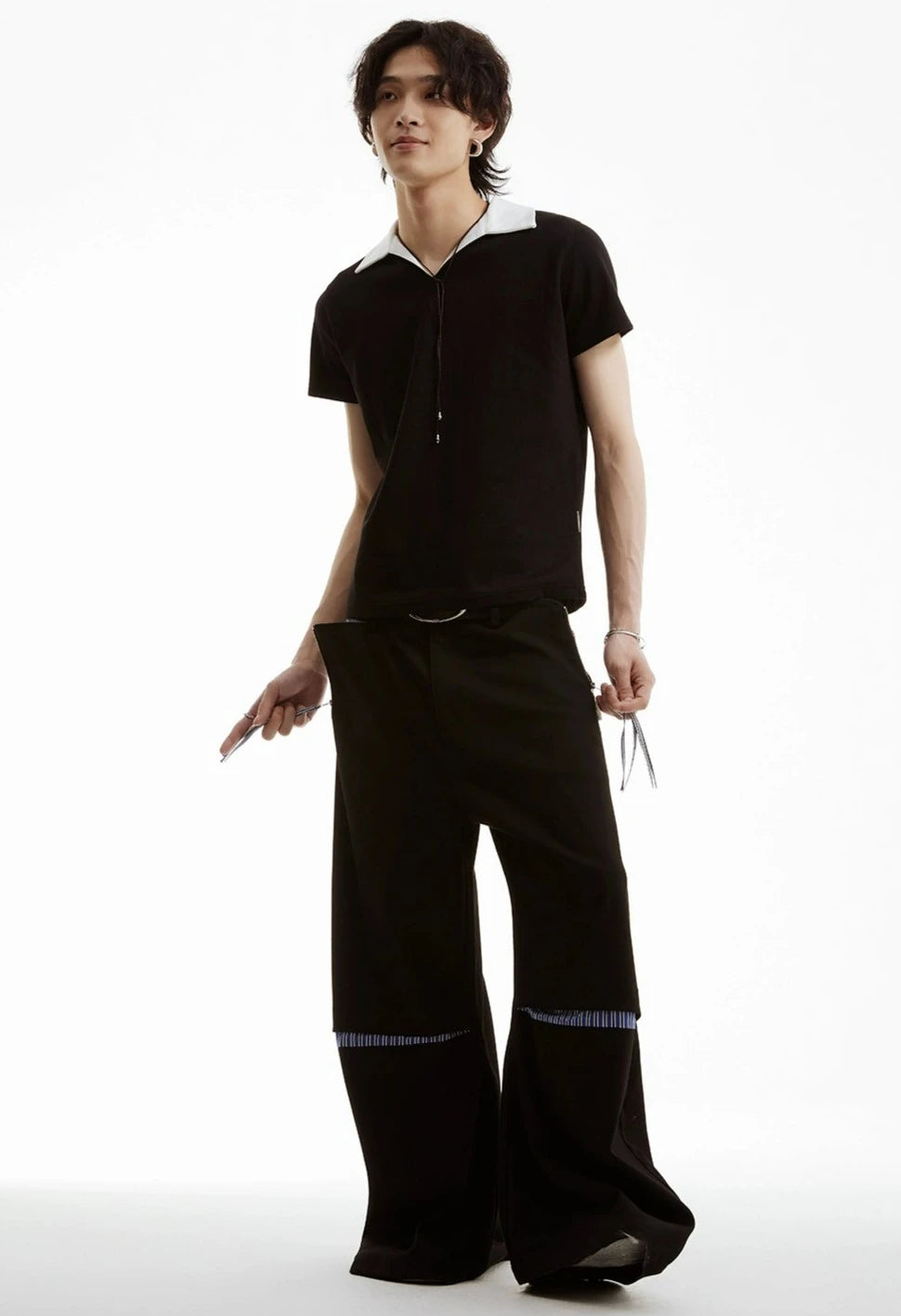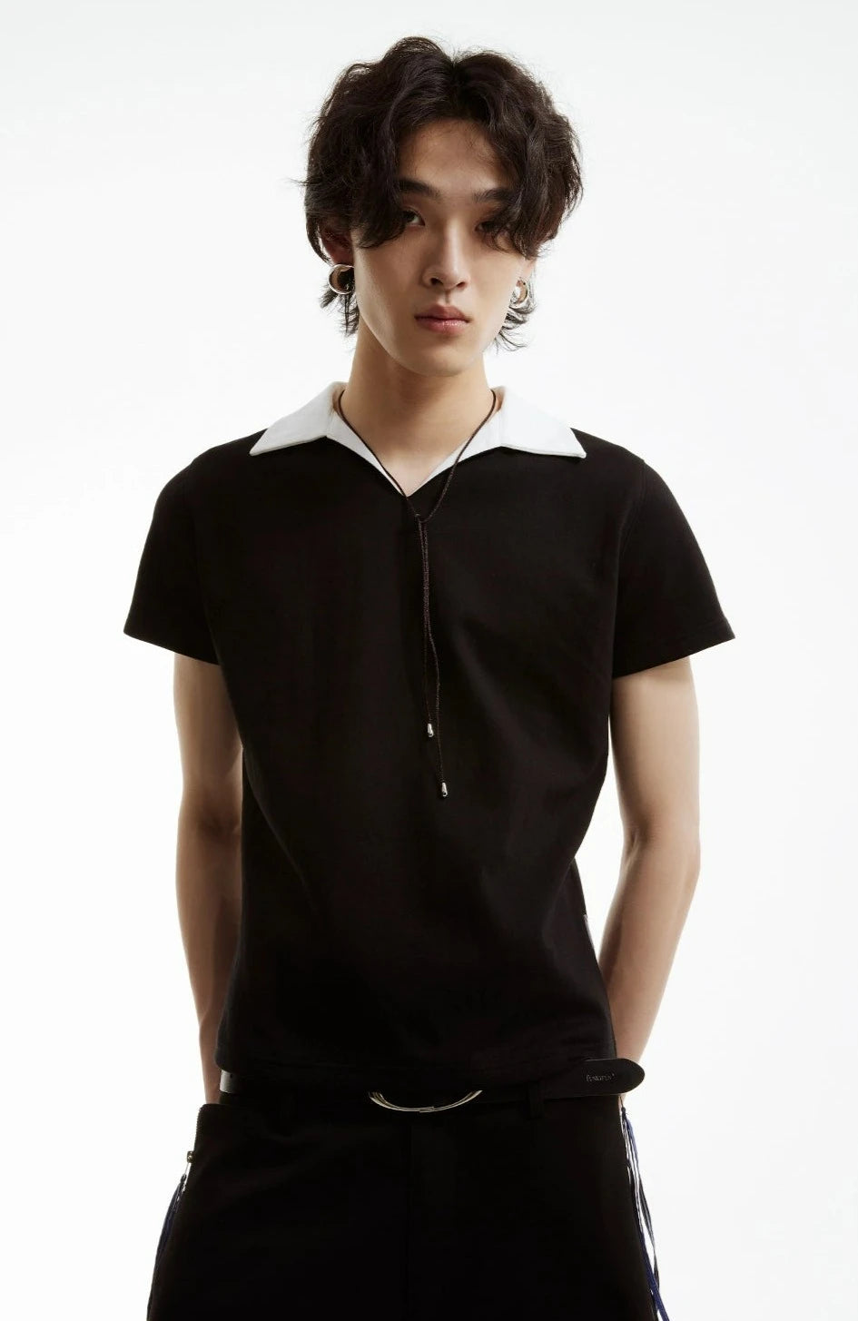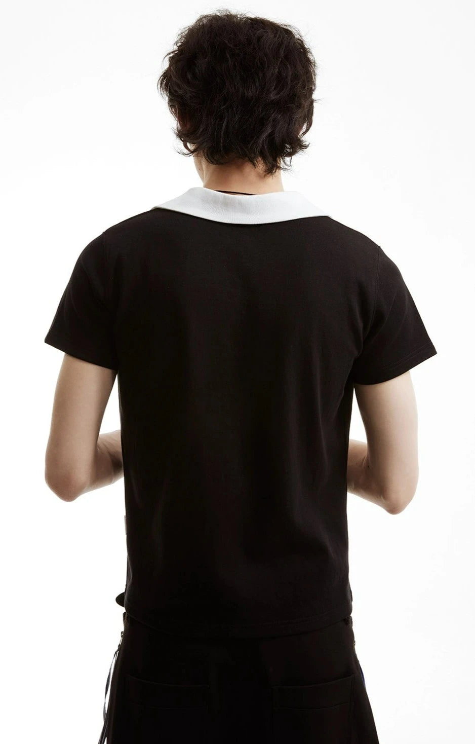 Crafted with attention to detail, this polo shirt features a sharp contrast collar and a contemporary zippered placket. The soft blend of premium cotton and nylon ensures both comfort and durability, while the juxtaposition of black and white adds a dynamic visual appeal. Its loose fit allows for easy movement and an on-trend, nonchalant vibe that transitions smoothly from casual to smart settings.