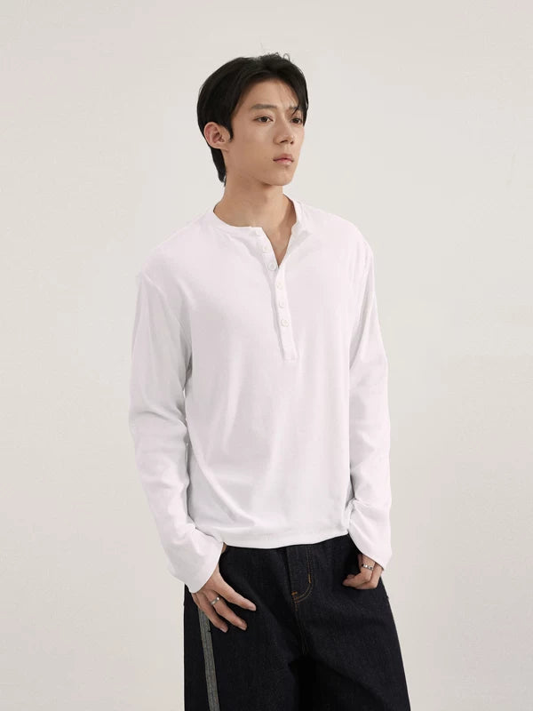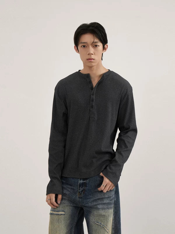 Slim Fit Mid-Crop Long Sleeve Henley T-Shirt