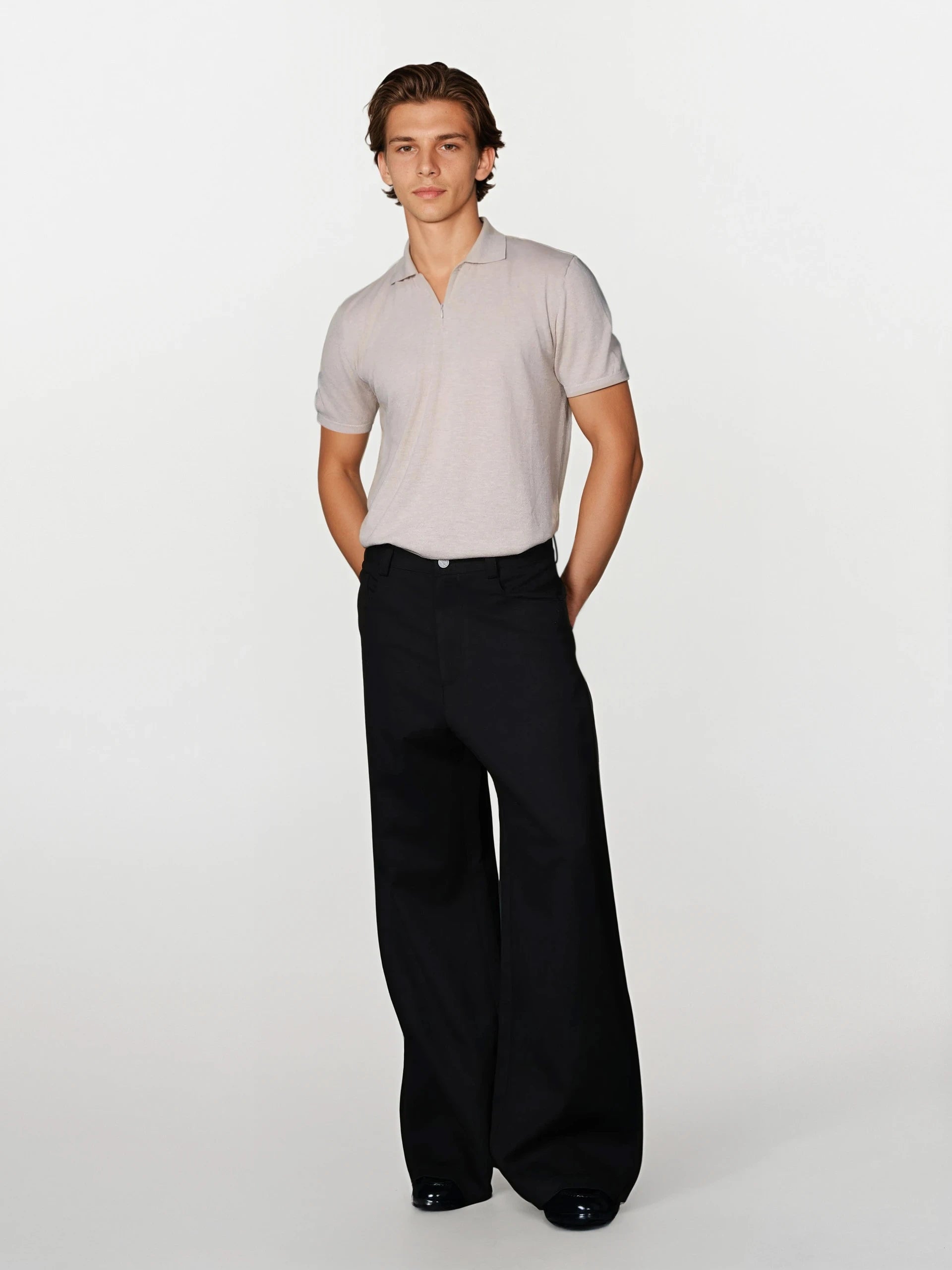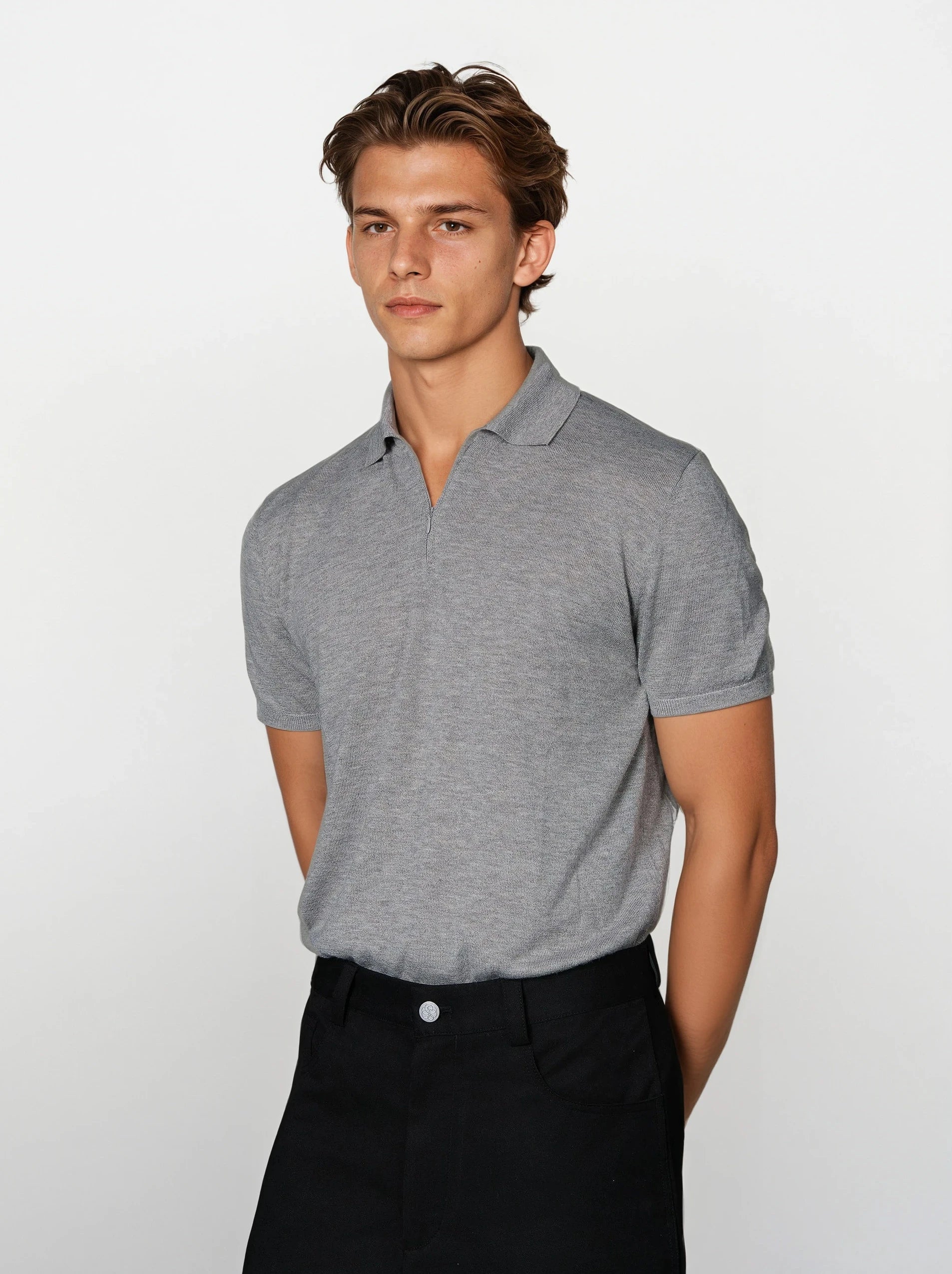 Crafted from a soft wool-blend knit, the texture is lightweight but structured, making it comfortable to wear while still holding its shape. The fine gauge and breathable feel make it easy to throw on solo or layer under lightweight jackets. The zip detail and low-key lapel elevate the fit without making it fussy.