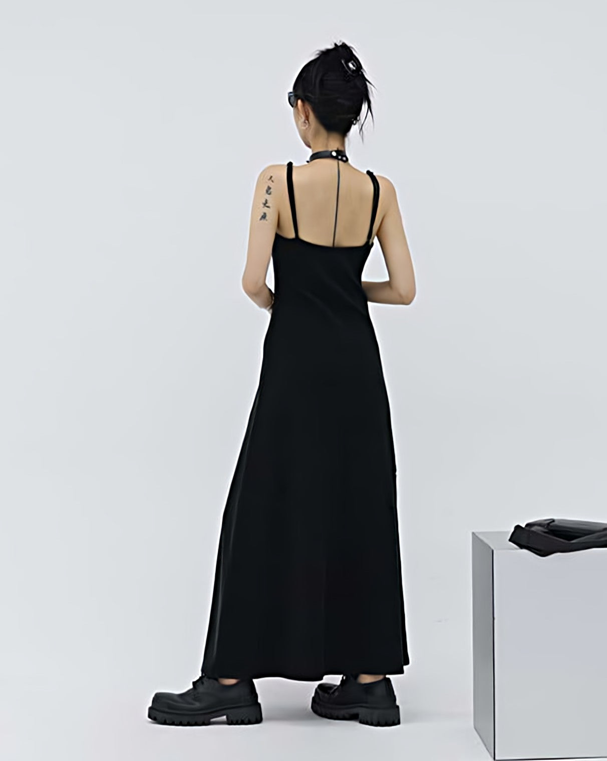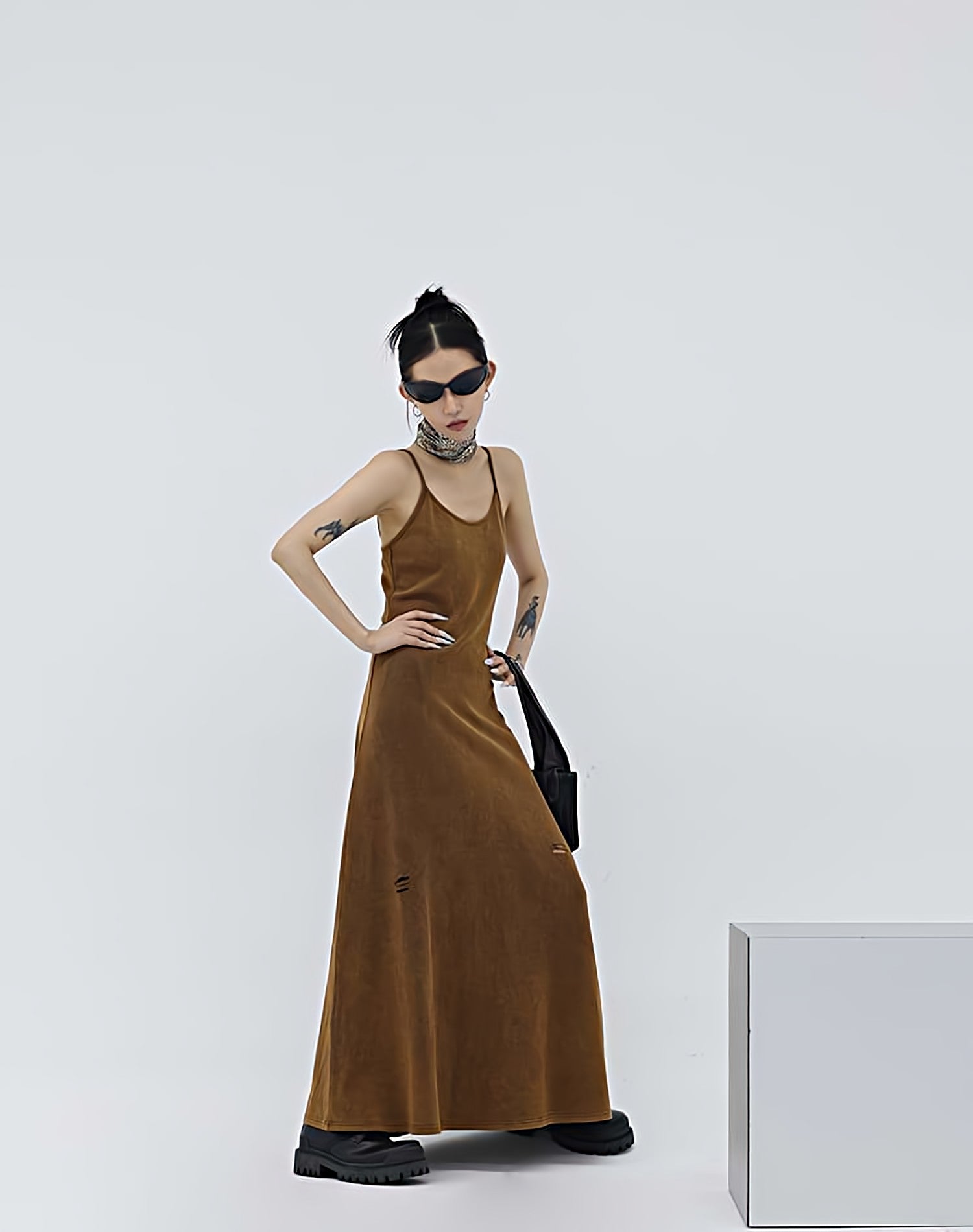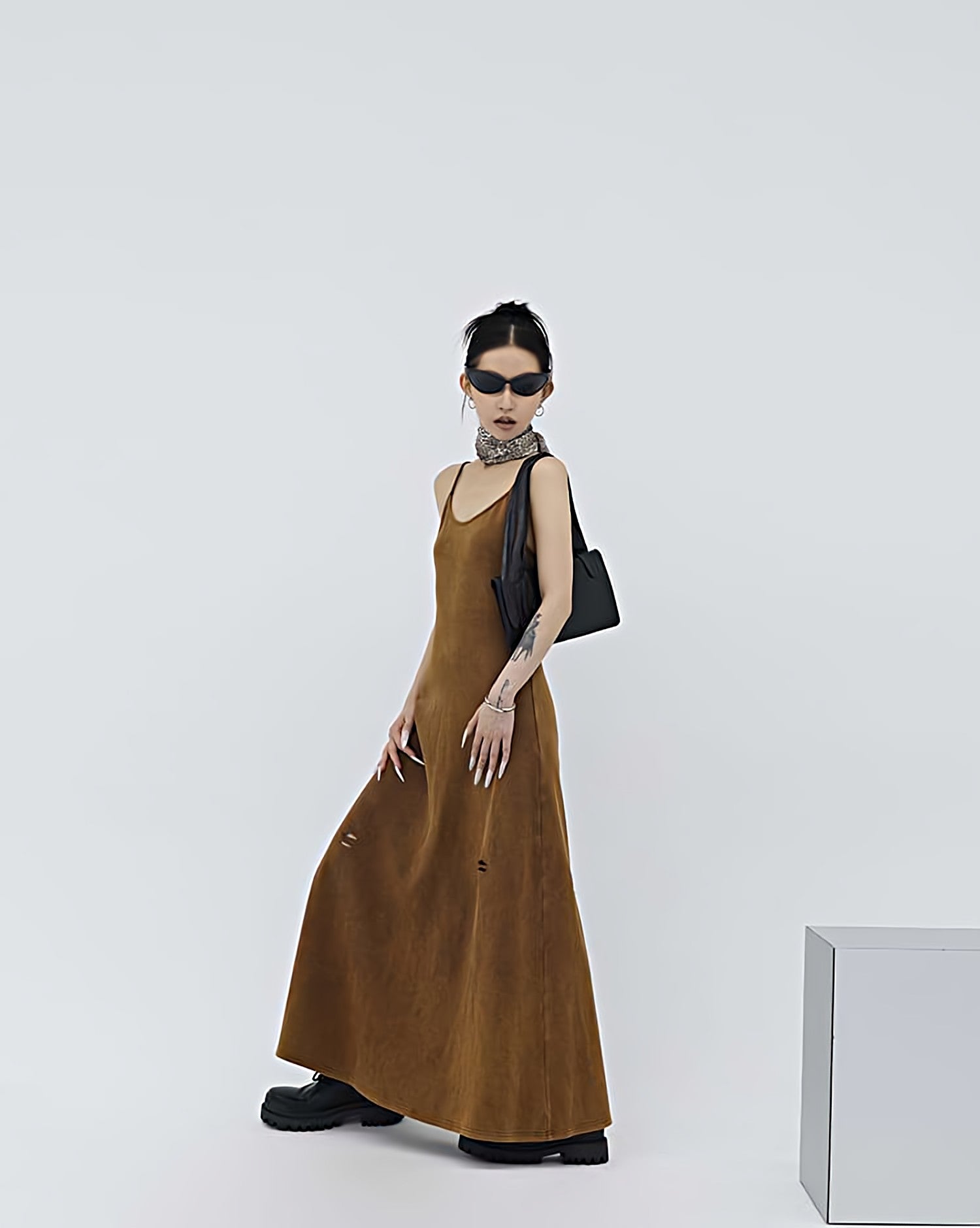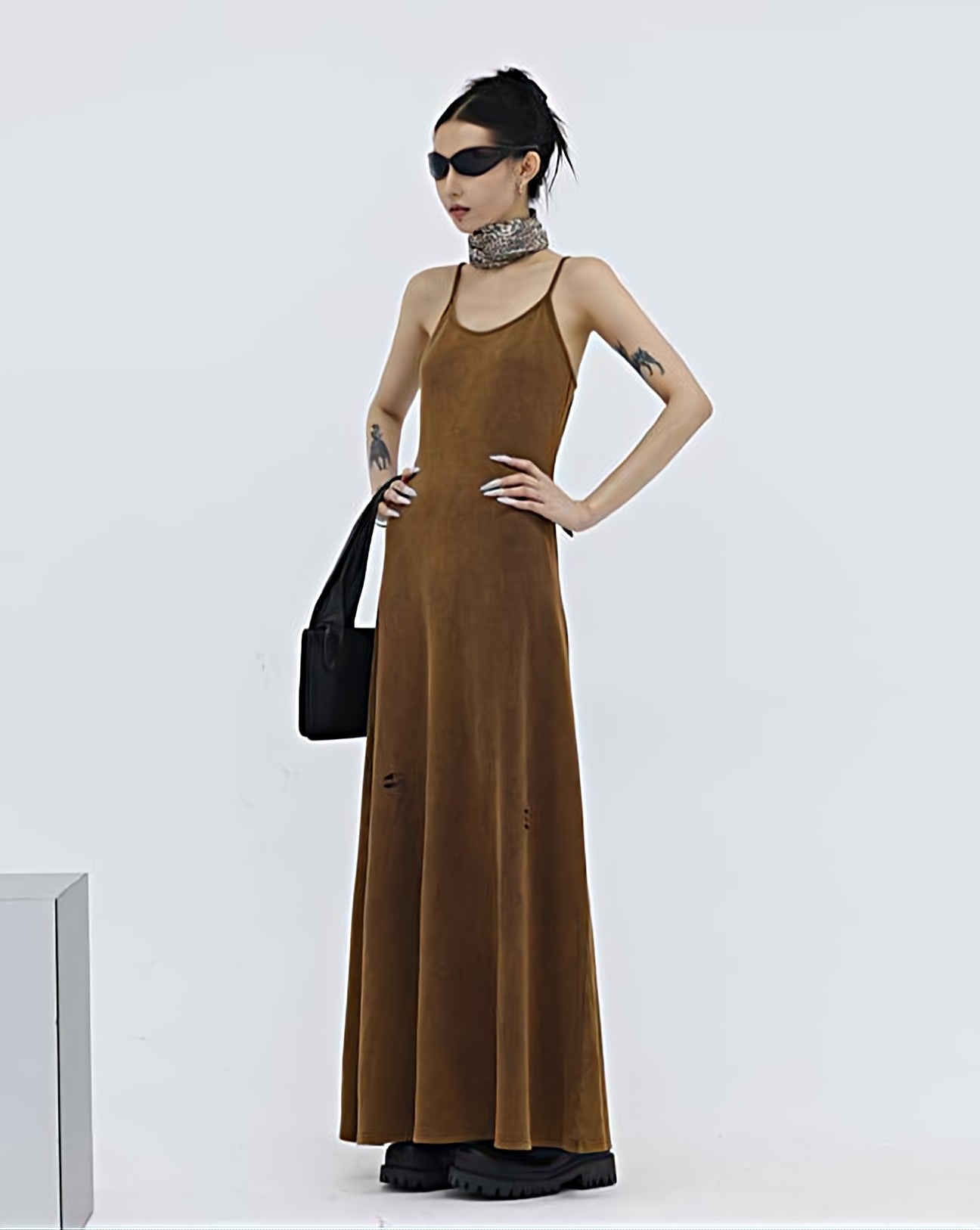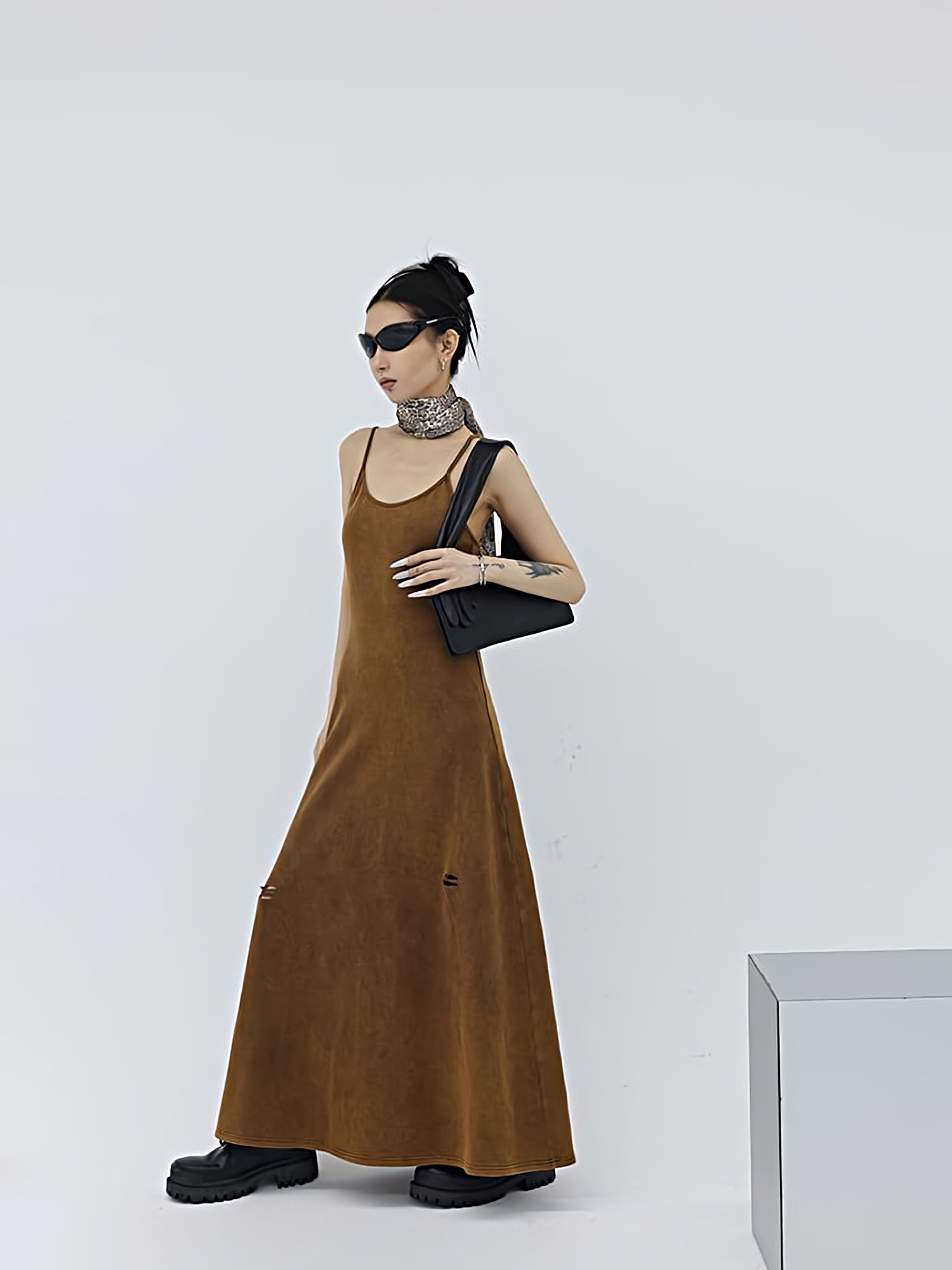 Slim Scoop-Neck Classic Distressed Maxi Dress