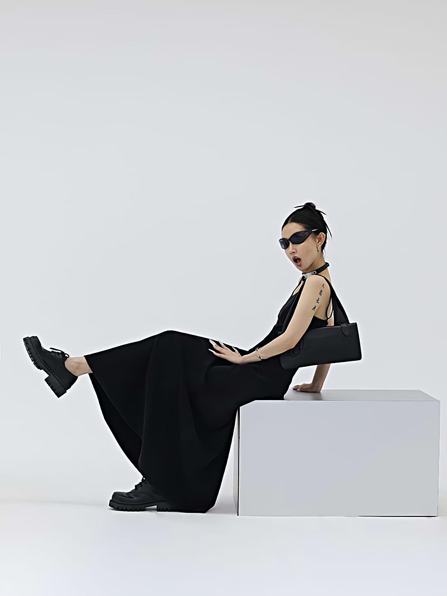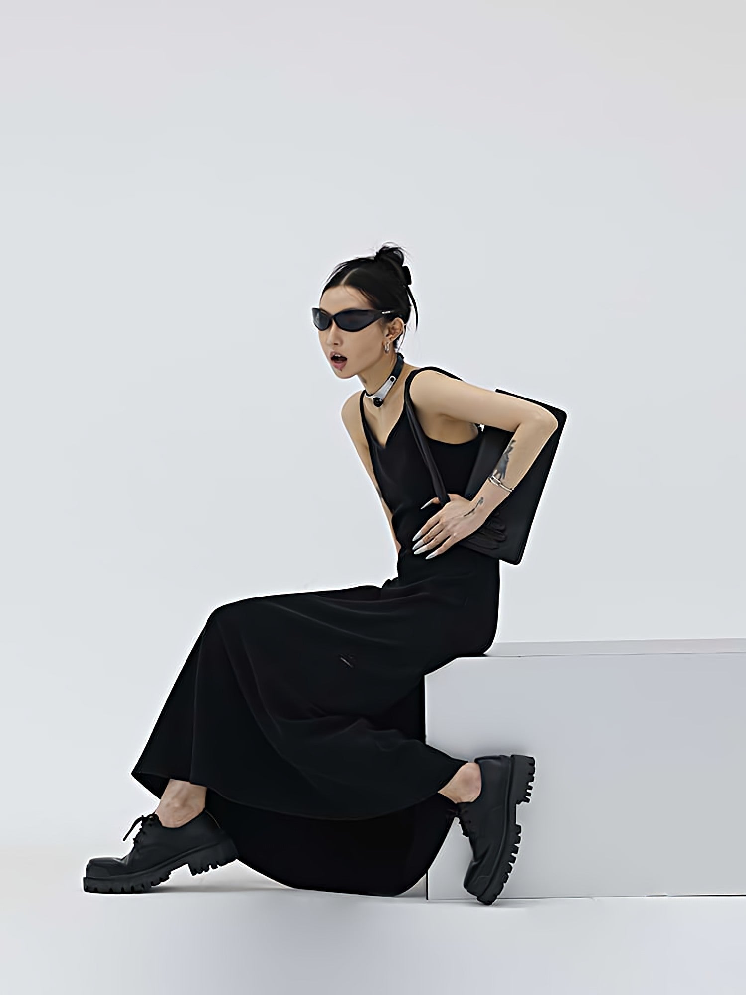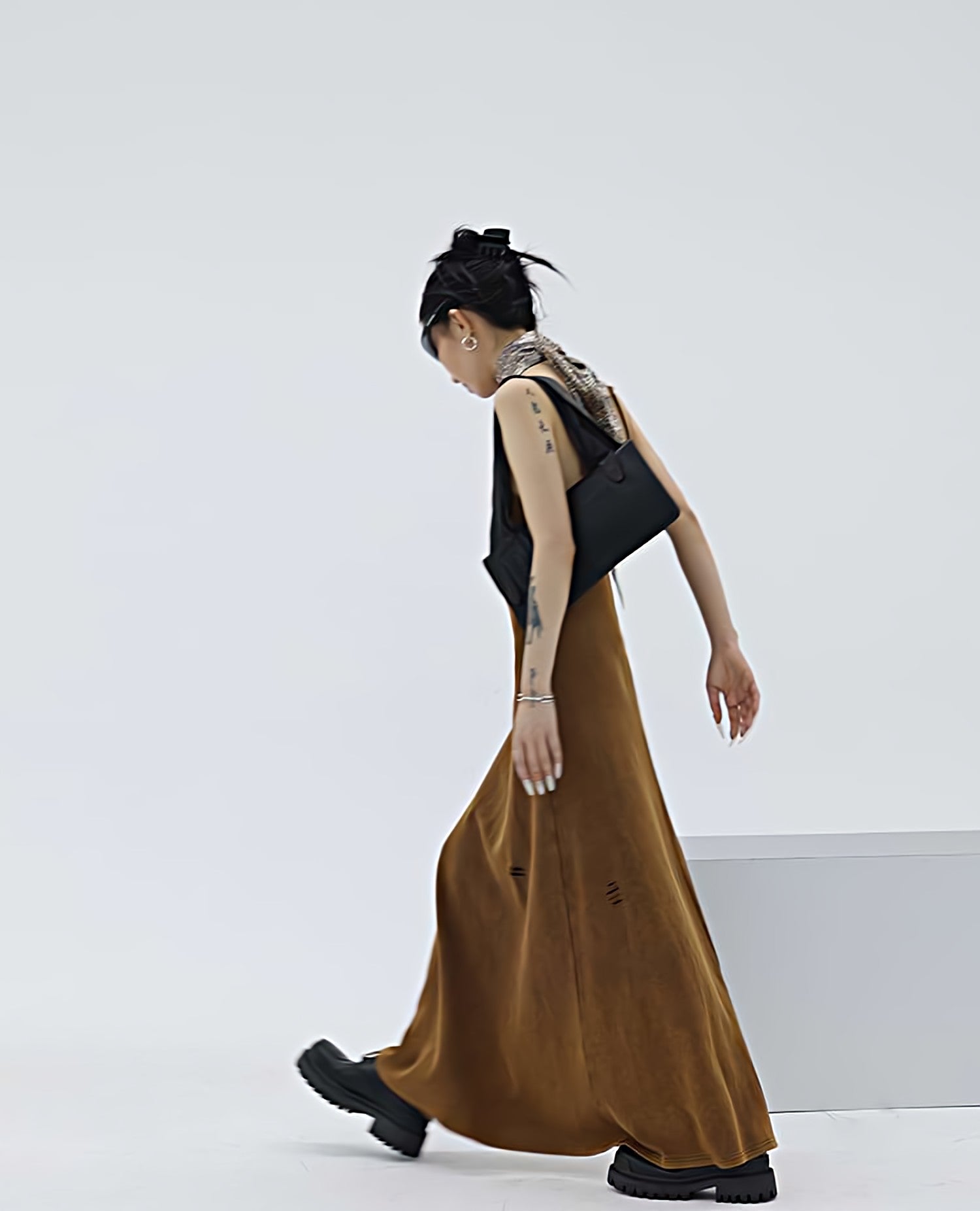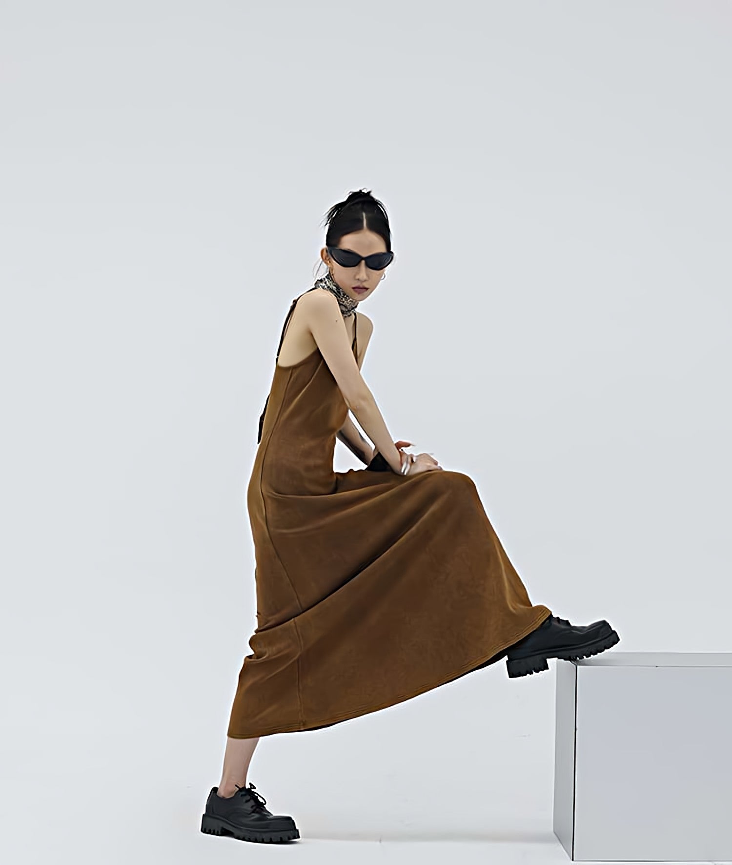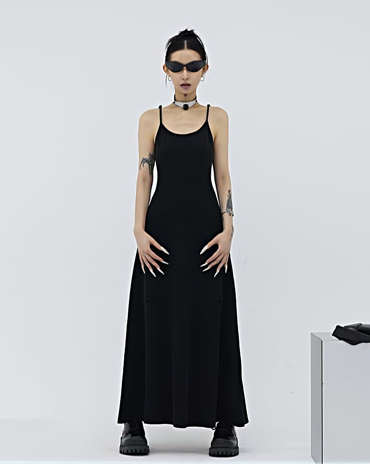 Slim Scoop-Neck Classic Distressed Maxi Dress