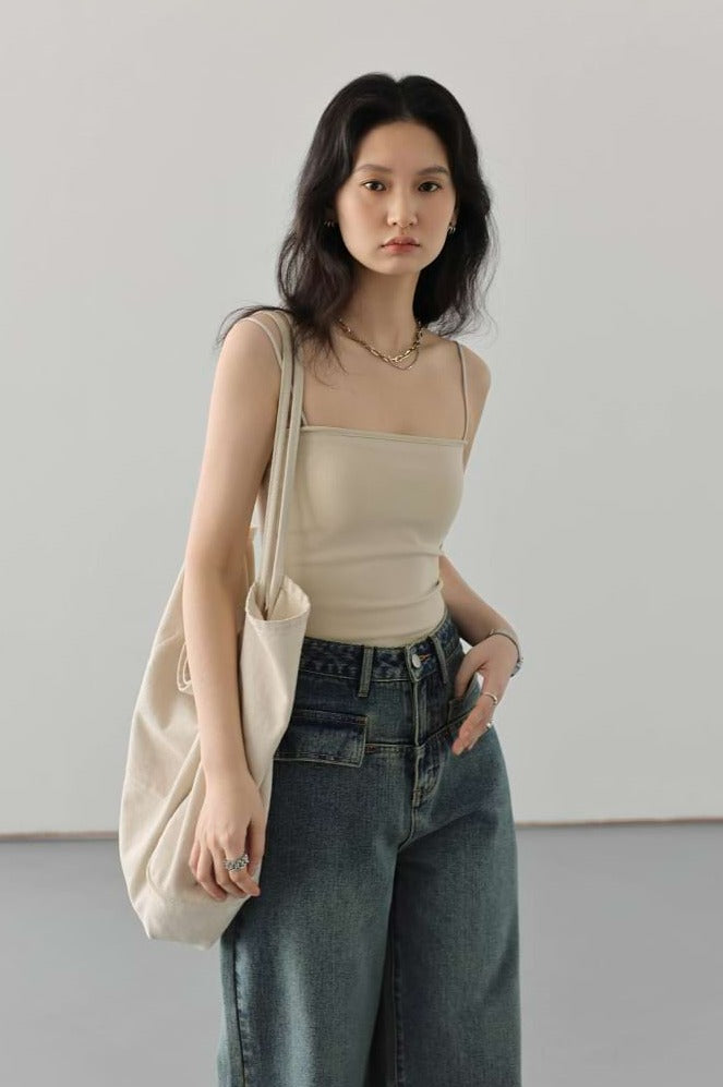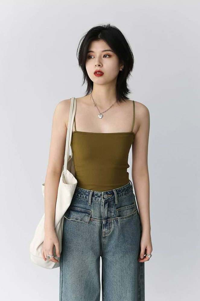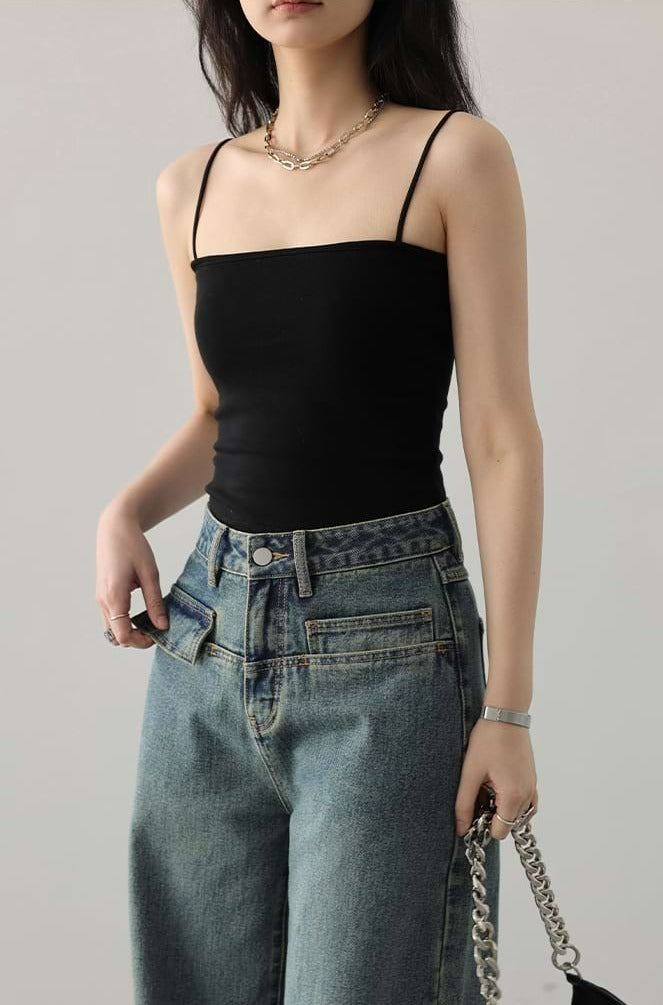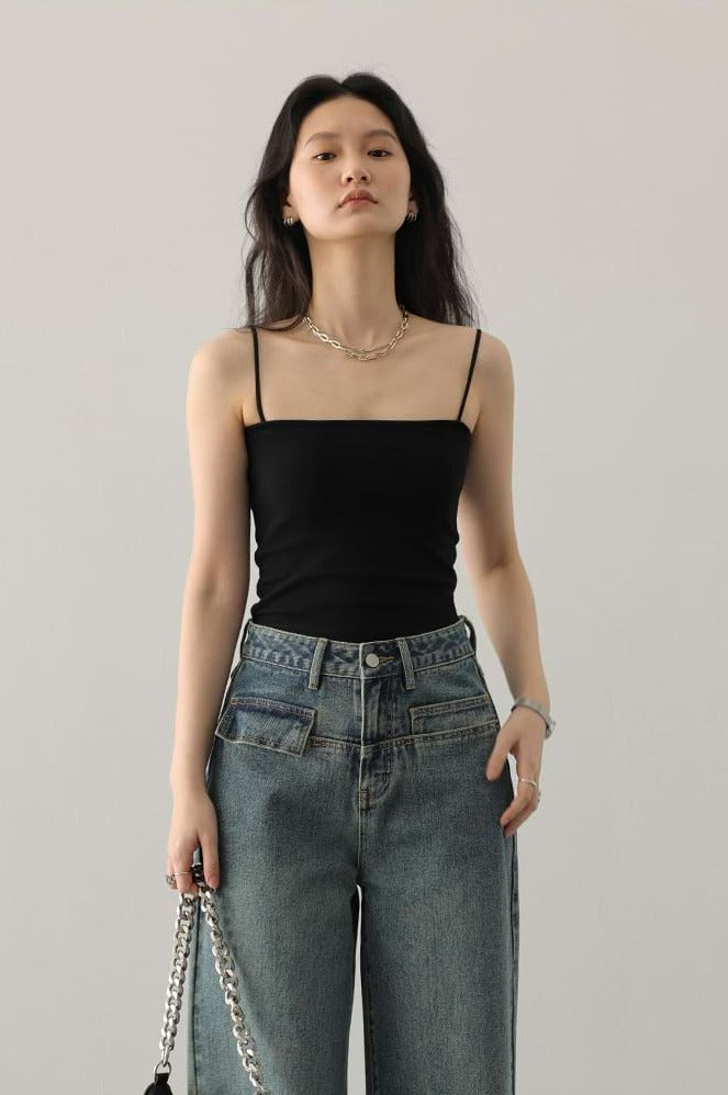 Read full Return PolicyThis stylish slim spaghetti strap top with chest pad cis perfect for any occasion. Its lightweight fabric allows for all-day comfort, and its skinny fit allows for effortless layering. Perfect for casual wear or for layering under other pieces for a modern look.