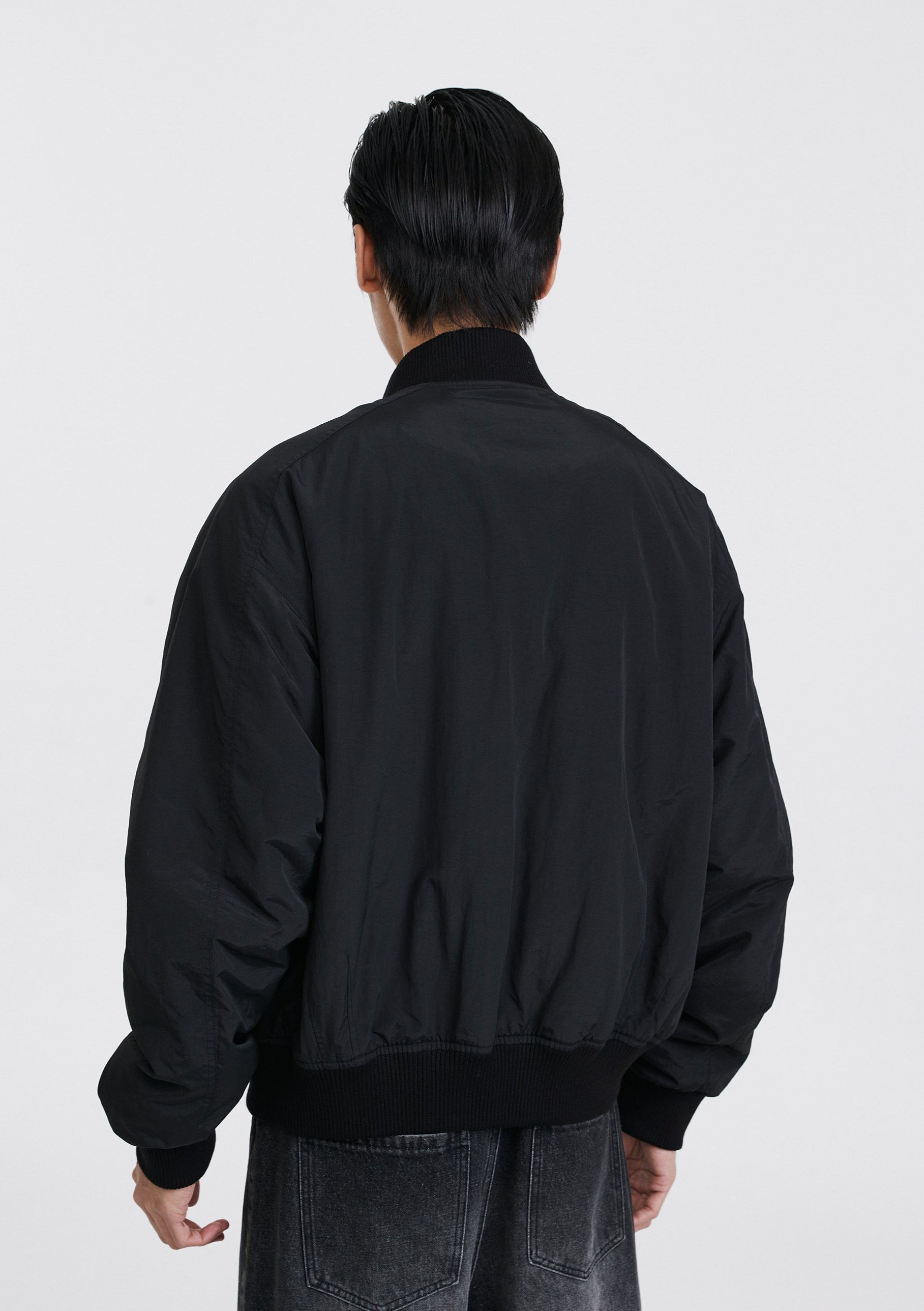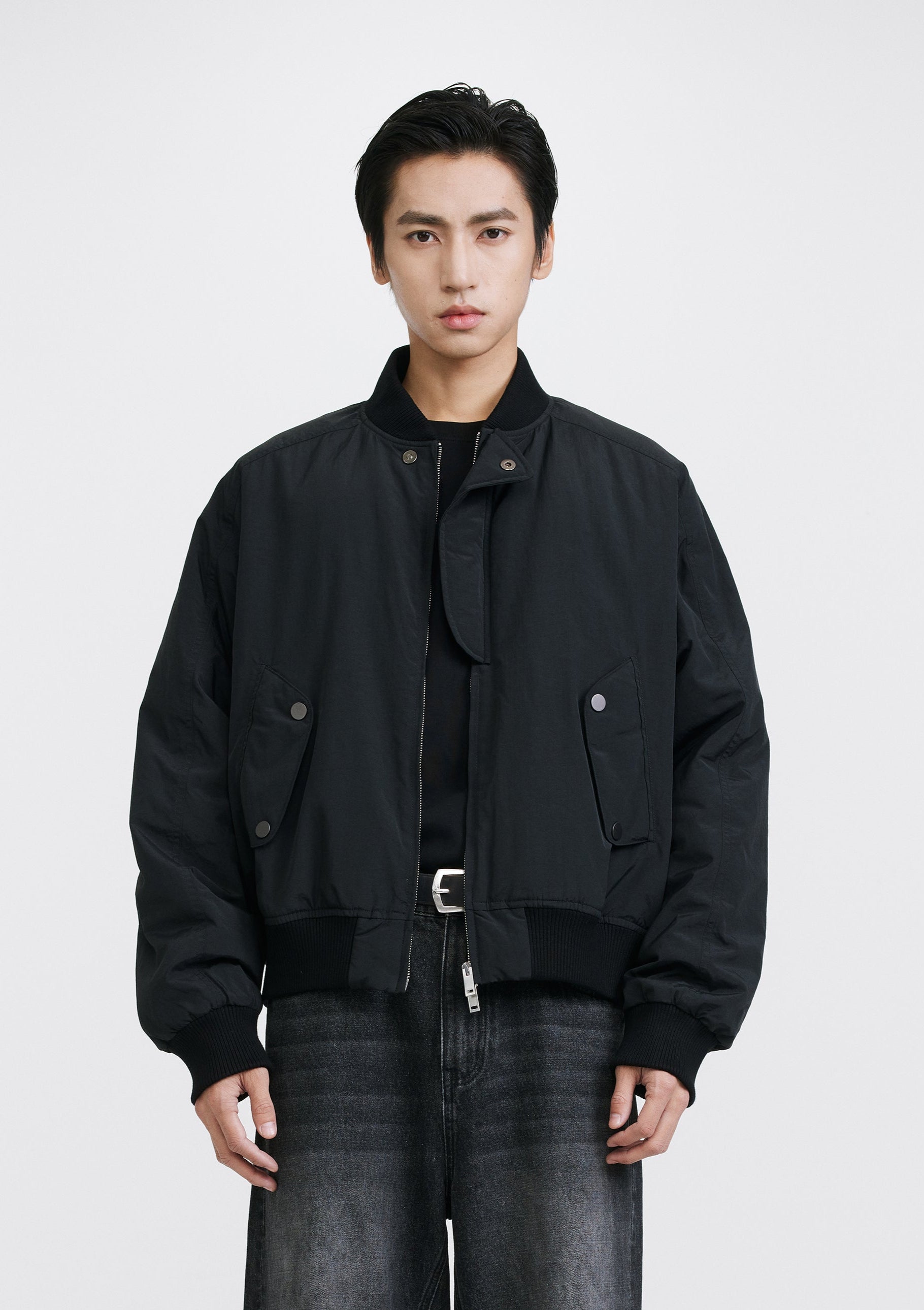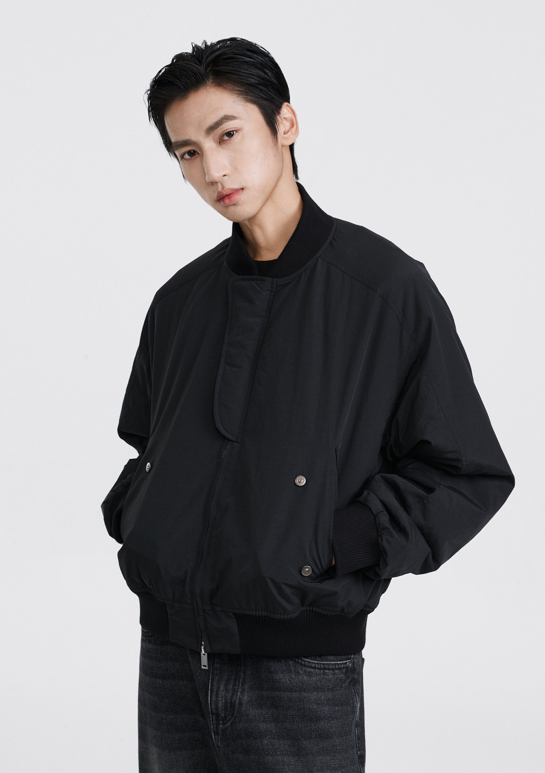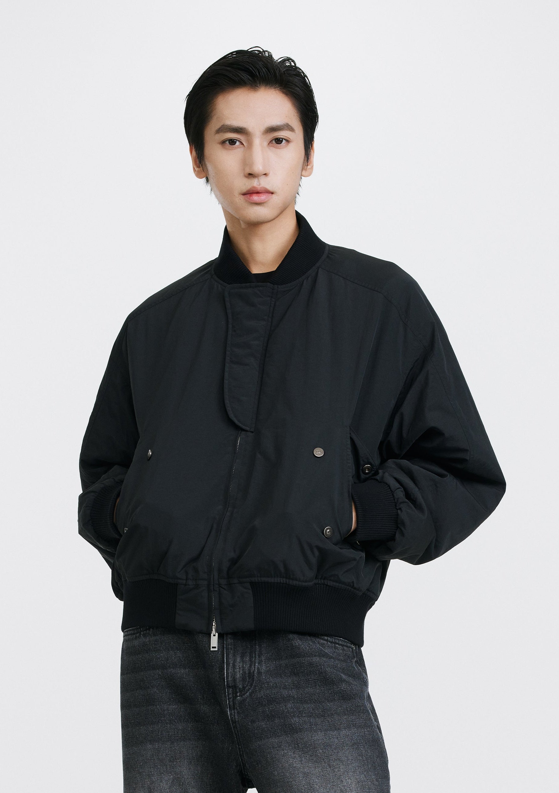 Snap-Pocket Bomber Jacket with Ribbed Trim