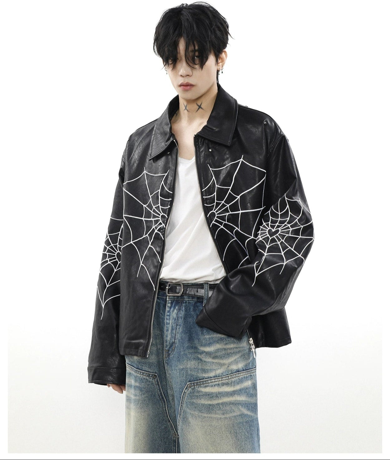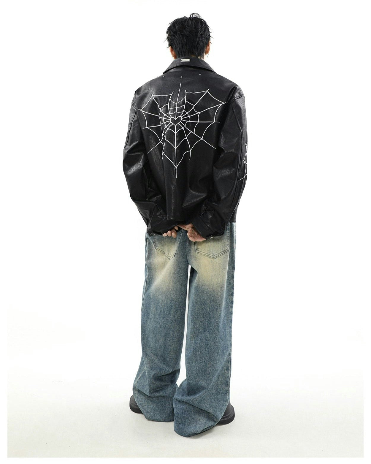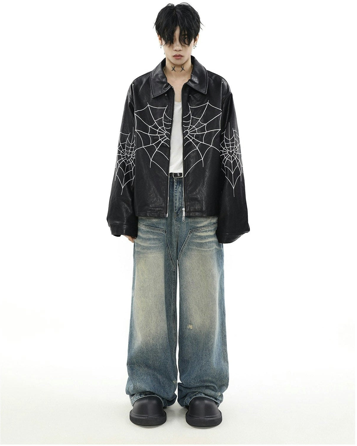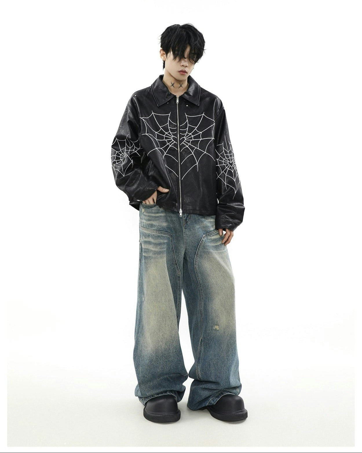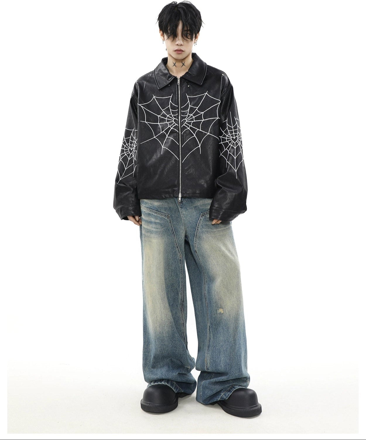 Read full Return PolicyUnleash edgy vibes with this Spiderweb Print Faux Leather Bomber Jacket, blending bold aesthetics with a comfortable loose fit. Crafted from high-quality PU leather and adorned with a distinctive skeleton/spider embroidery, this piece promises to be a perennial staple in any contemporary wardrobe, perfect for leisure. A perfect fusion of style and practicality, it's a must-have for the autumn season, offering an effortlessly cool look.