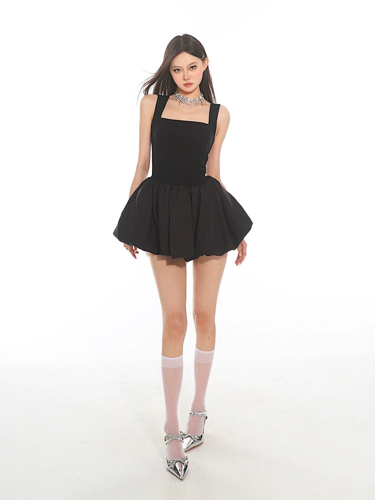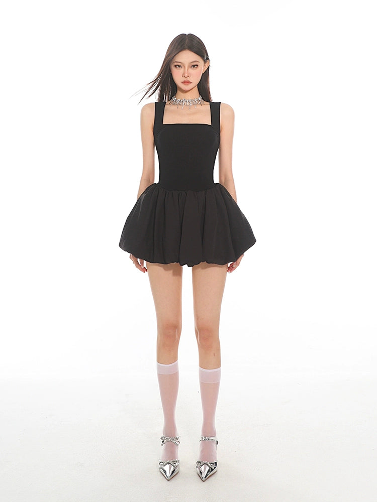 Designed to embody sophistication, this dress features a fitted bodice with a square neckline, leading down to a playful bubble-skirt that adds a dash of ballet-inspired whimsy. The sleeveless cut makes it an ideal choice for warmer days or layered looks. Crafted from a high-quality material, the dress offers both comfort and durability, ensuring you'll reach for it time and again.