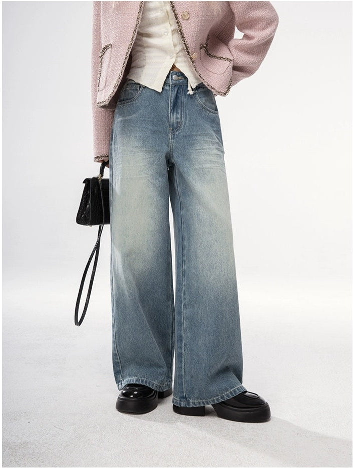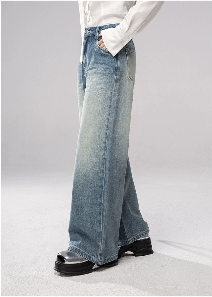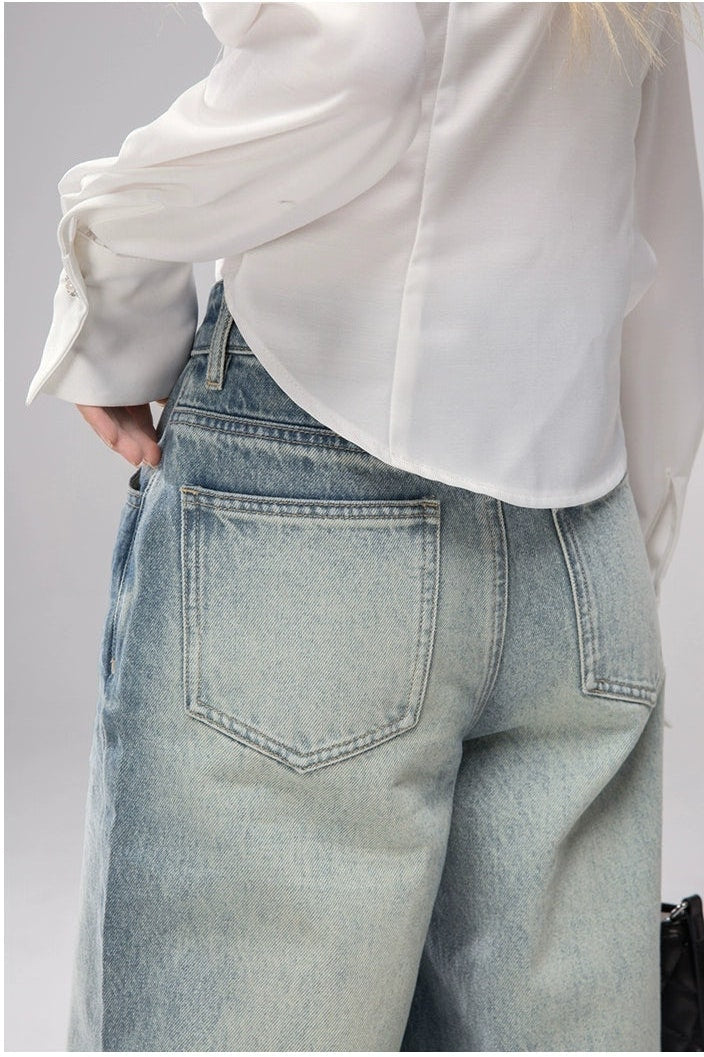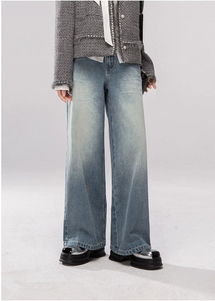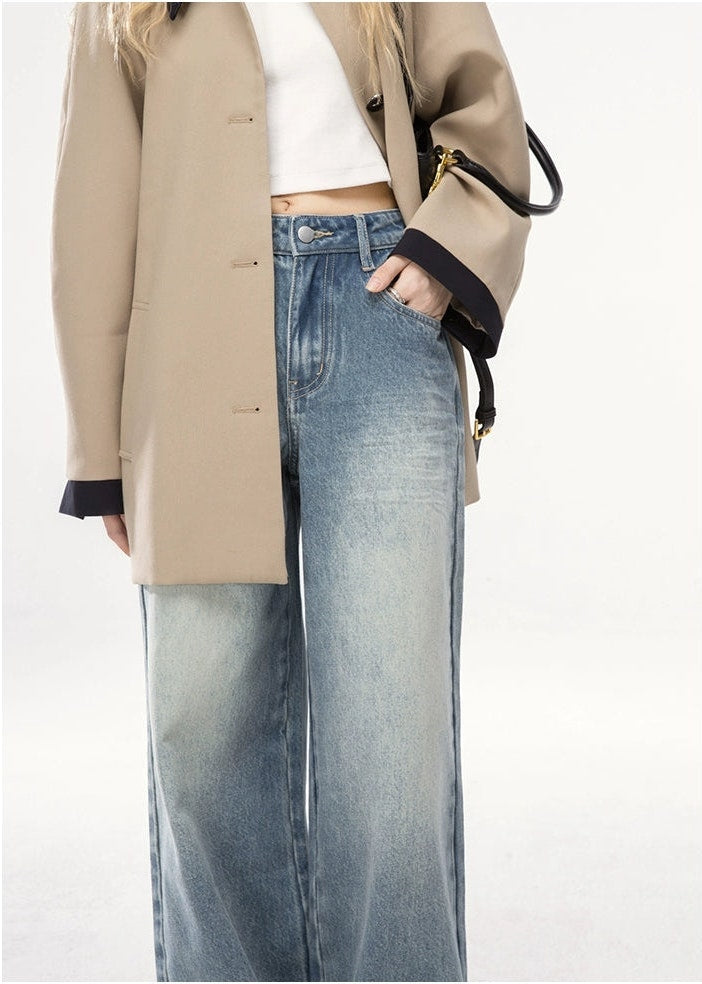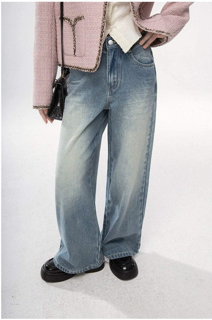 Straight Leg Faded Wash Minimal Jeans