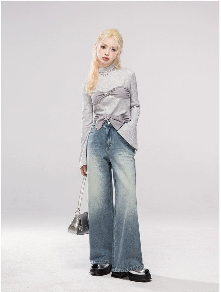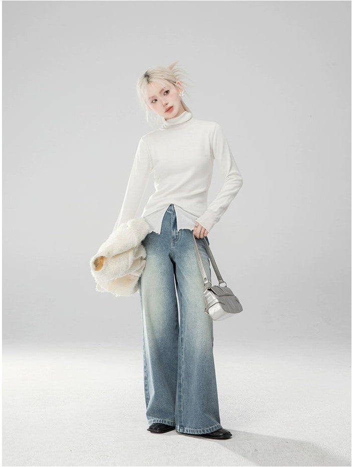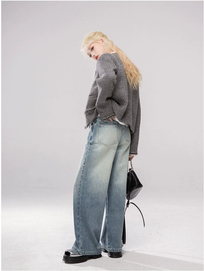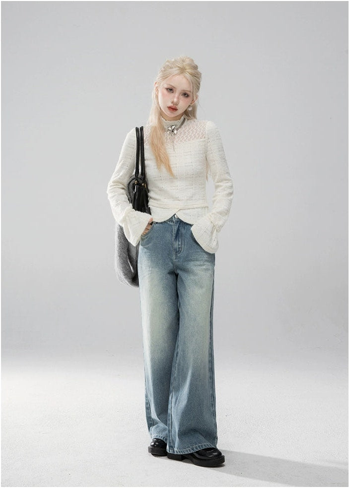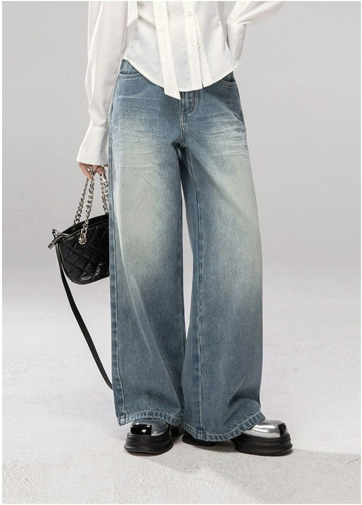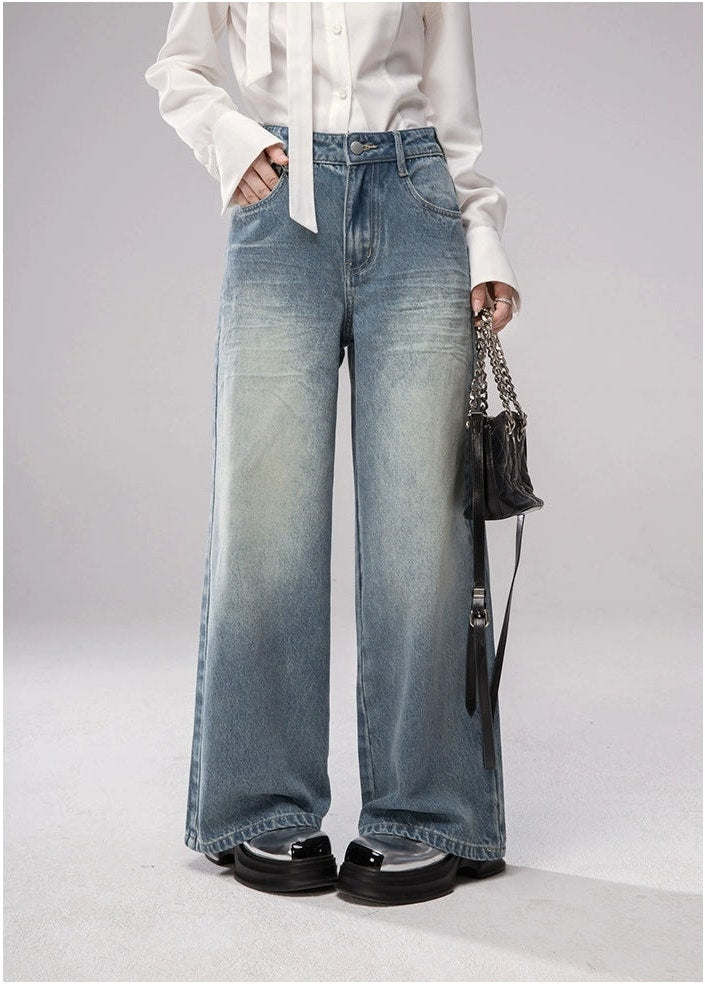 Straight Leg Faded Wash Minimal Jeans