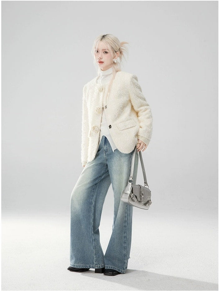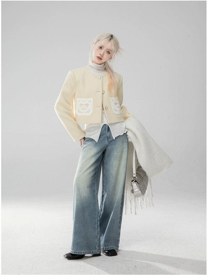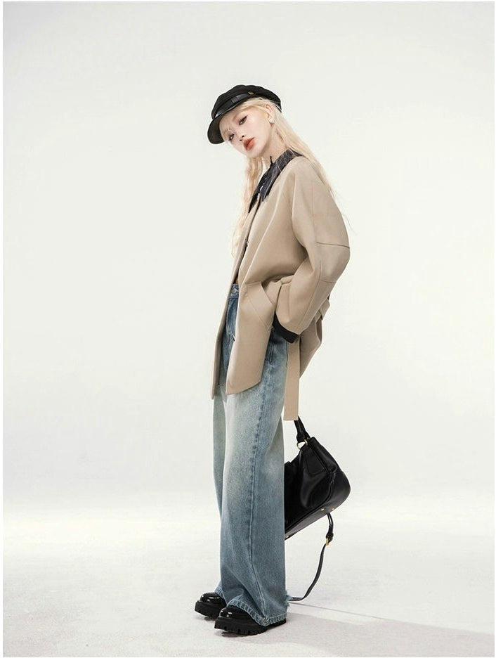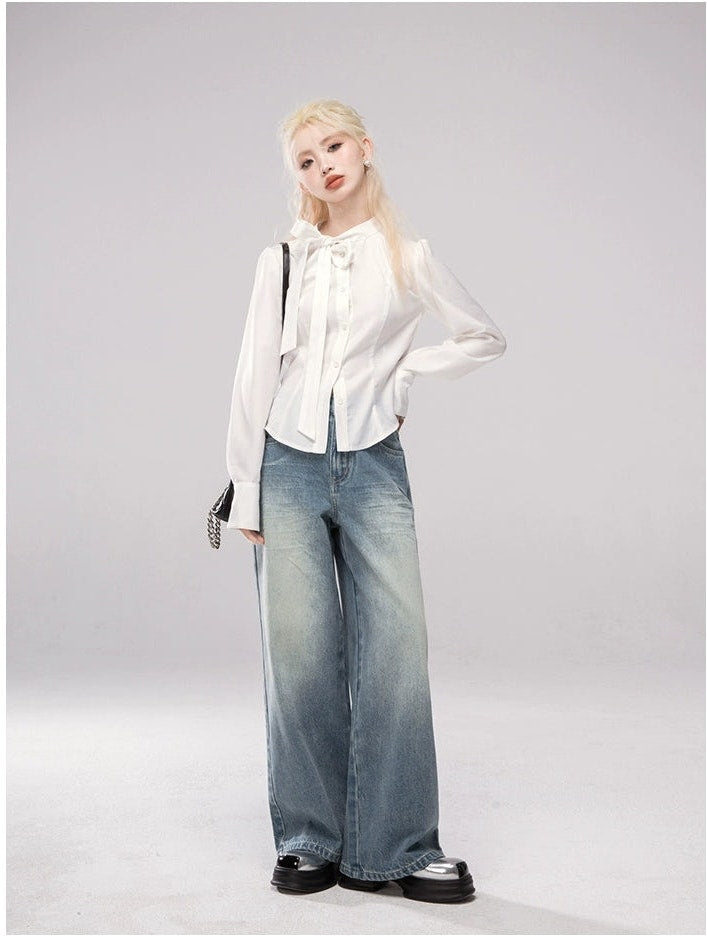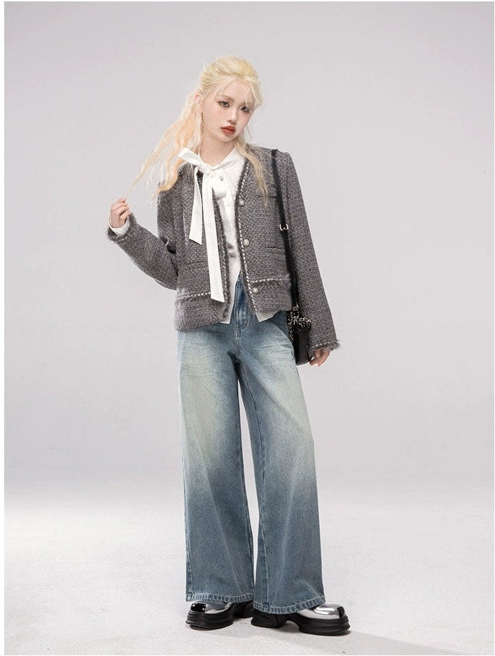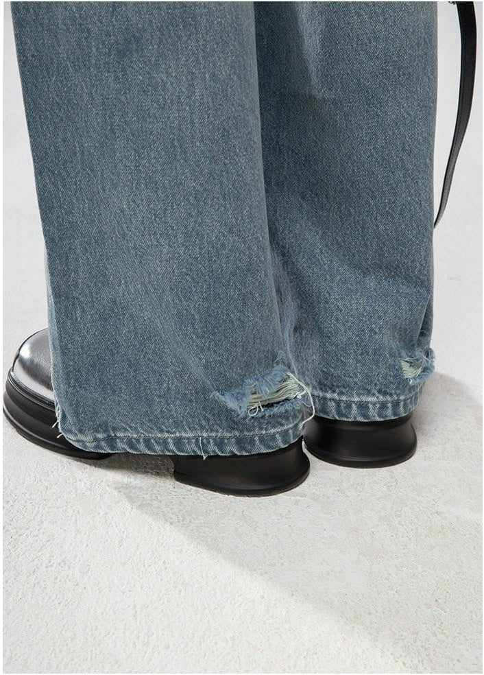 Straight Leg Faded Wash Minimal Jeans