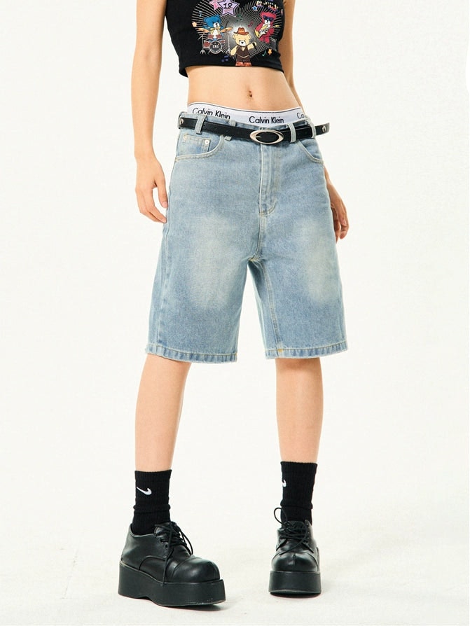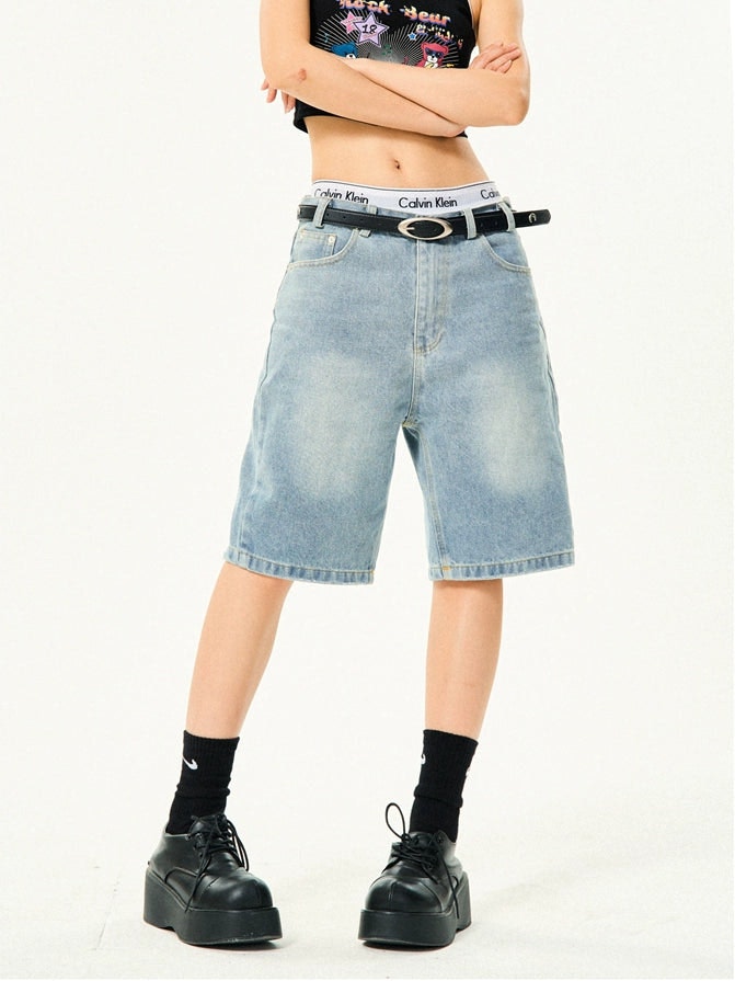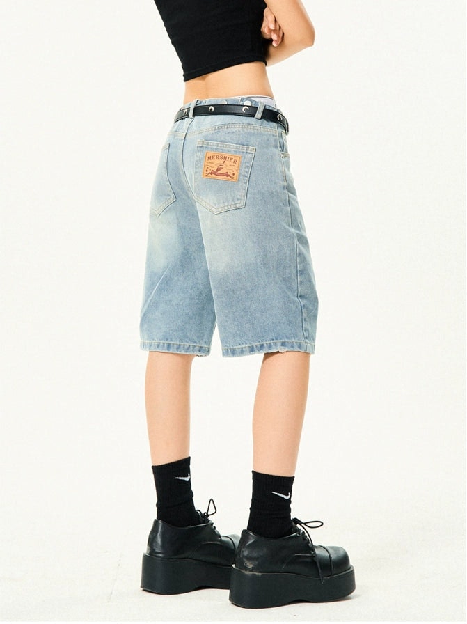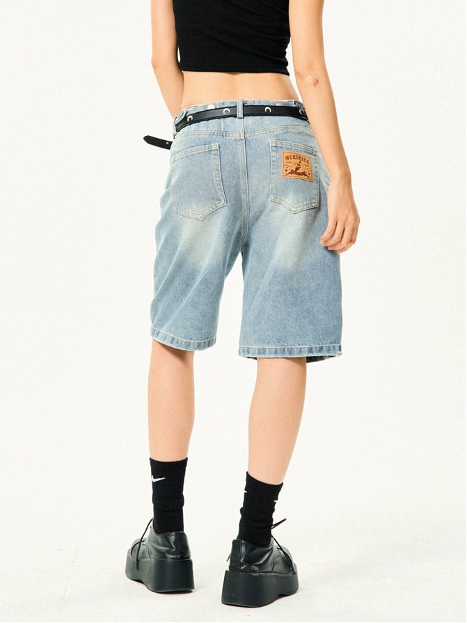 Read full Return PolicyEmbrace the timeless vibe of our Straight Low-Waisted Faded Denim Bermuda Shorts, perfect for adding a touch of retro chic to your ensemble.