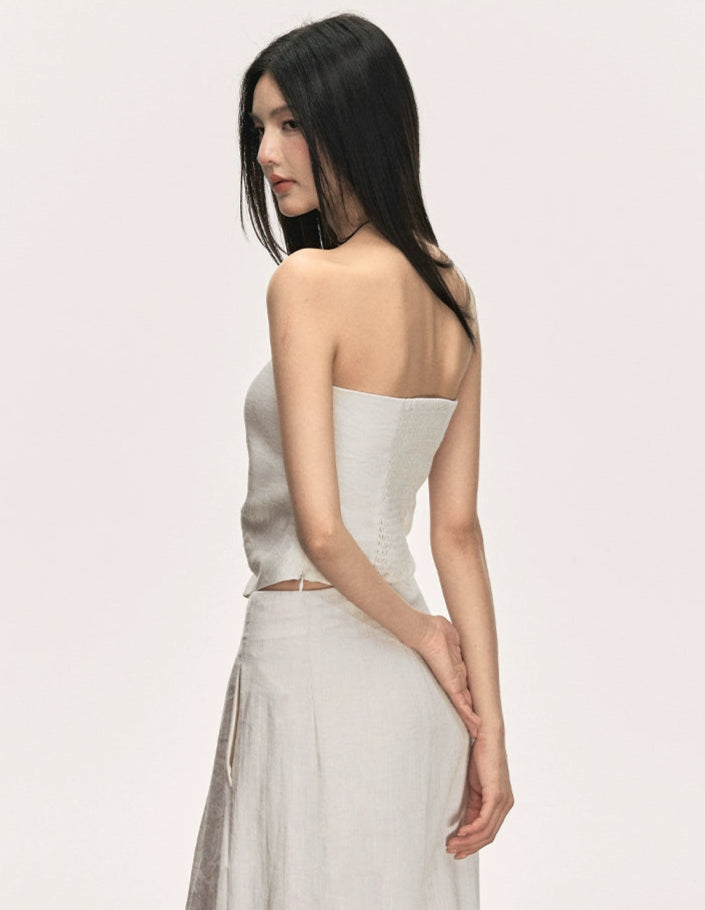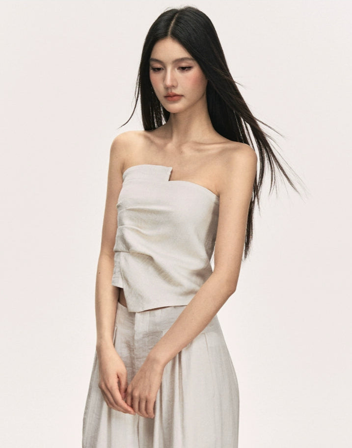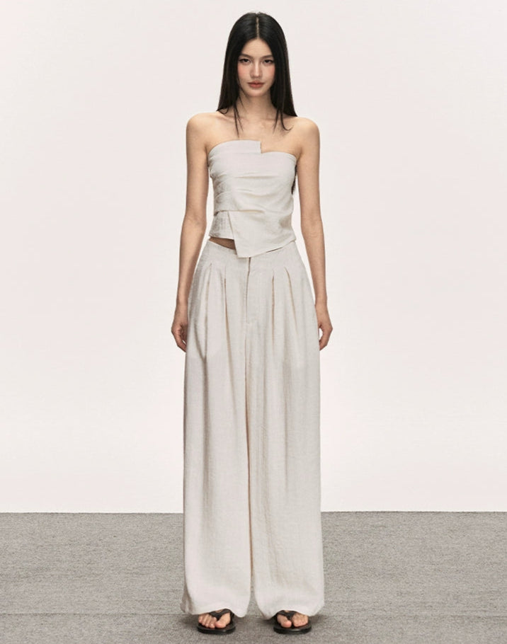 Strapless Asymmetric Top and Wide Leg Pleated Pant Two-Piece Set