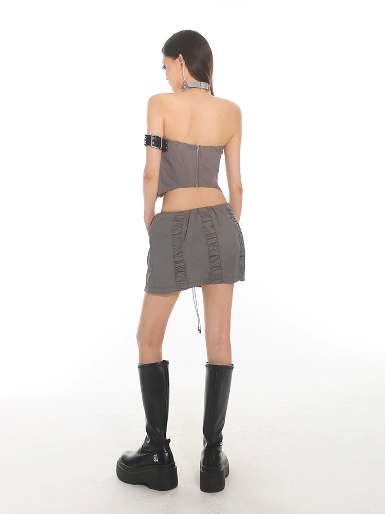 Strapless Bandeau Crop Top with Front Knot Detail