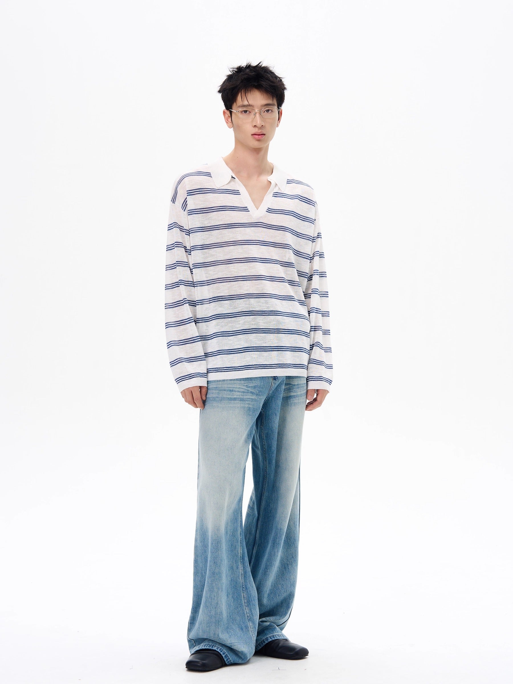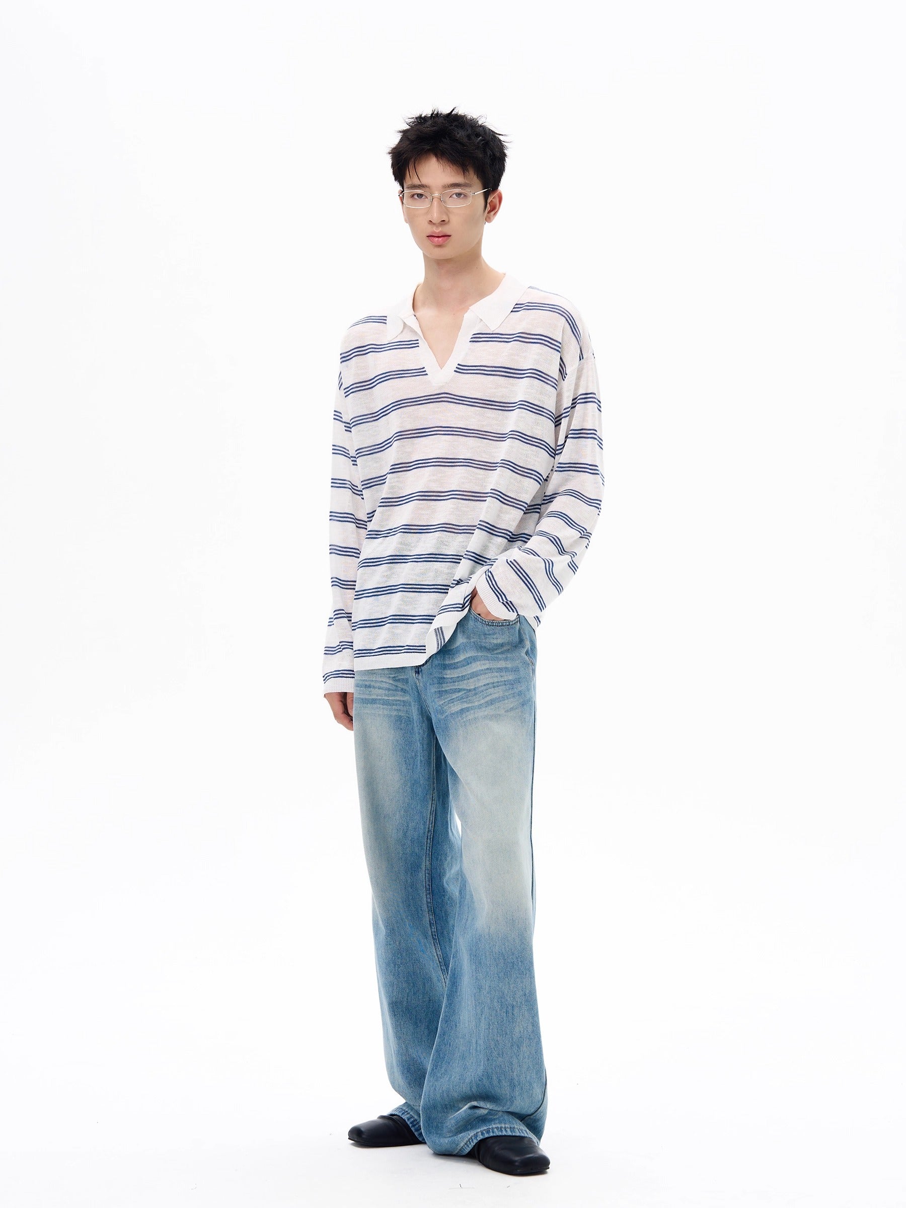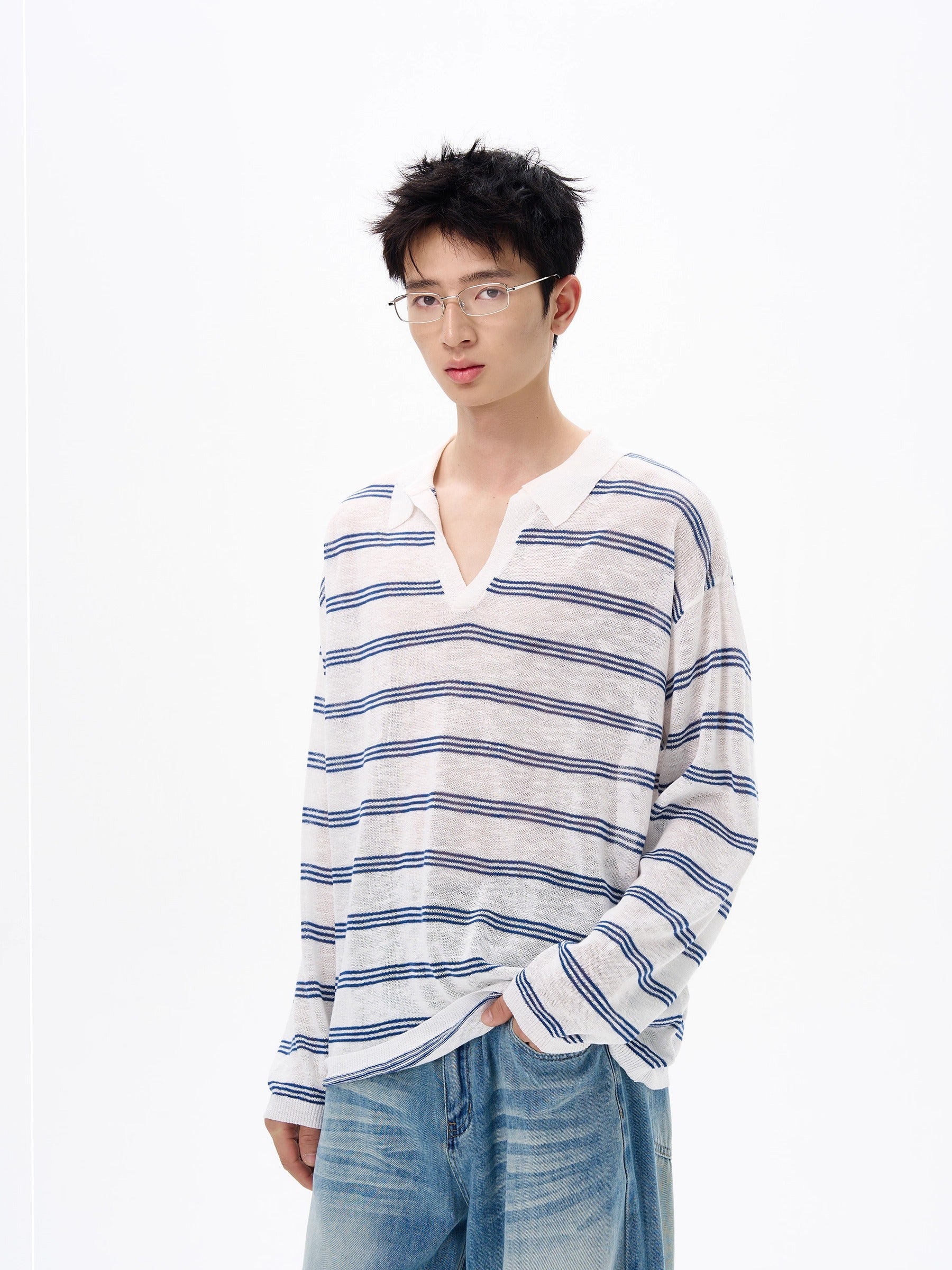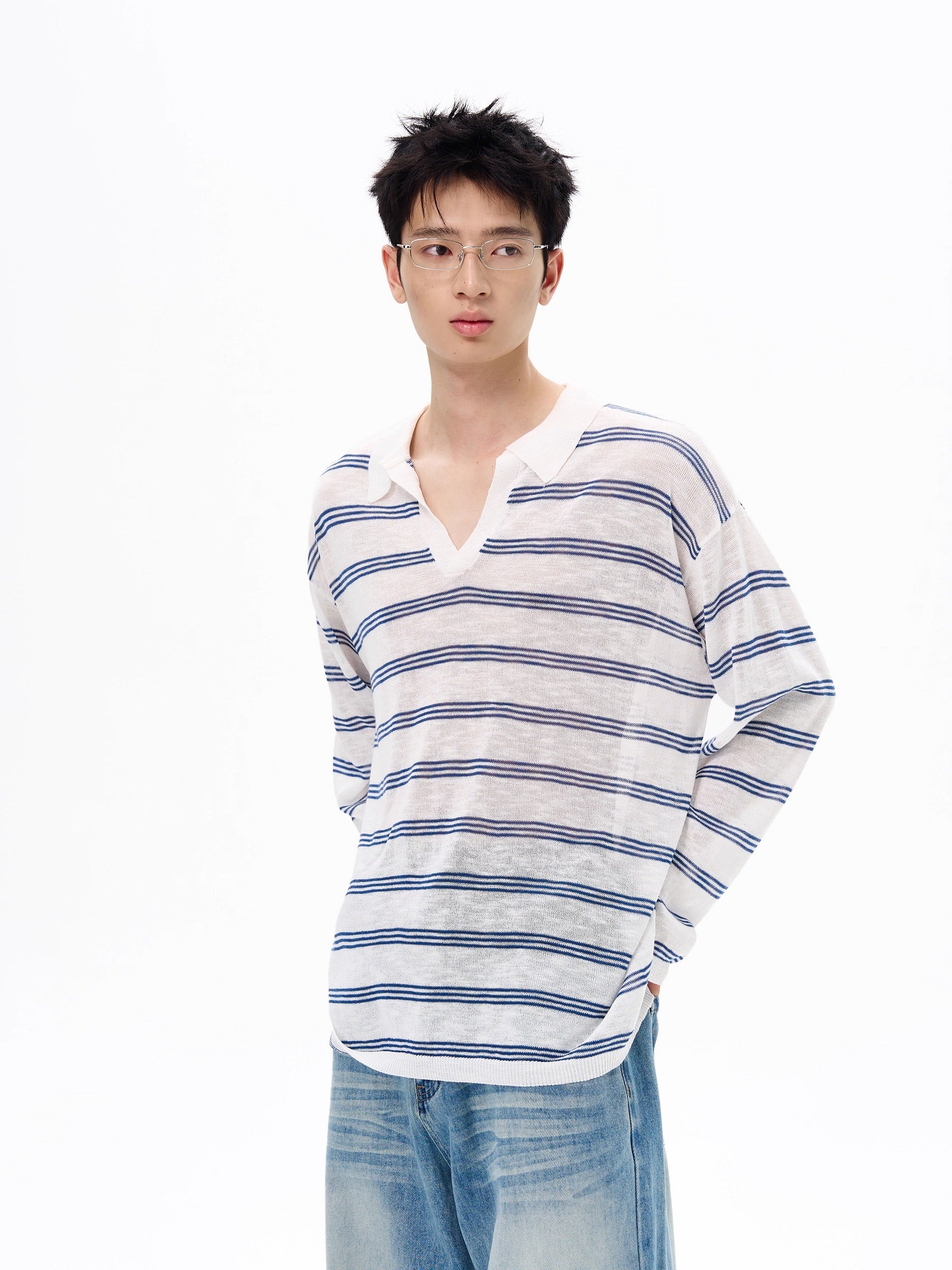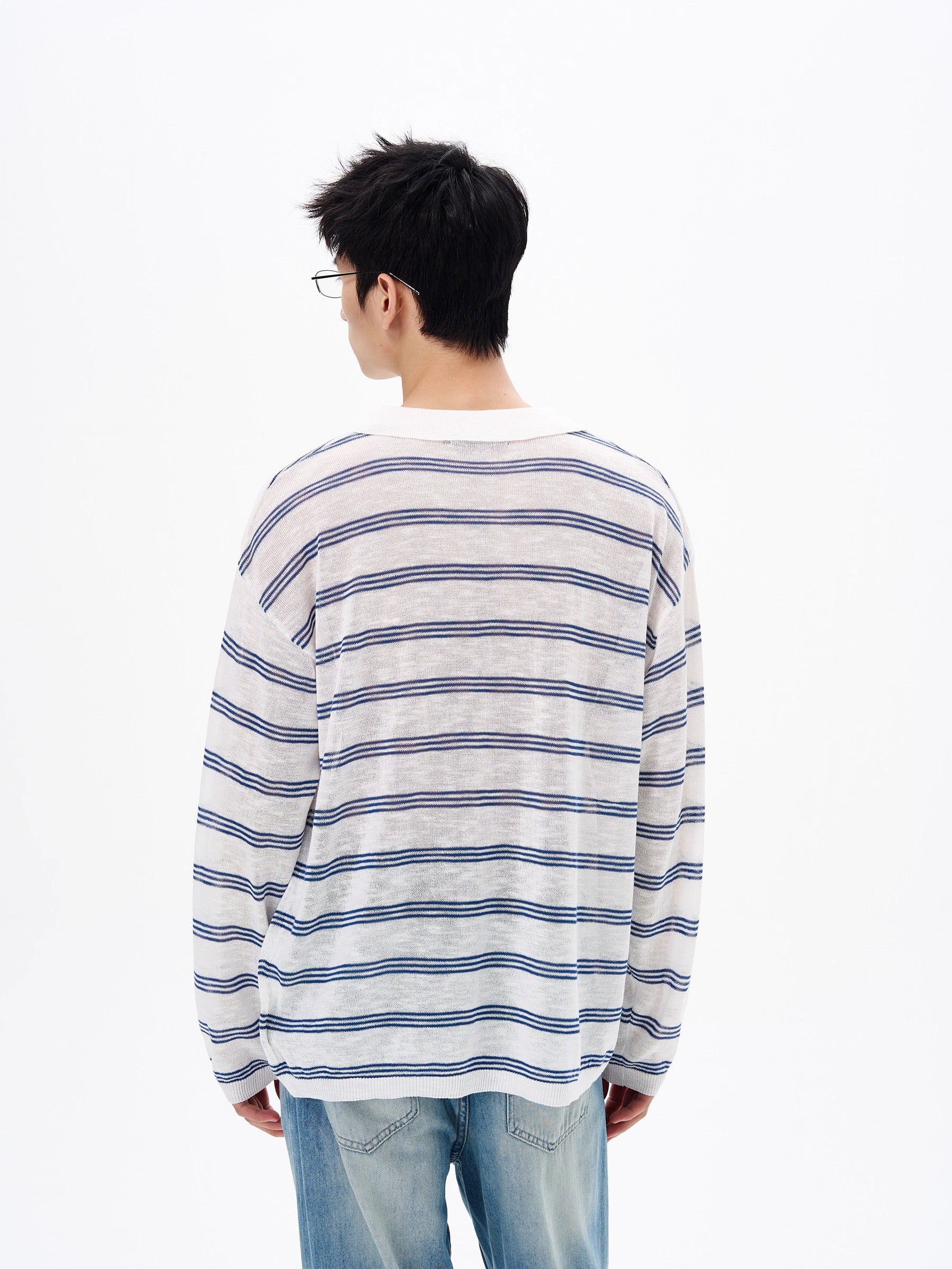 Stripe Drop Shoulder Long Sleeve Polo Shirt